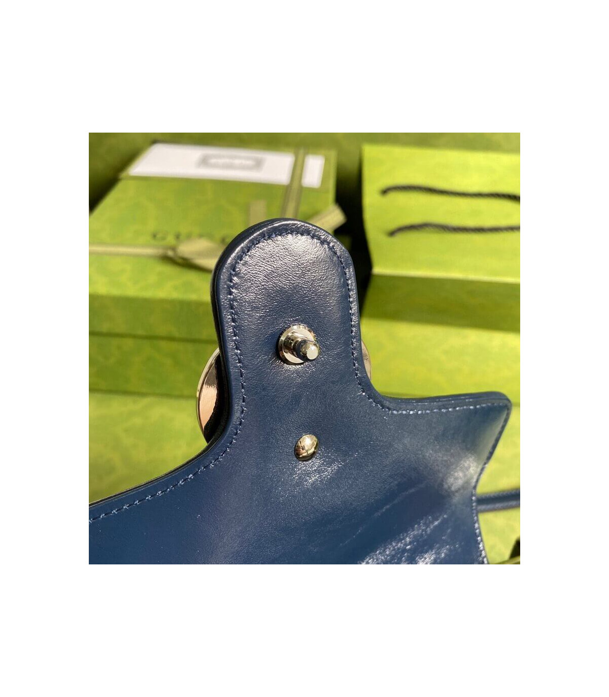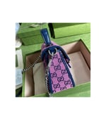 Embracing the new possibilities that lie within variations of the Gucci archives, various pieces throughout the collection provide a new lens through which to view the emblematic GG rhombi motif. Already an evolution of the House logo, it is once again reimagined in a series of bright colors―a theme that has become synonymous with the Creative Director’s vision. This GG Marmont mini top handle bag is part of the GG Multicolor collection.