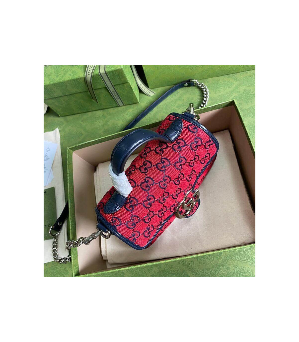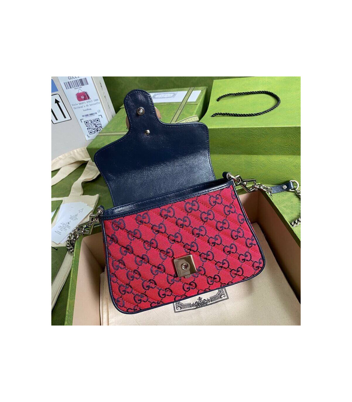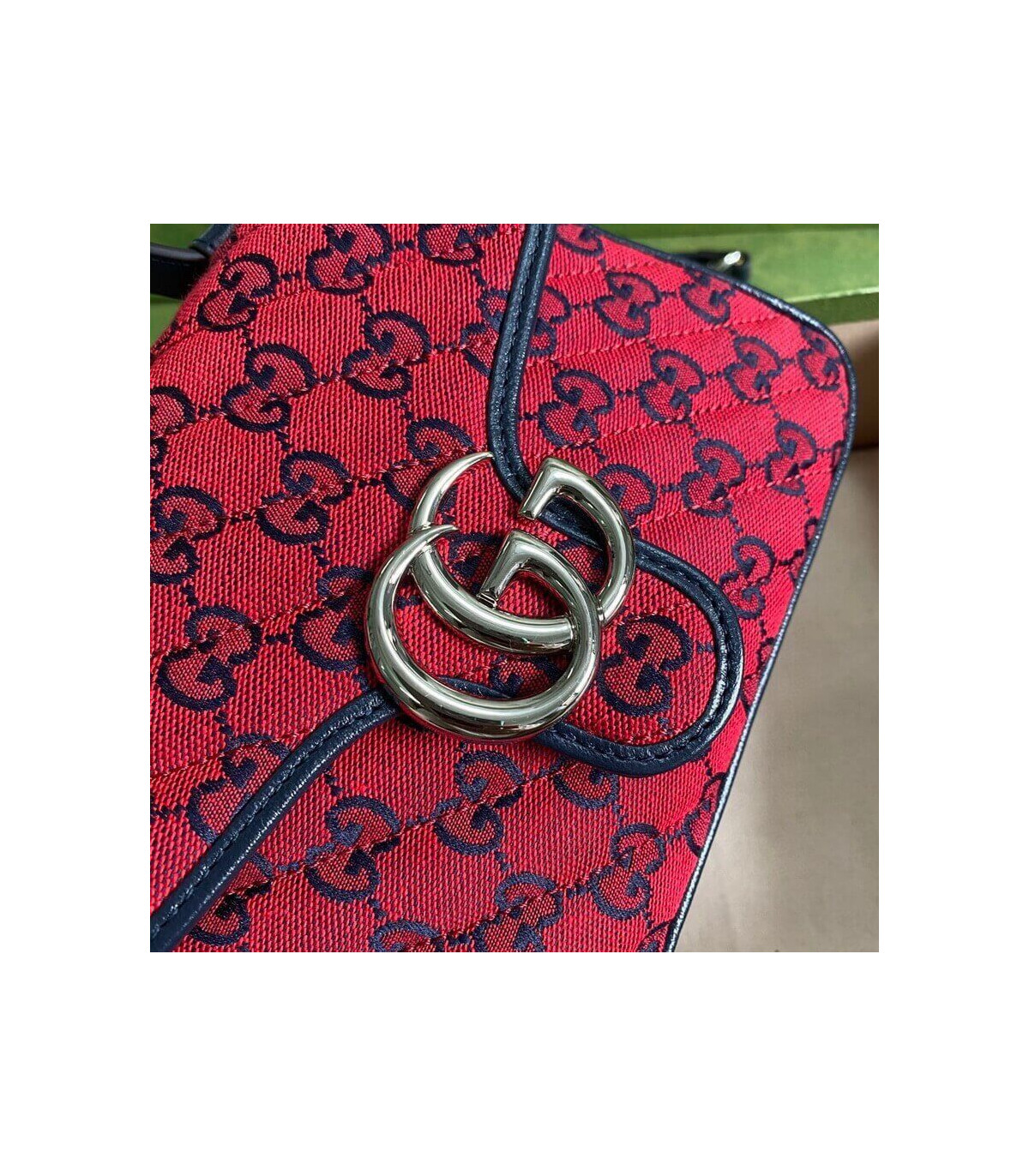 �C?Red and blue diagonal matelassé GG canvas