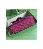 Embracing the new possibilities that lie within variations of the Gucci archives, various pieces throughout the collection provide a new lens through which to view the emblematic GG rhombi motif. Already an evolution of the House logo, it is once again reimagined in a series of bright colors―a theme that has become synonymous with the Creative Director’s vision. This GG Marmont mini top handle bag is part of the GG Multicolor collection.