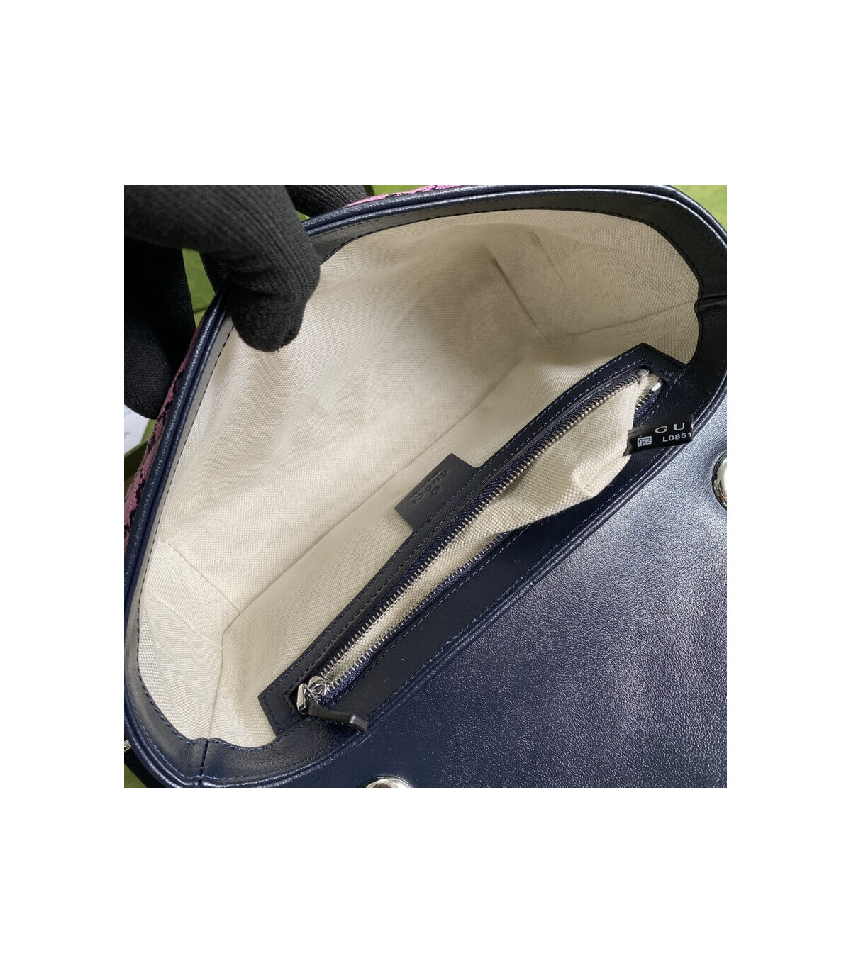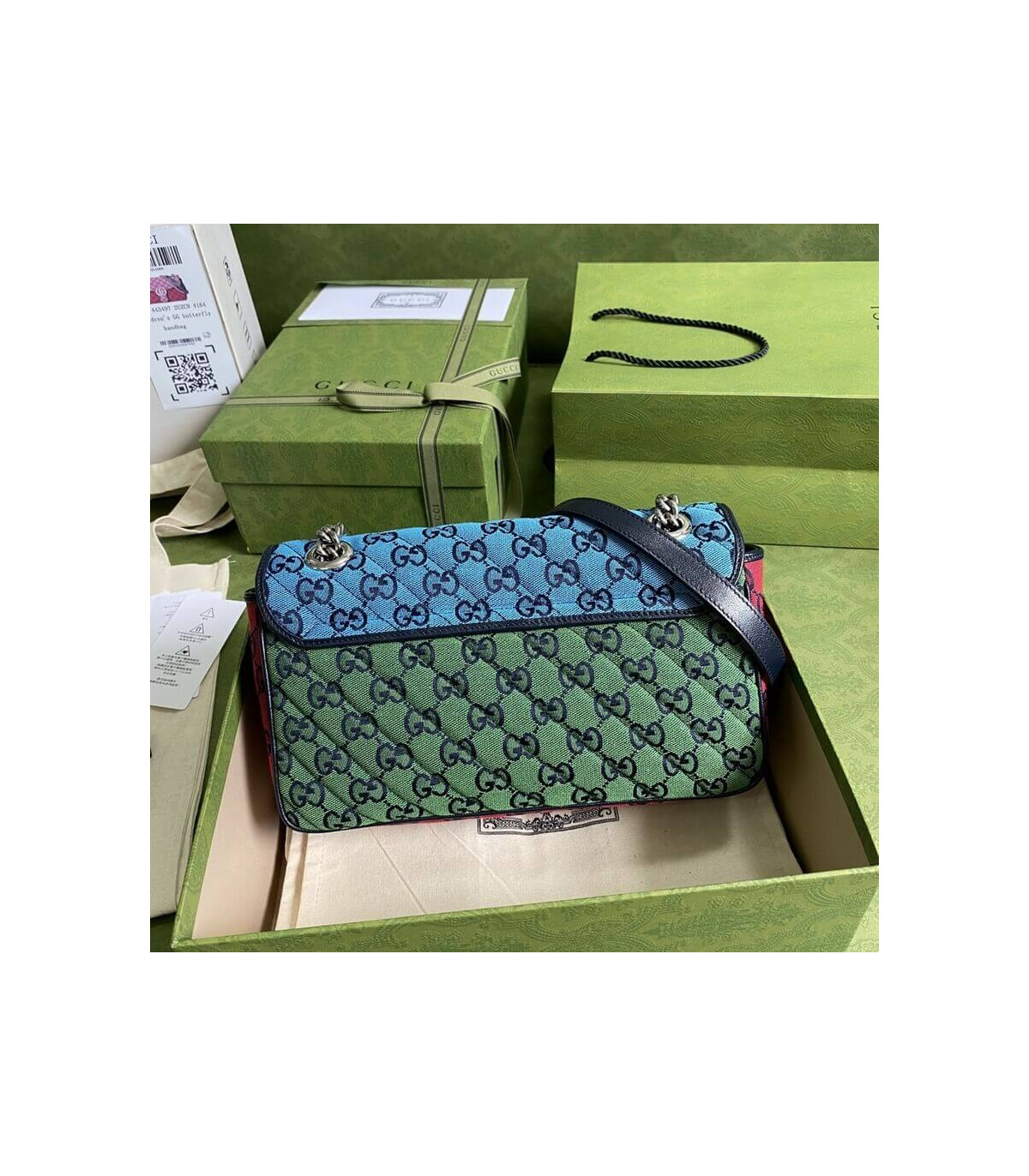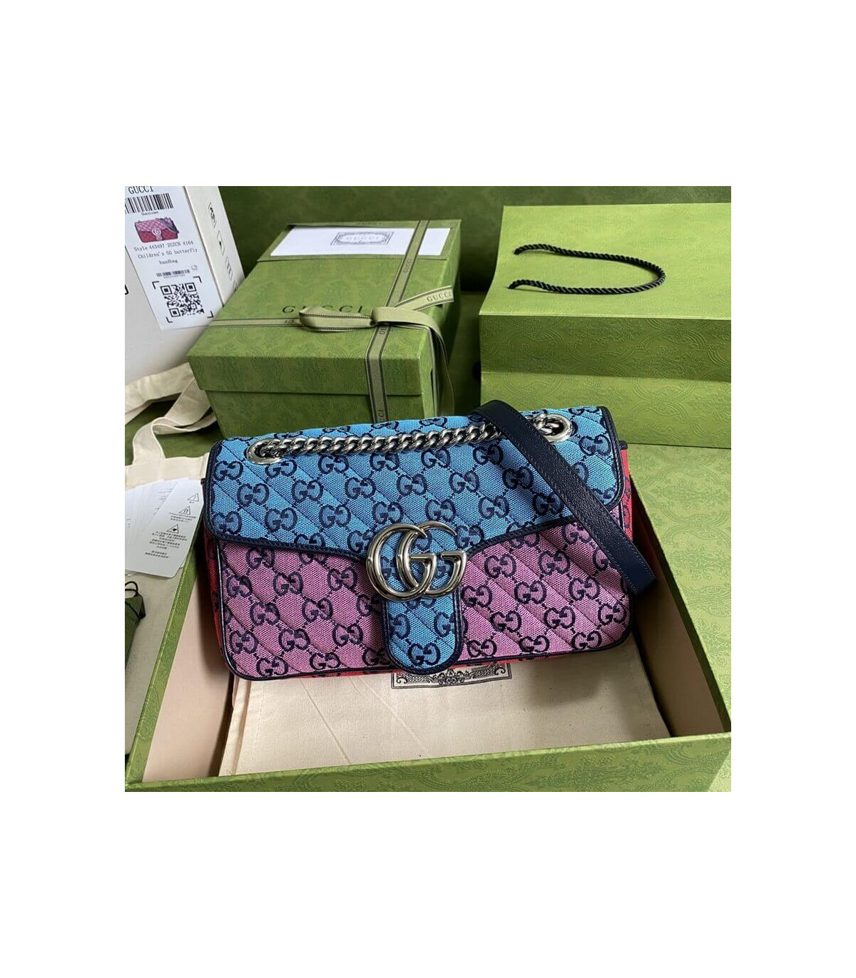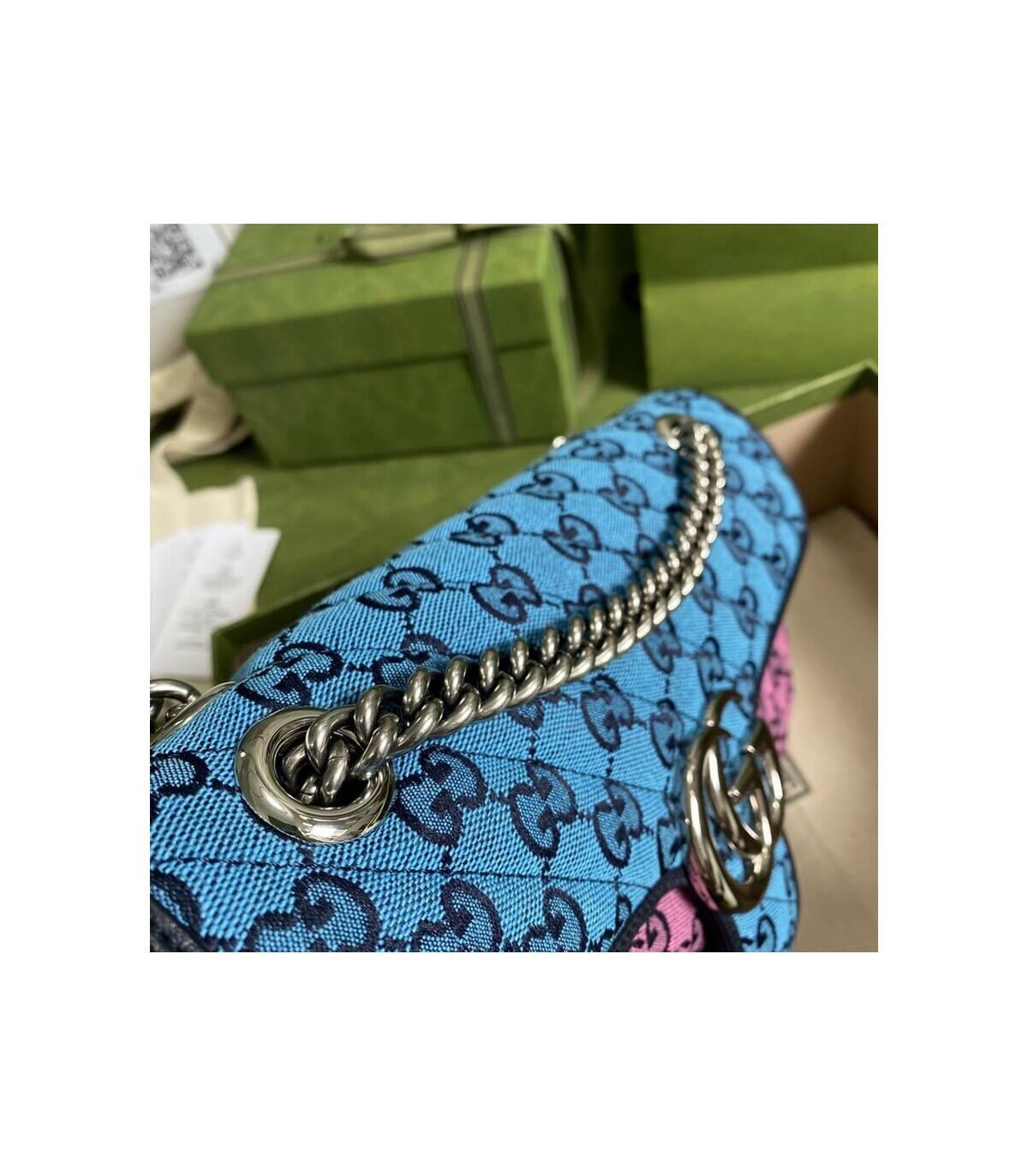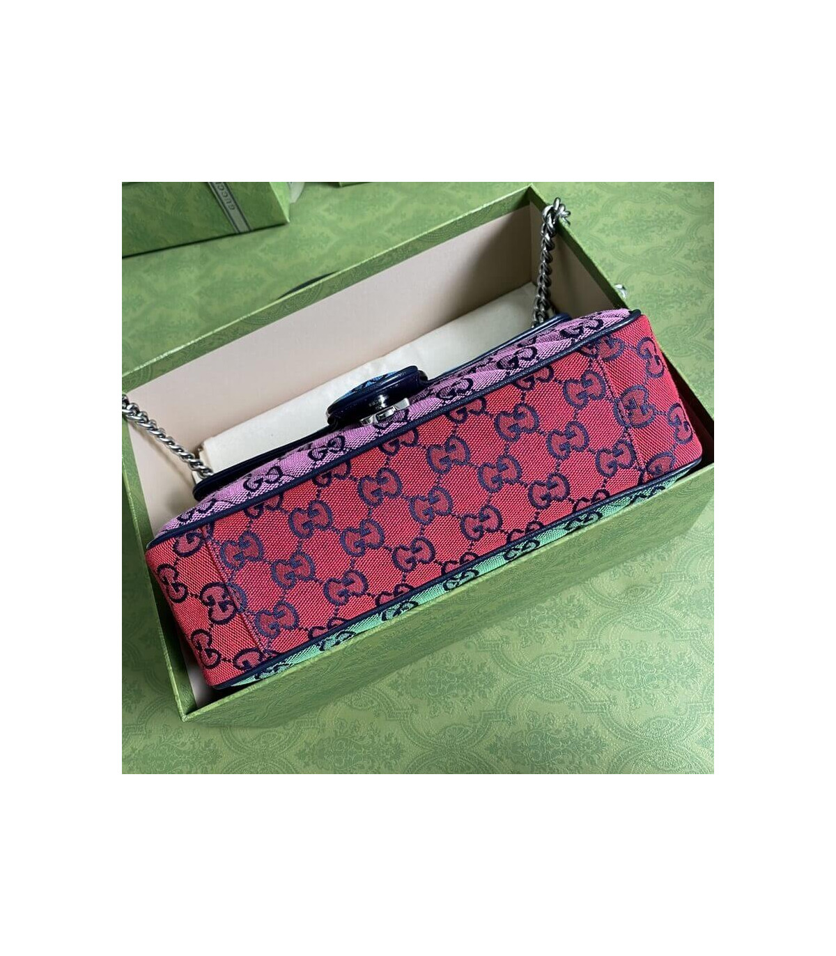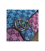 Embracing the new possibilities that lie within variations of the Gucci archives, various pieces throughout the collection provide a new lens through which to view the emblematic GG rhombi motif. Already an evolution of the House logo, it is once again reimagined in a series of bright colours―a theme that has become synonymous with the Creative Director’s vision. This GG Marmont small shoulder bag has an adjustable strap and is part of the GG Multicolour collection.