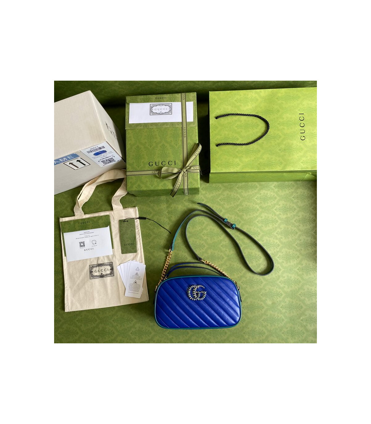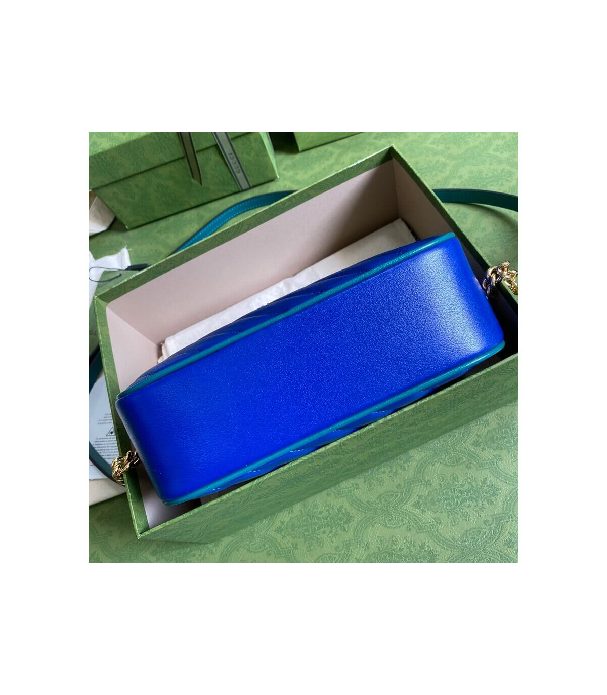 Reminiscent of precious emeralds, the GG Marmont bag is introduced in complementary shades of green leather. The Double G hardware, a signature feature of the line, is enriched with colorful enamel. The rectangular style is completed by a chain shoulder strap, allowing the accessory to be carried crossbody or on the shoulder.