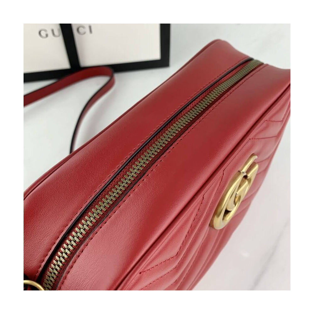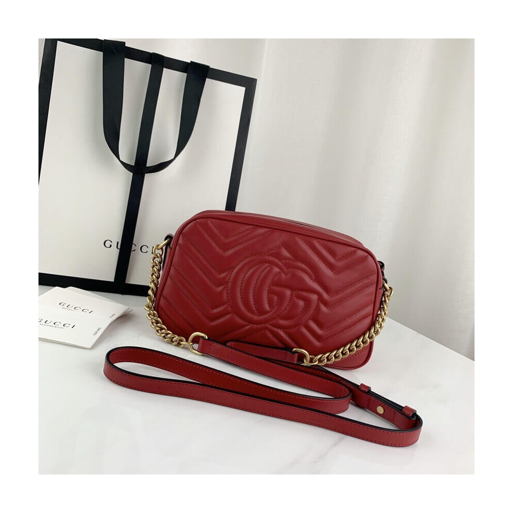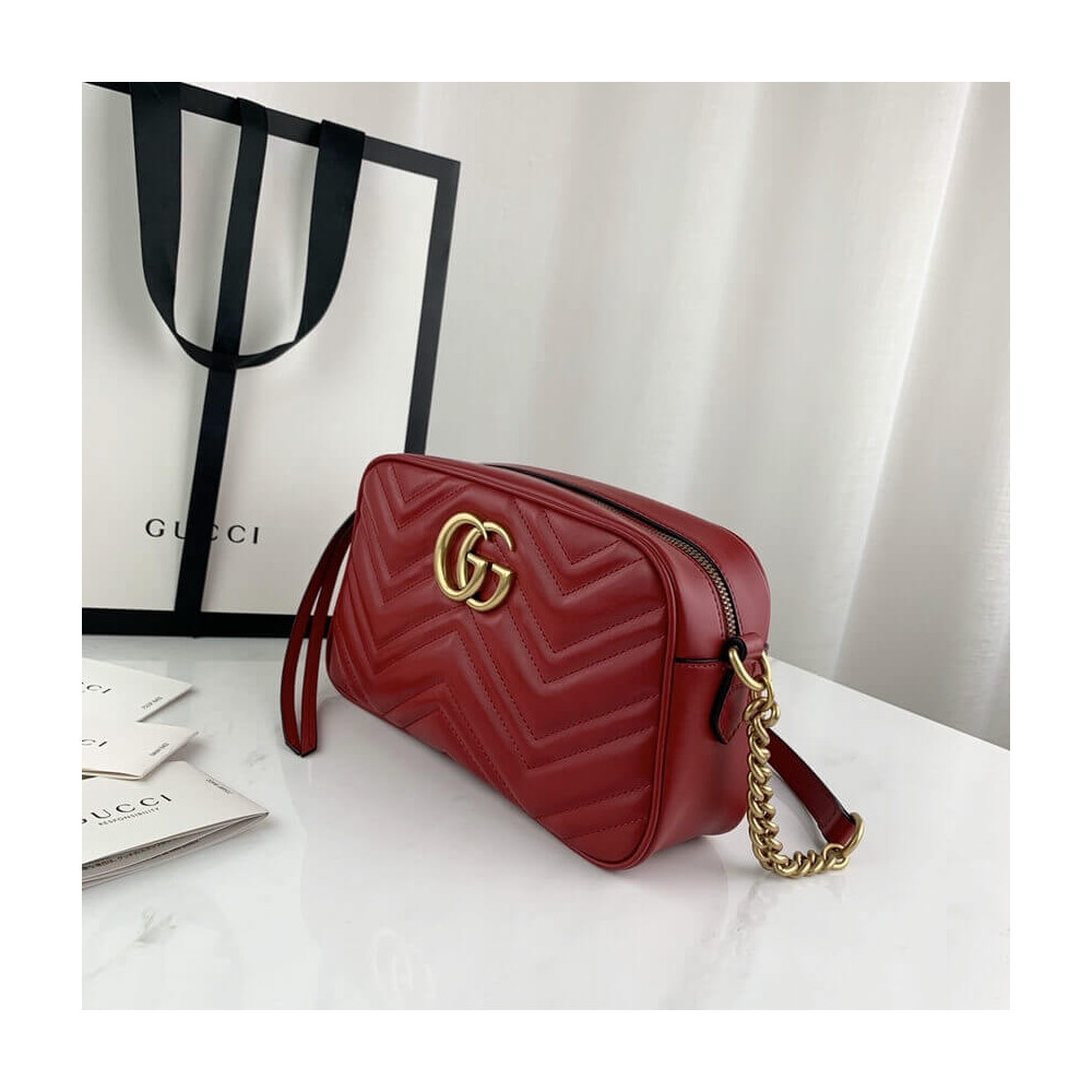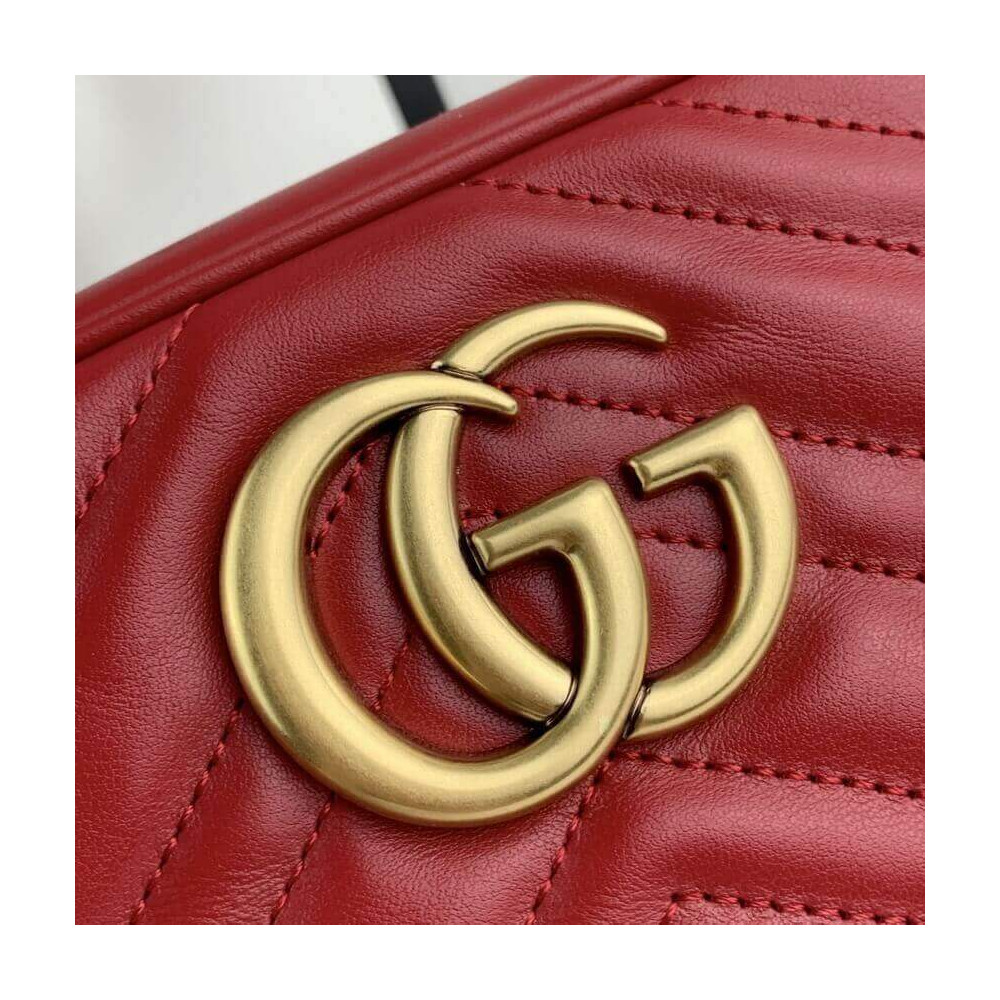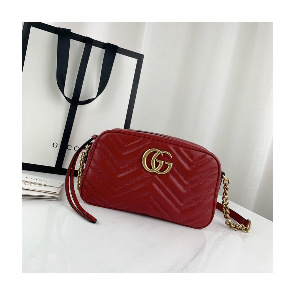 �C Hibiscus red matelassé chevron leather with GG on the back