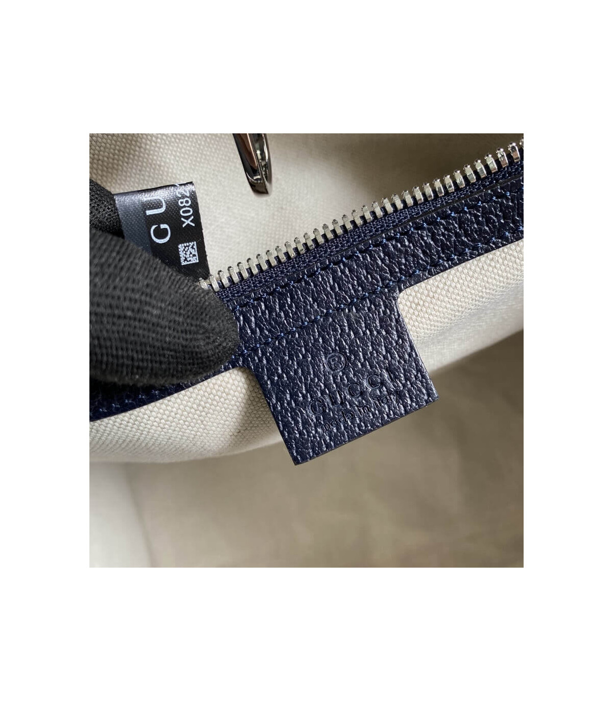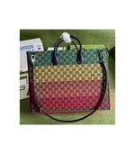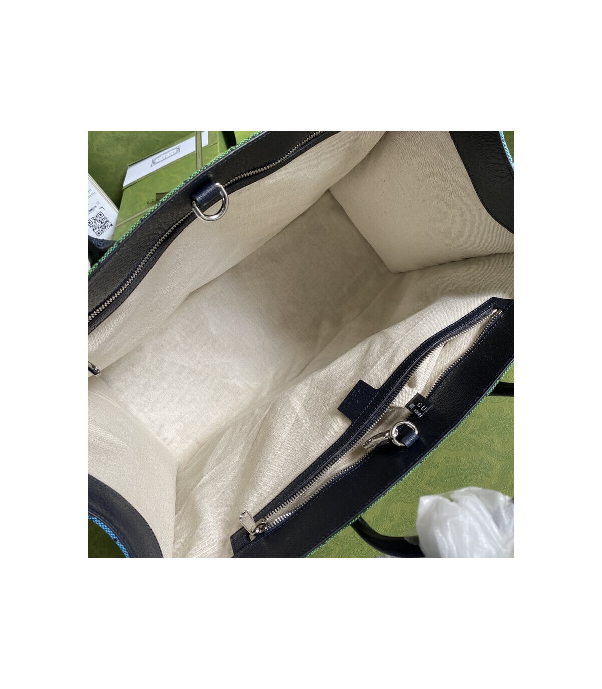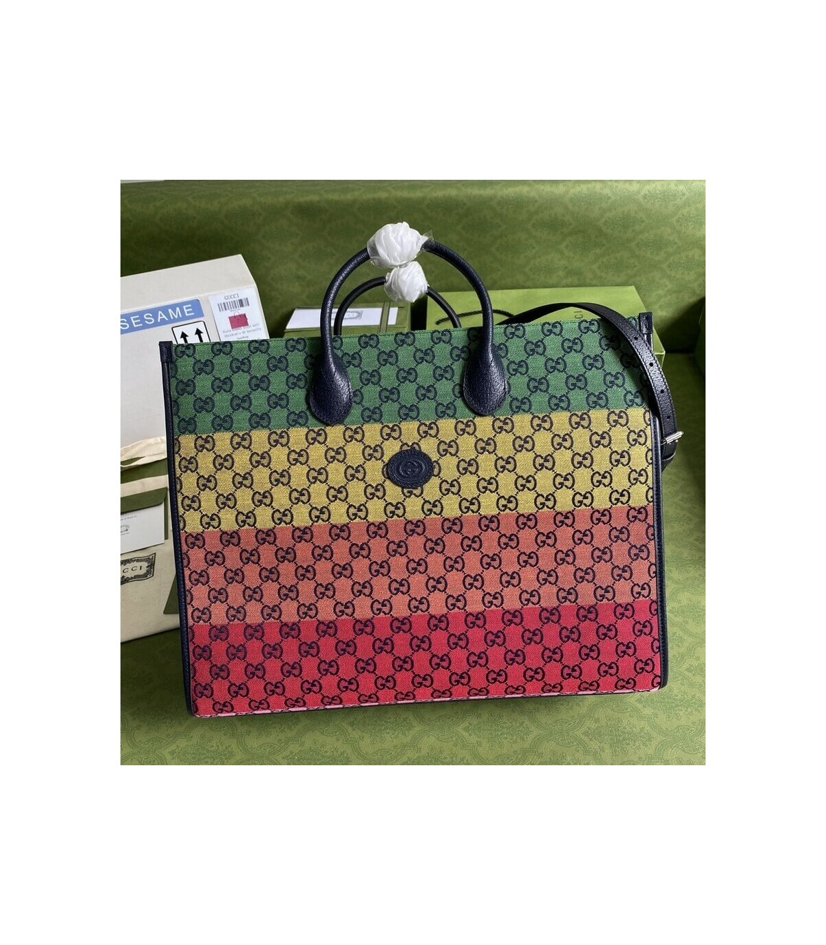 Embracing the new possibilities that lie within variations of the Gucci archives, various pieces throughout the collection provide a new lens through which to view the emblematic GG rhombi motif. Already an evolution of the House logo, it is once again reimagined in a series of bright colours―a theme that has become synonymous with the Creative Director’s vision. This large tote bag is part of the GG Multicolour collection.