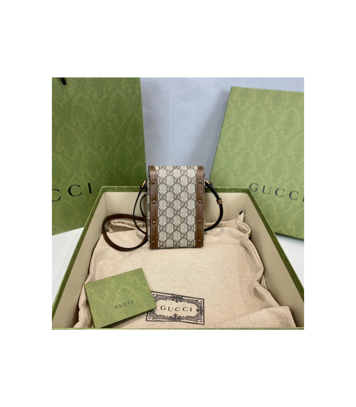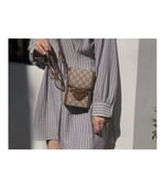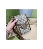 Presented in a petite rectangular shape, the Gucci Horsebit 1955 mini bag is introduced in the House’s monogram canvas. Inspired by archival designs, the accessory highlights the double ring and bar design that has been established as one of the most distinctive elements among the House symbols borrowed from the equestrian world. Pieces with versatile ways to wear and style embrace each person who is part of the House’s individual spirit.