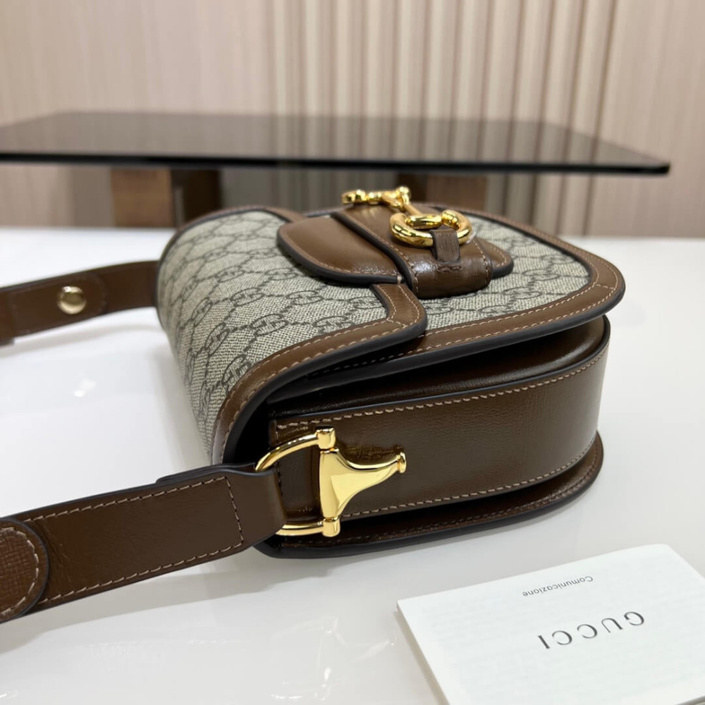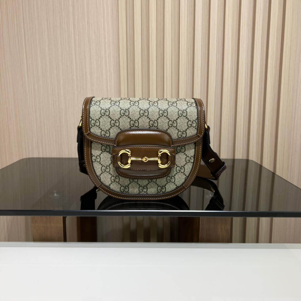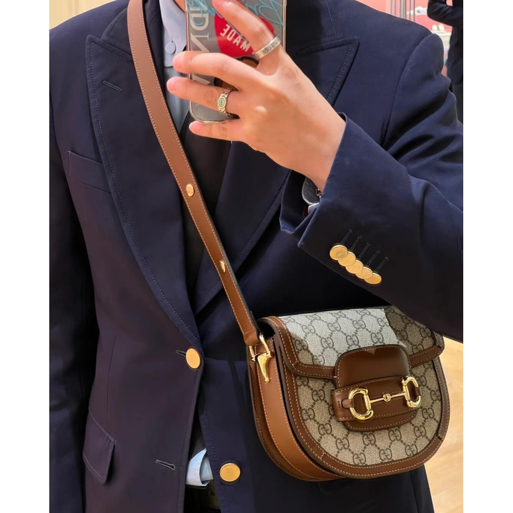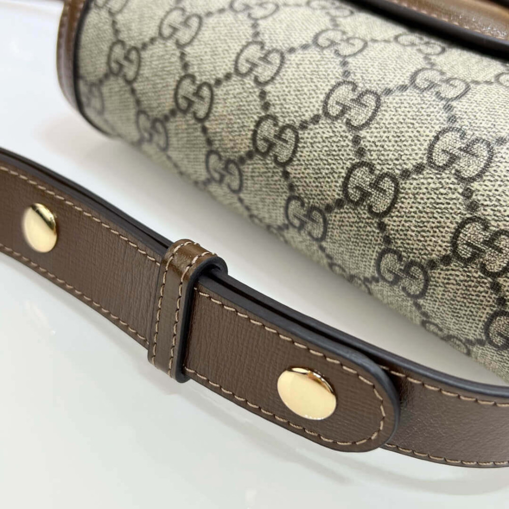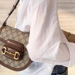 The Gucci 1955 Horsebit evolves as part of the latest collection with the addition of a mini shoulder bag variation, offering greater versatility and functionality. Presented in signature GG Supreme canvas with a flap closure, an adjustable shoulder strap completes the design.