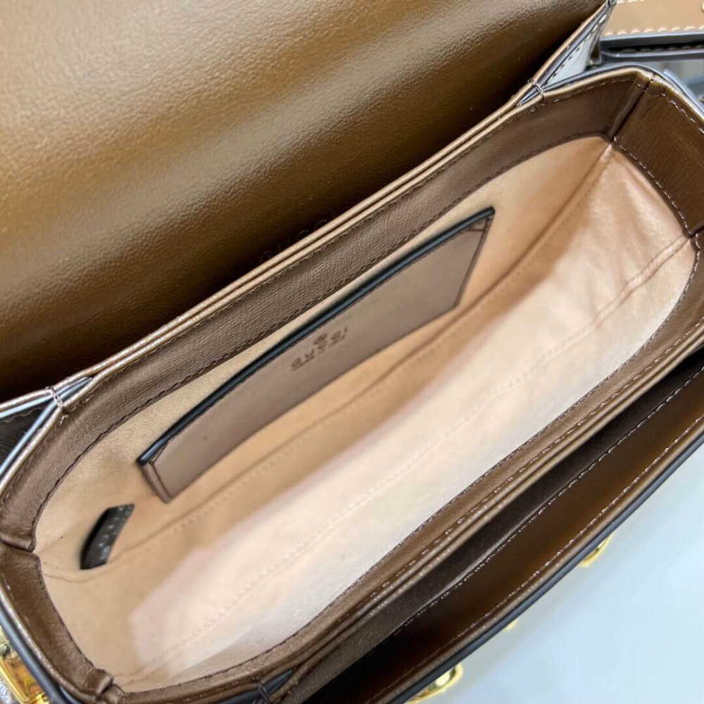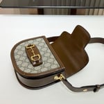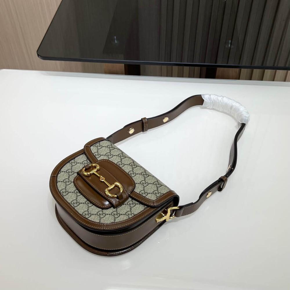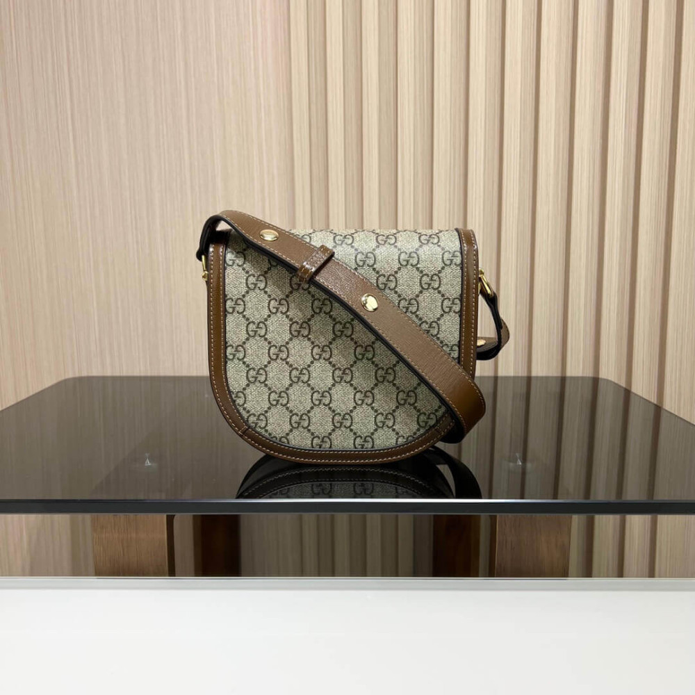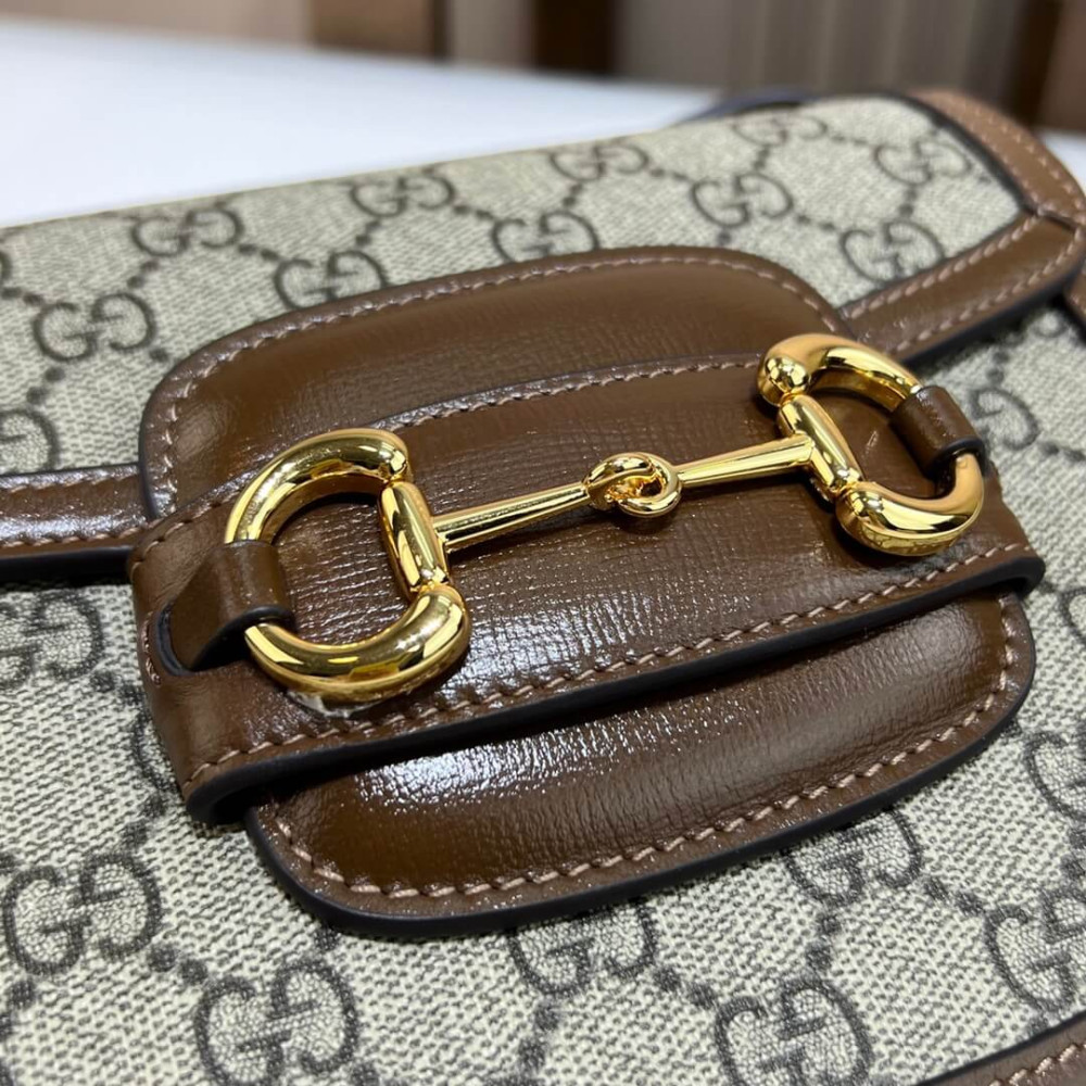 The Gucci 1955 Horsebit evolves as part of the latest collection with the addition of a mini shoulder bag variation, offering greater versatility and functionality. Presented in signature GG Supreme canvas with a flap closure, an adjustable shoulder strap completes the design.