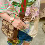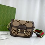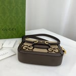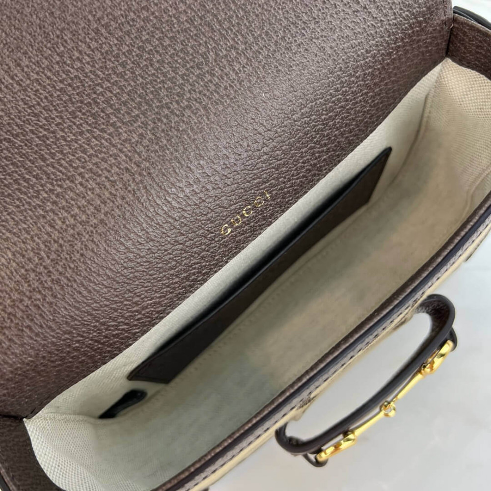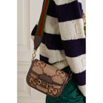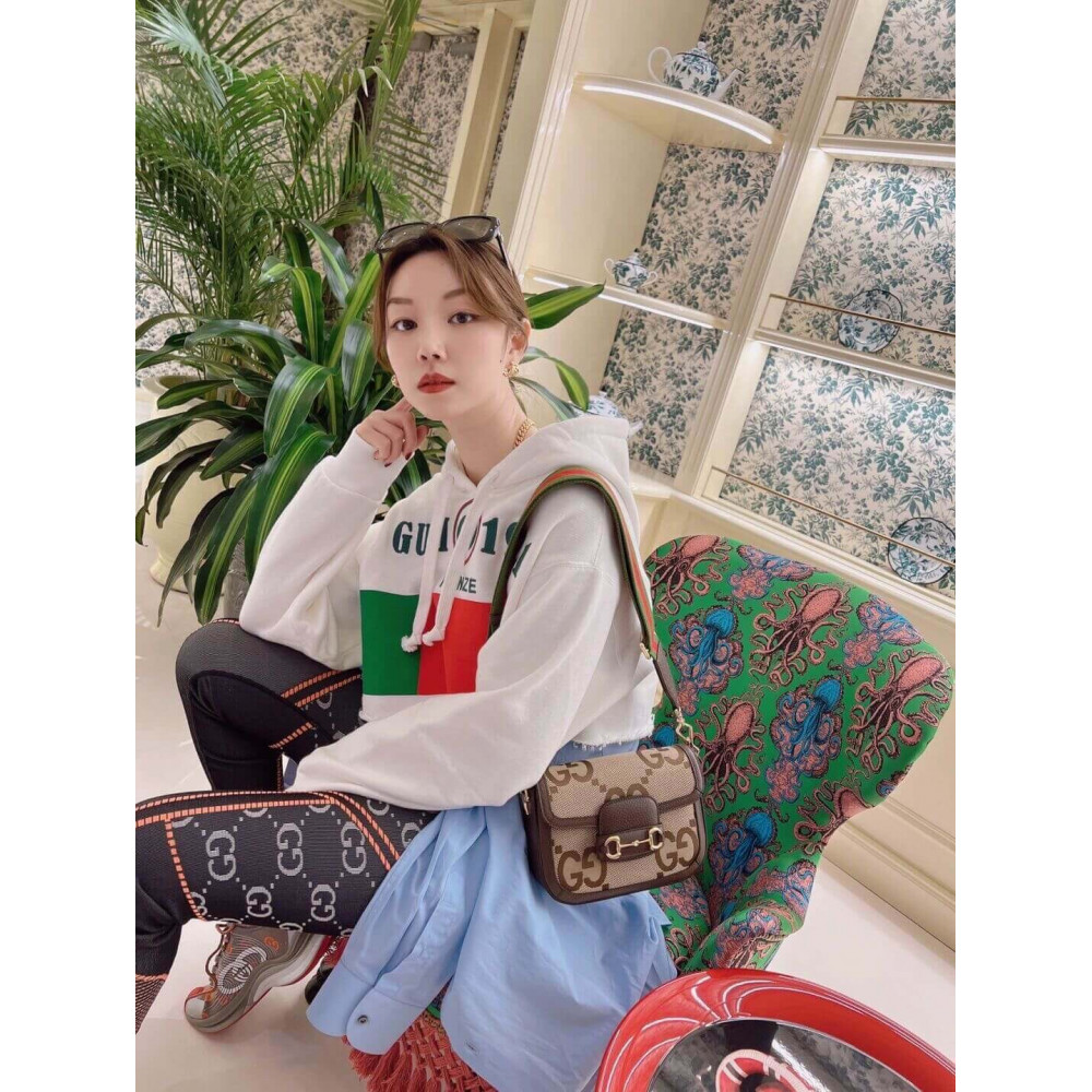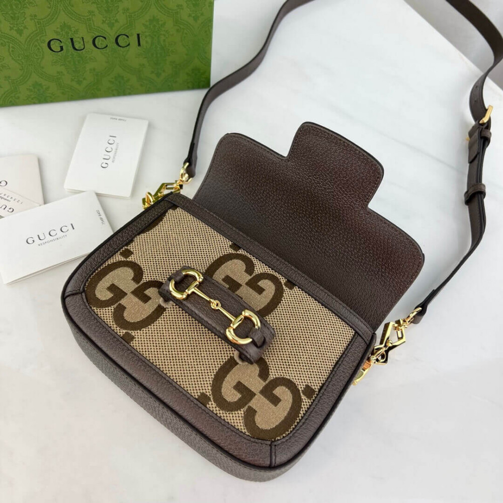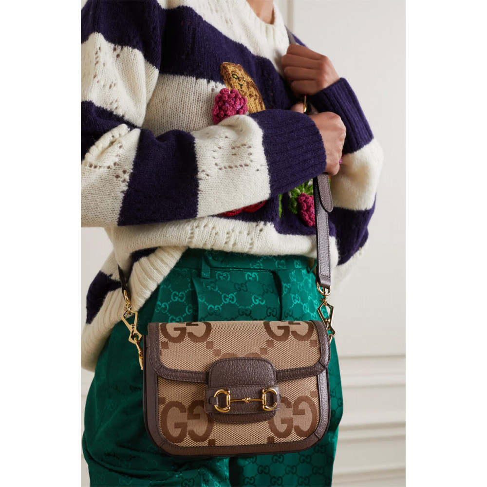 Instantly recognizable emblems of the brand, logos enrich designs in new and unexpected ways. Behind every logo lies the tradition and value of the House, an everlasting medium one can wear again and again. Following the idea of constant change and experimentation, different iterations of the logo have been presented each collection. The jumbo GG, a reimagined version of the historic monogram, defines this Gucci Horsebit 1955 mini bag.