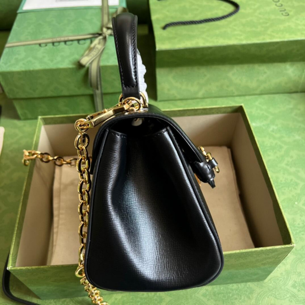 The Gucci Horsebit 1955 is presented as a top handle bag in light brown leather. The collection unifies details first introduced on the original bag that inspired the line from over six decades ago with a modern spirit, highlighting the Horsebit. Part of Gucci’s genetic code, the double ring and bar design has been established as one of the most distinctive elements among the House symbols borrowed from the equestrian world.