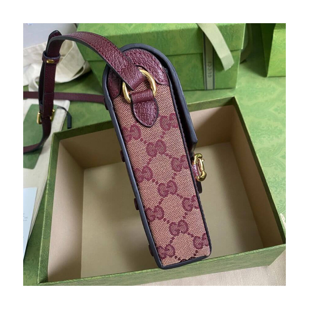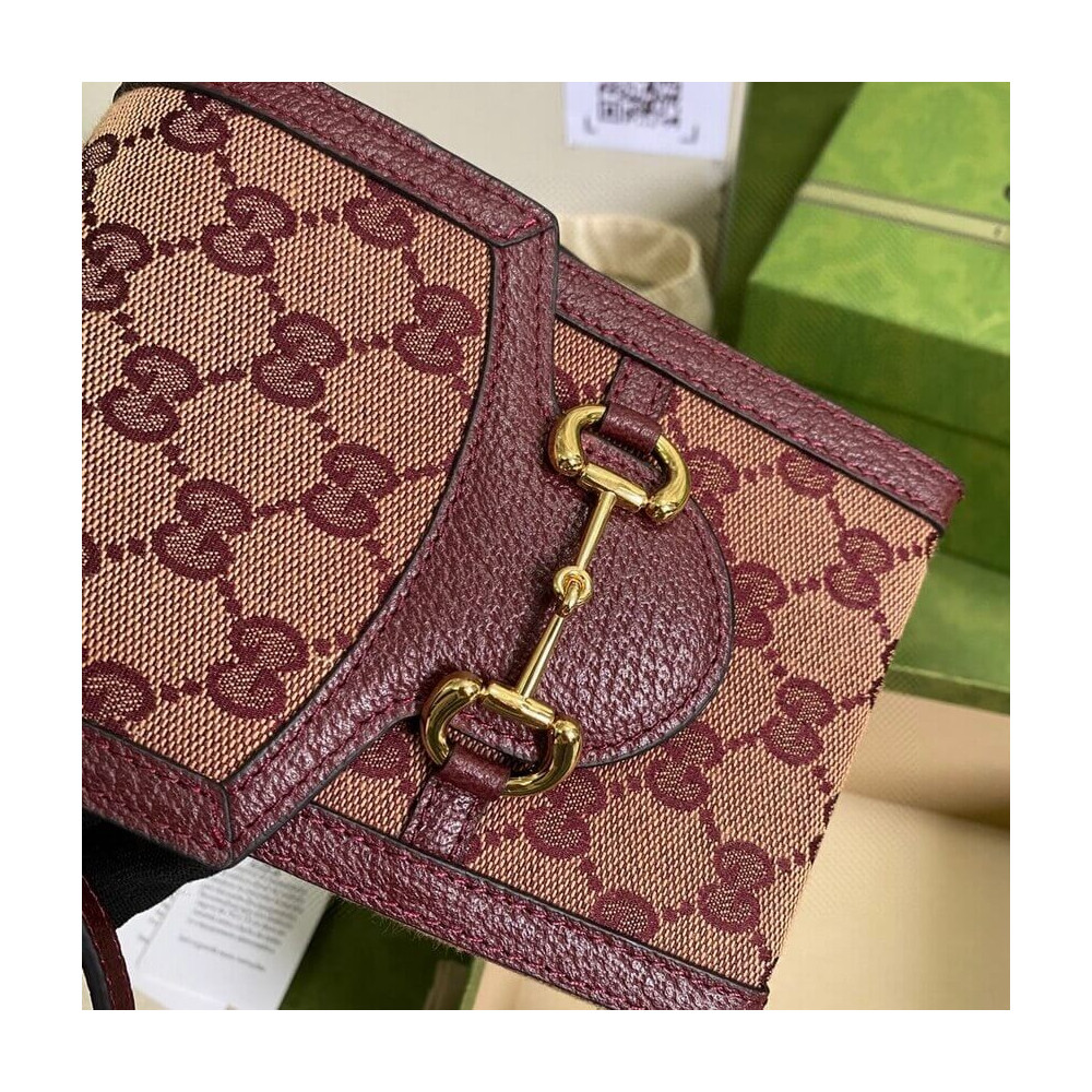 Designed with an adjustable leather strap and gold-toned Horsebit hardware, this Gucci Horsebit 1955 mini bag is crafted in Original GG canvas. A homage to the House’s past, the emblematic monogram pattern brings back the idea of all-logo-everything looks from the 1970s.