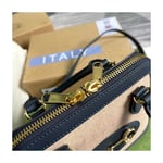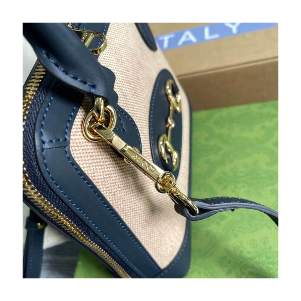 The Horsebit has become synonymous with the brand. Tracing back to Gucci’s equestrian roots, the double ring and bar design is a piece of the House’s heritage. Inspired by archival designs, the Gucci Horsebit 1955 unifies original details first introduced over six decades ago with a modern spirit. For Epilogue, the line is enriched with a mini shoulder bag in light blue leather.