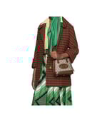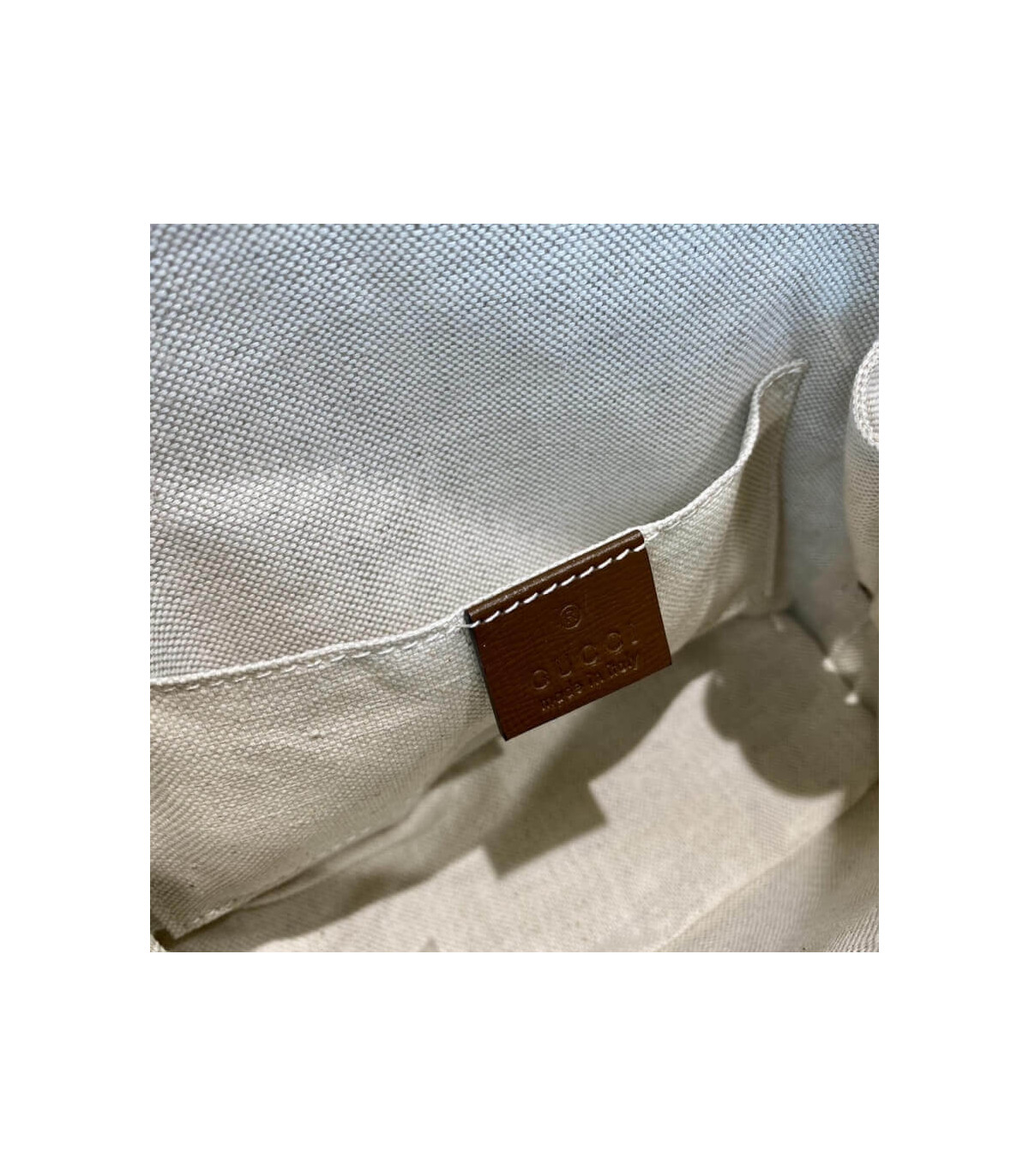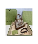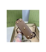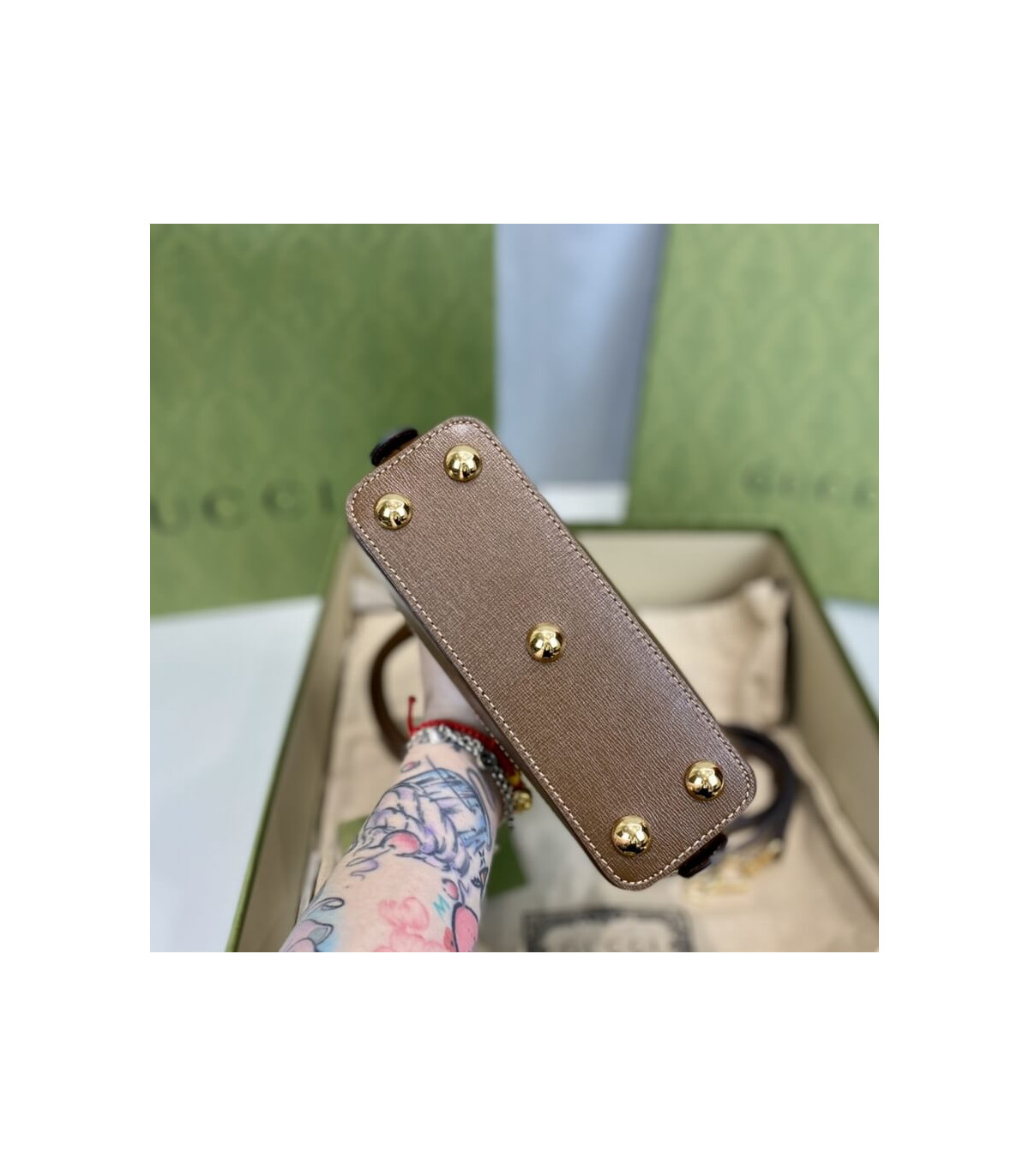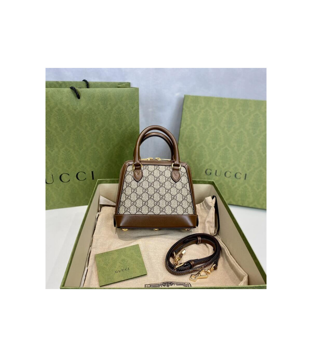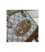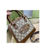 A modern nod to Gucci’s equestrian roots, this mini top handle from the Horsebit 1955 line blends heritage details with contemporary elegance. Crafted from GG Supreme canvas with brown leather trim, it features the iconic Horsebit detail and structured silhouette.