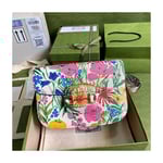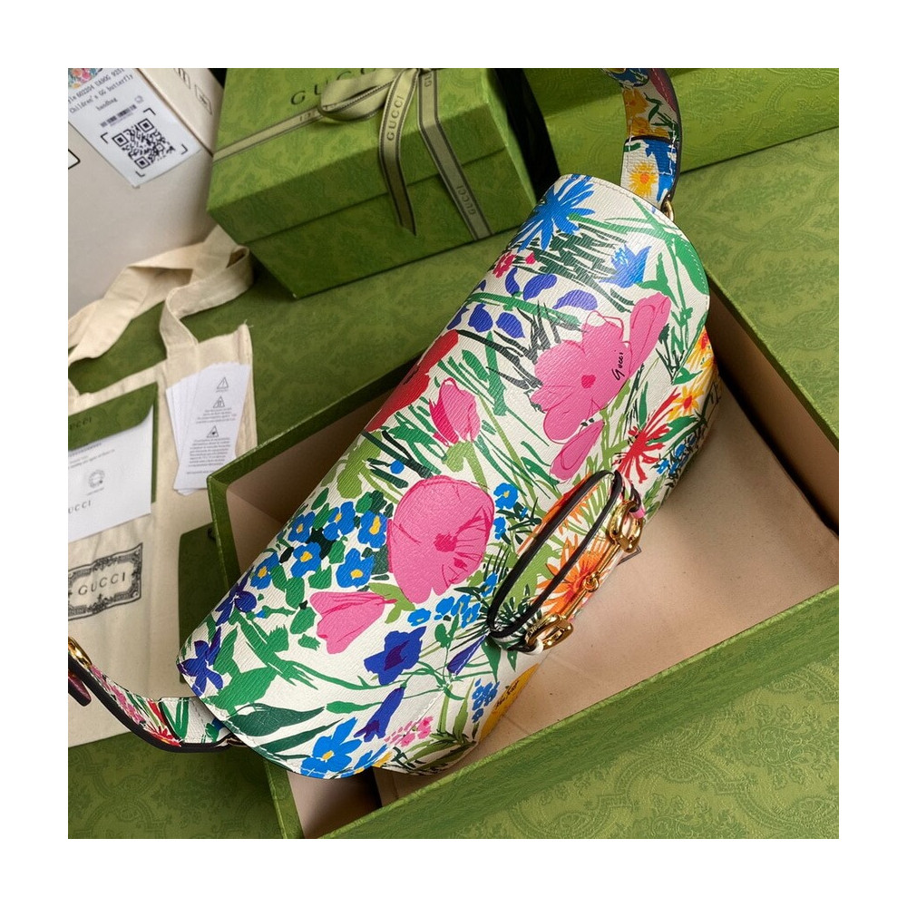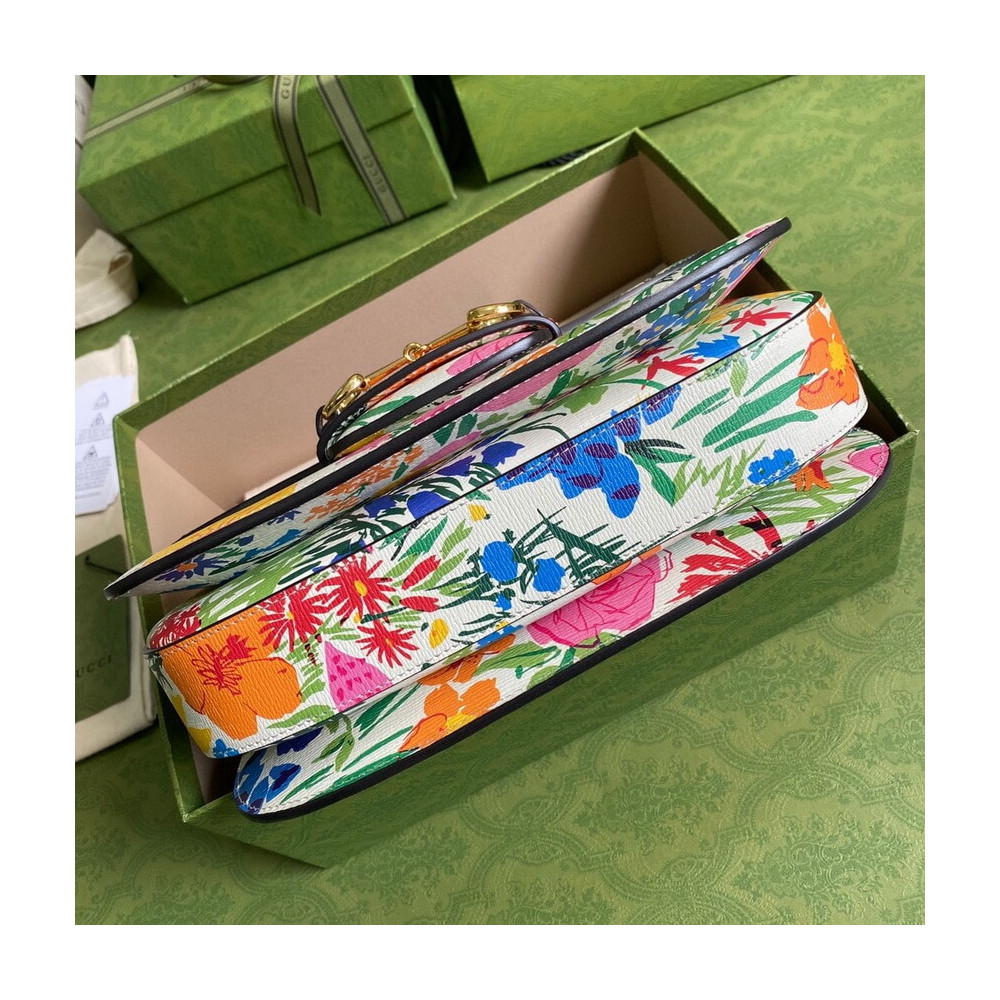 A bright botanical print by Ken Scott animates this small shoulder bag. Nicknamed the ‘Fashion Gardener,’ Ken Scott is an American designer who lived in Milan in the ’60s and ’70s and whose colourful floral drawings reflect his eclectic personality. The Gucci Horsebit 1995 shoulder bag is completed by its signature gold-toned hardware. Pieces with versatile ways to wear and style embrace each person who is part of the House’s individual spirit.