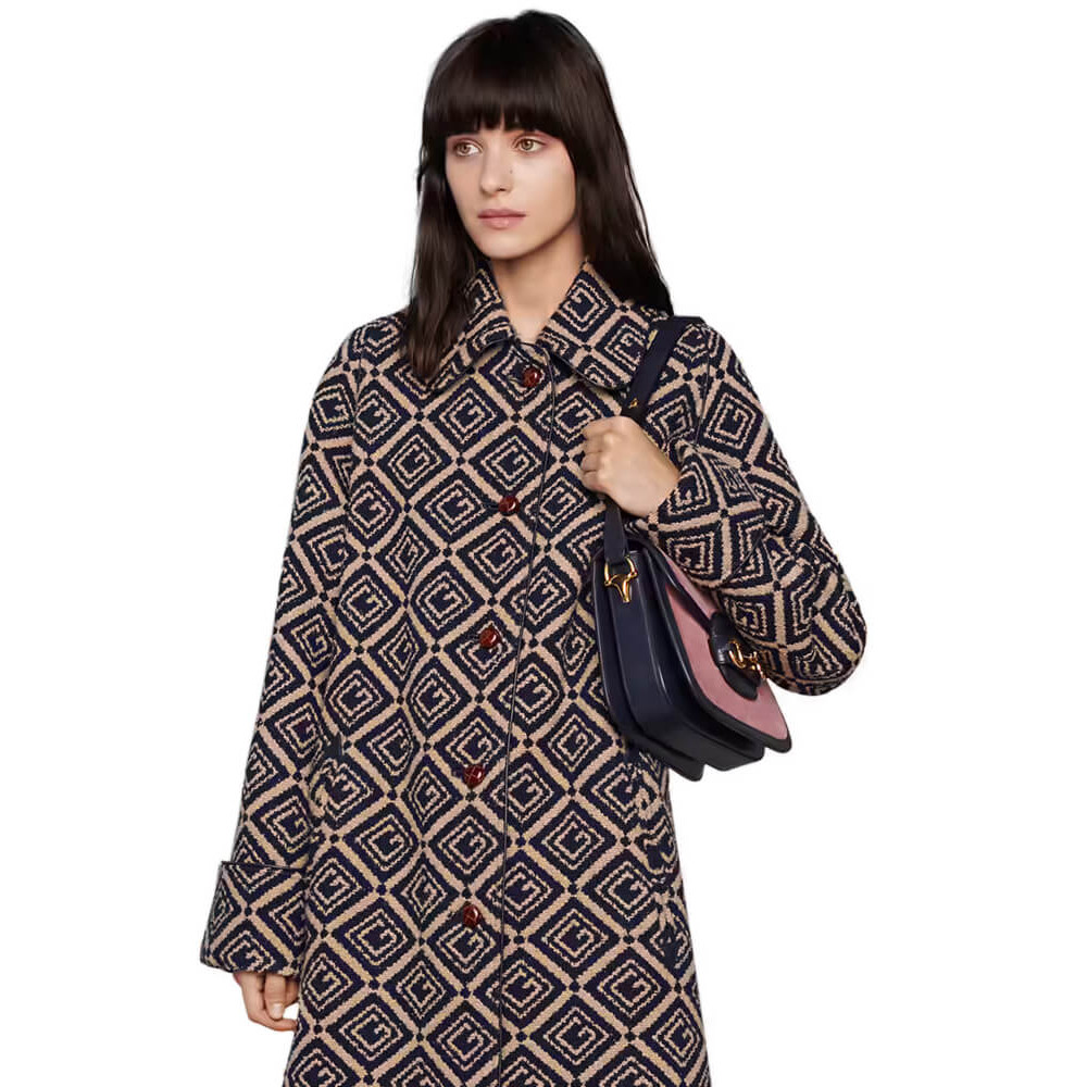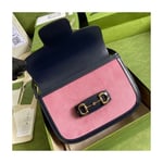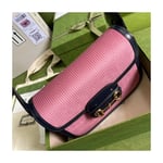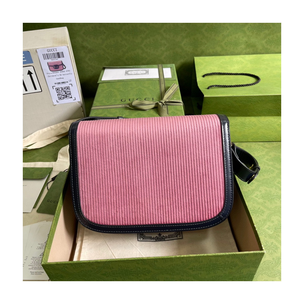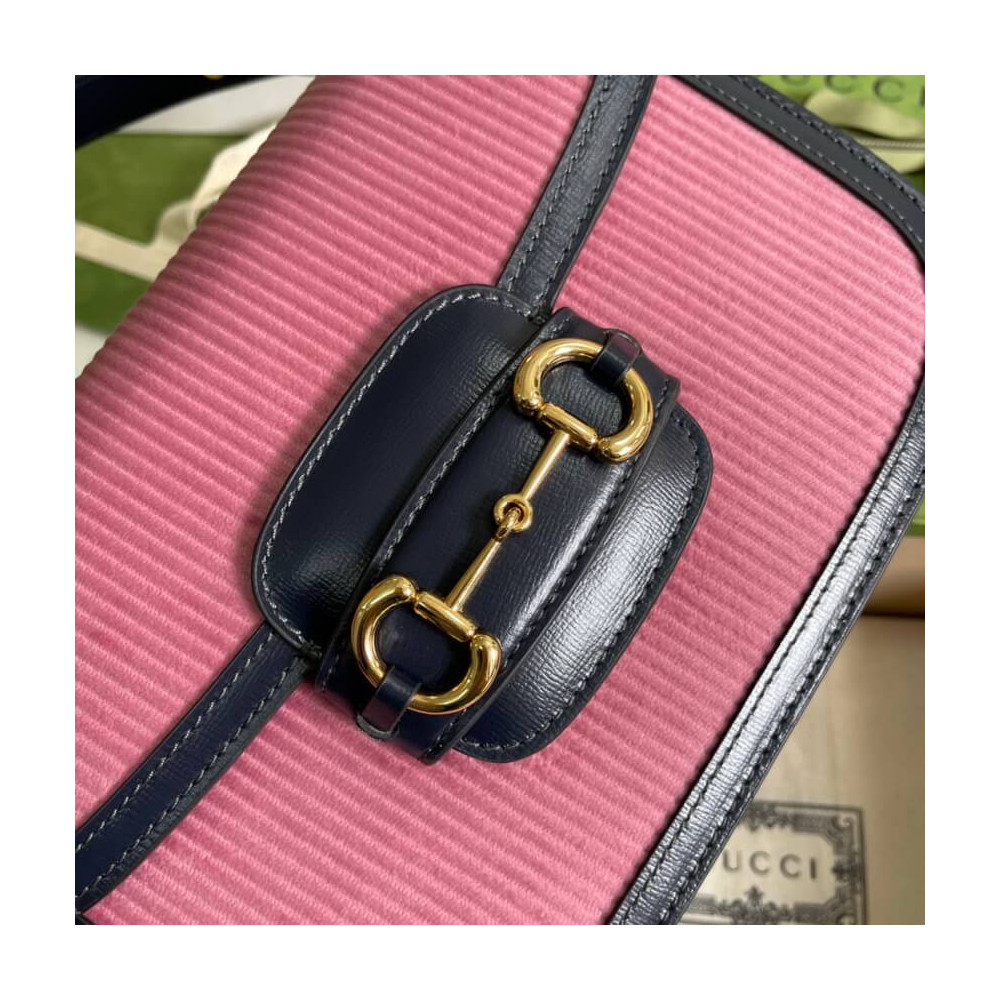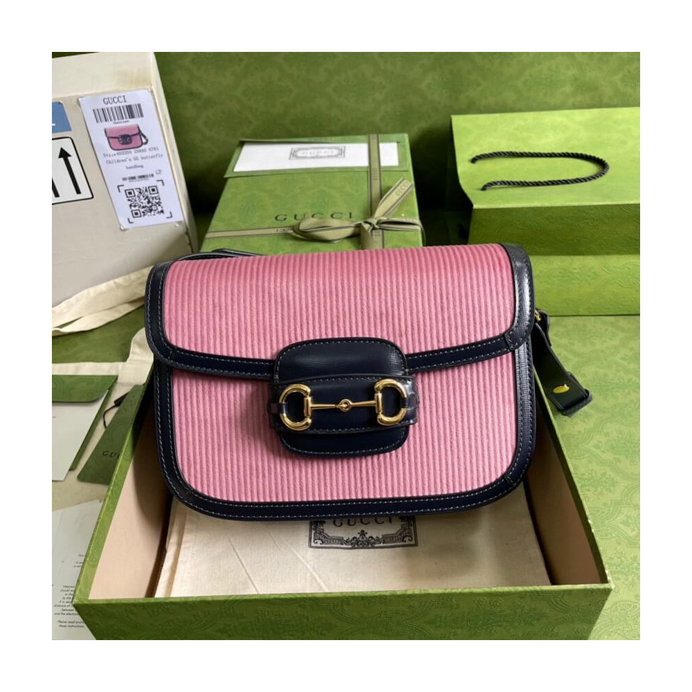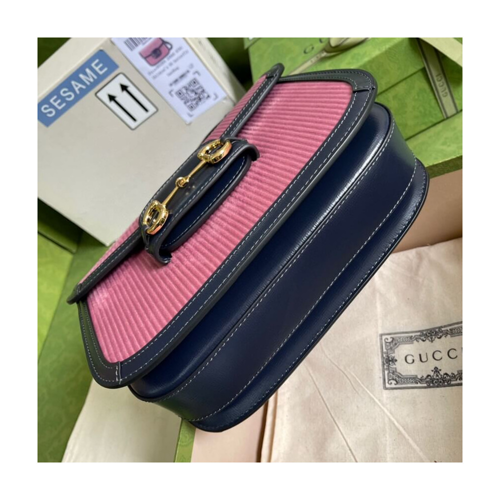 Recreated from an archival design, the Gucci Horsebit 1955 bag is introduced in pink corduroy with a contrasting blue leather trim. With the same lines and forms first introduced over six decades ago, the accessory unifies the original details with a modern spirit, highlighting the Horsebit. The small flap shoulder bag is completed with a special mechanism that adjusts the length of the shoulder strap so it can be carried on one shoulder or cross body.