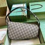 As the historic Horsebit hardware celebrates its 70th anniversary, the House looks at new ways of combining archival features with contemporary silhouettes. Introduced as part of the latest Cruise 2024 collection, this Supreme canvas Gucci Horsebit 1955 handbag is defined by an asymmetrical shape that lends a modern feel to the renowned line.