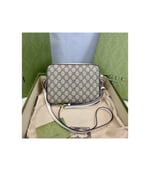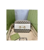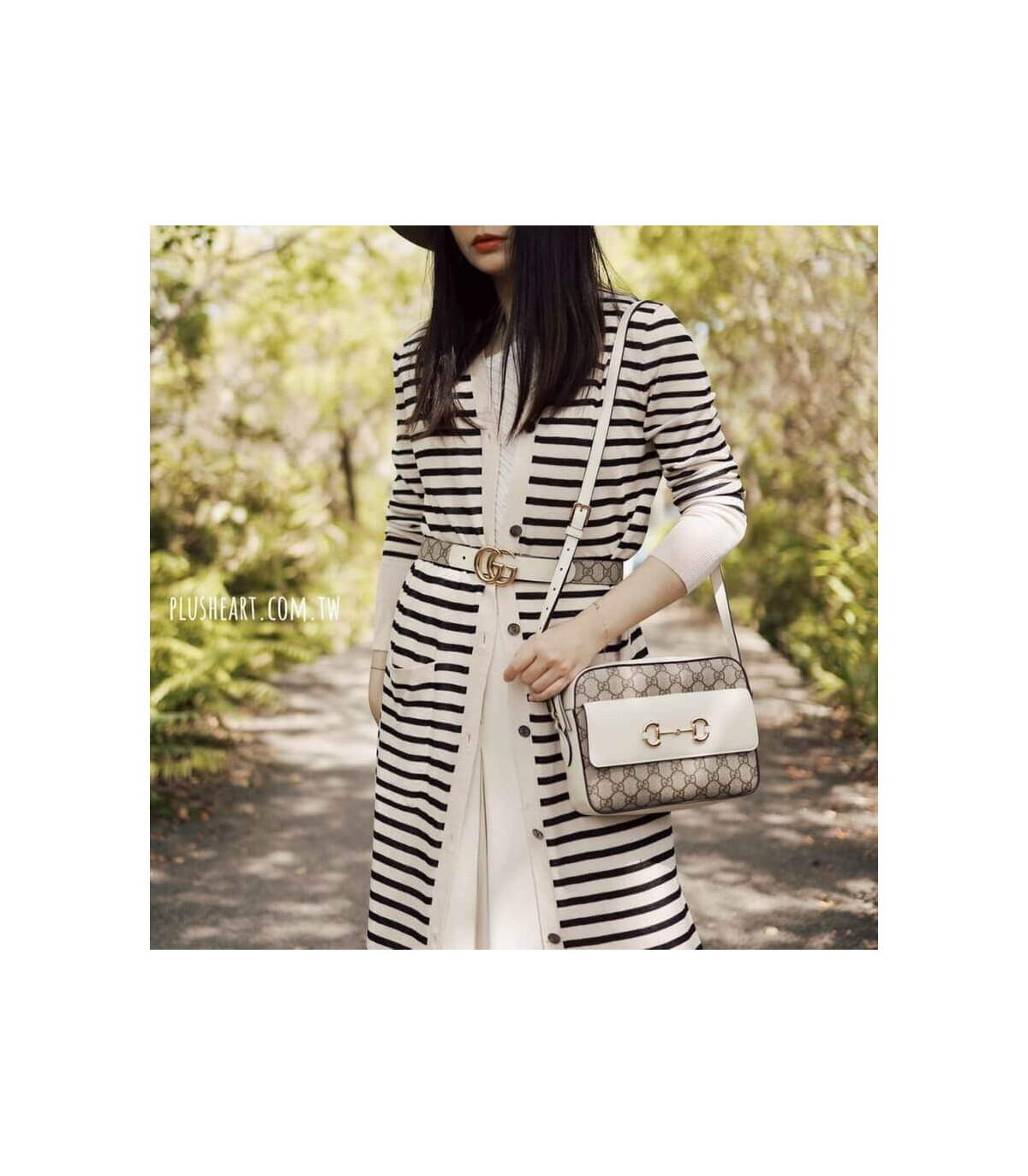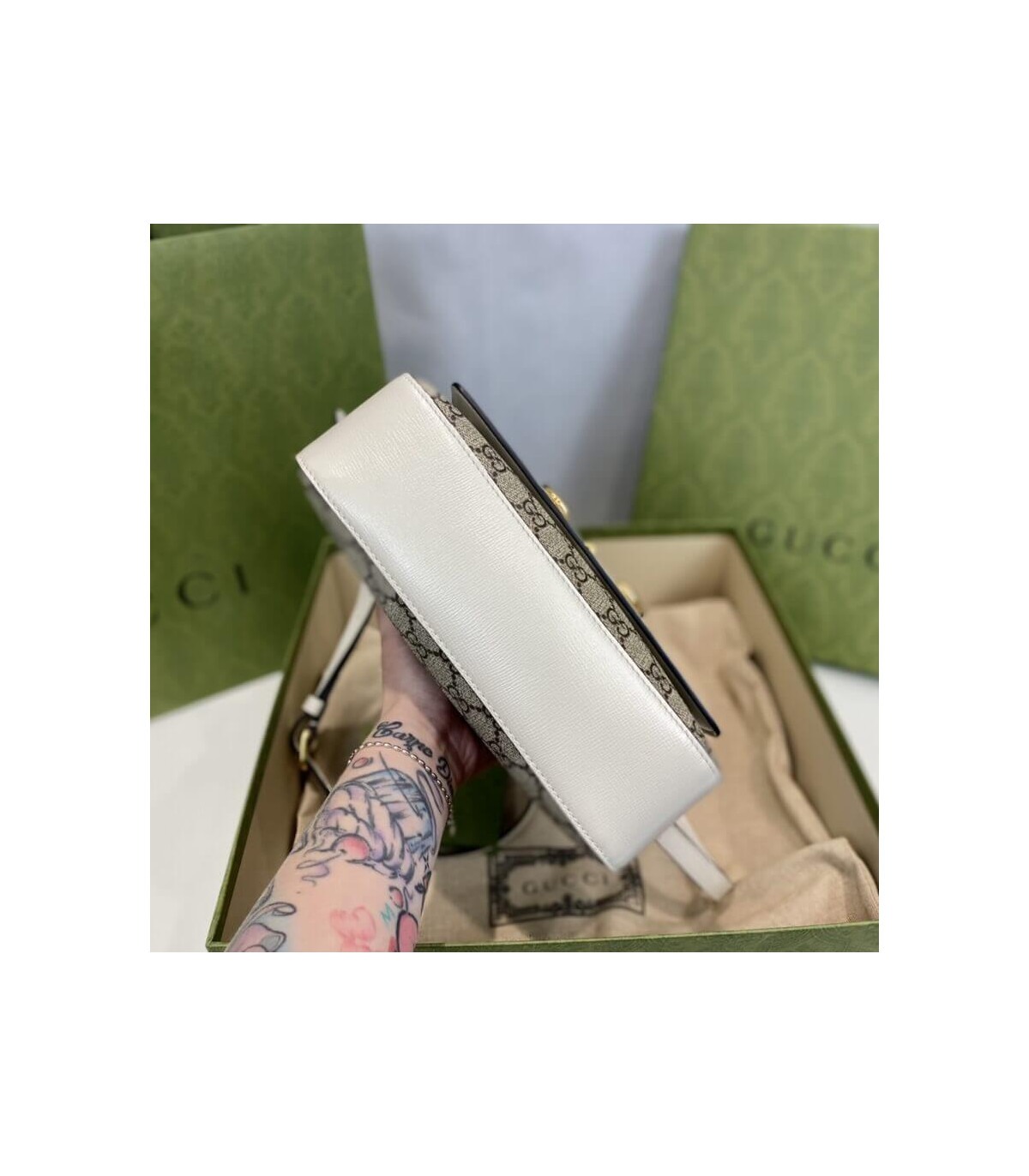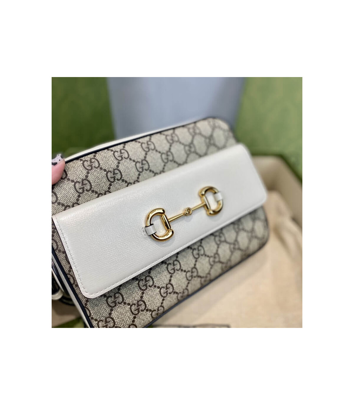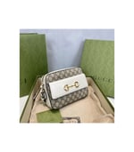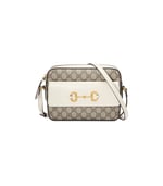 The Horsebit has become synonymous with the brand. Tracing back to Gucci’s equestrian roots, the double ring and bar design is a piece of the House’s heritage. Inspired by archival designs, the Gucci Horsebit 1955 unifies original details first introduced over six decades ago with a modern spirit. For Epilogue, the line is enriched with a small shoulder bag in GG Supreme canvas with contrasting white leather details and a special mechanism that adjusts the length of the shoulder strap so it can be carried on one shoulder or cross body.