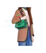 A part of the House’s Beloved lines, the Gucci Horsebit 1955’s signature namesake hardware is complemented by ruby toned leather with a pastel pink trim. Jewel tones appear throughout the Ouverture collection, linking the lines dear to the Hose with precious stones and gems.
