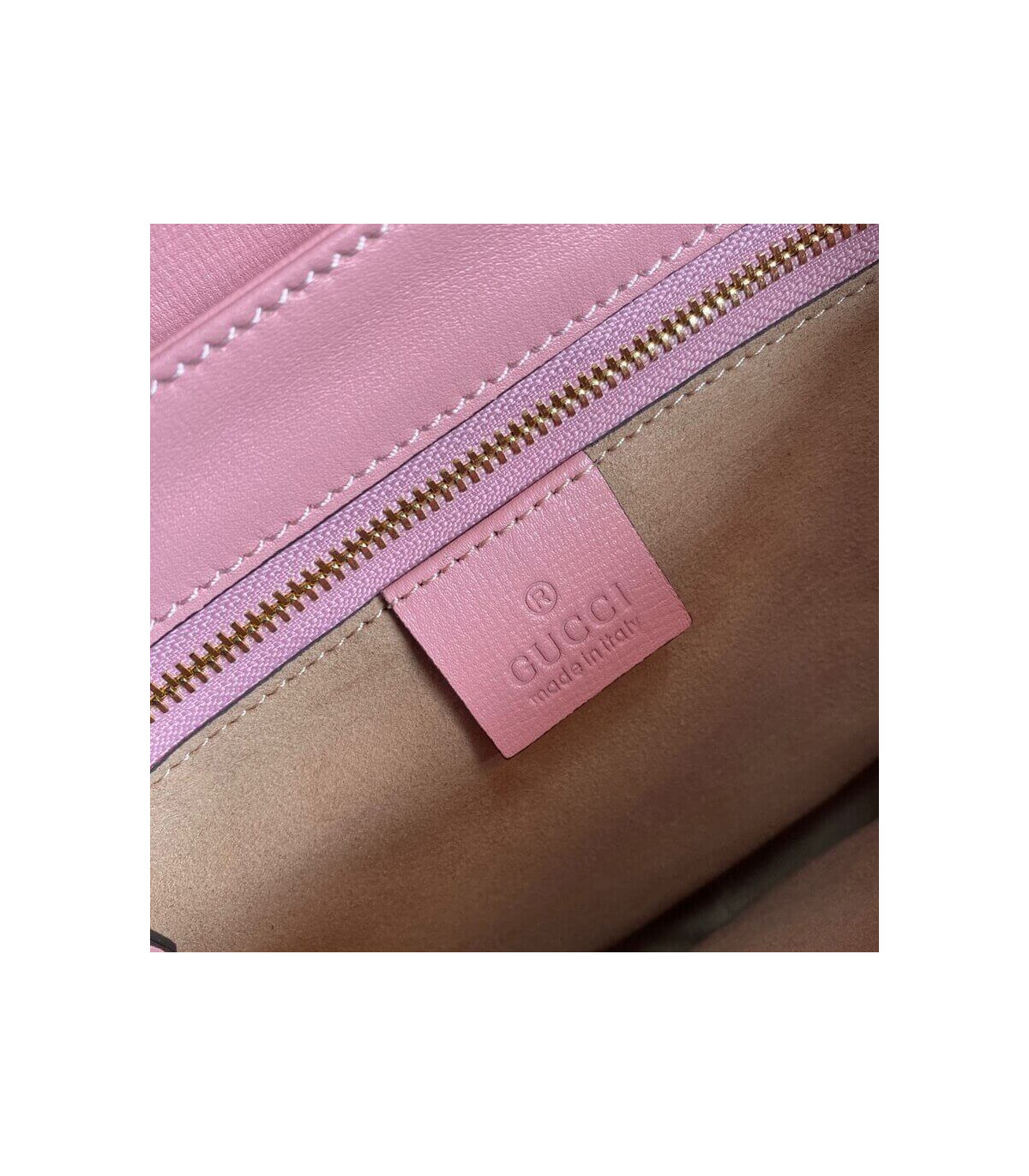 A part of the House’s Beloved lines, the Gucci Horsebit 1955’s signature namesake hardware is complemented by ruby toned leather with a pastel pink trim. Jewel tones appear throughout the Ouverture collection, linking the lines dear to the Hose with precious stones and gems.