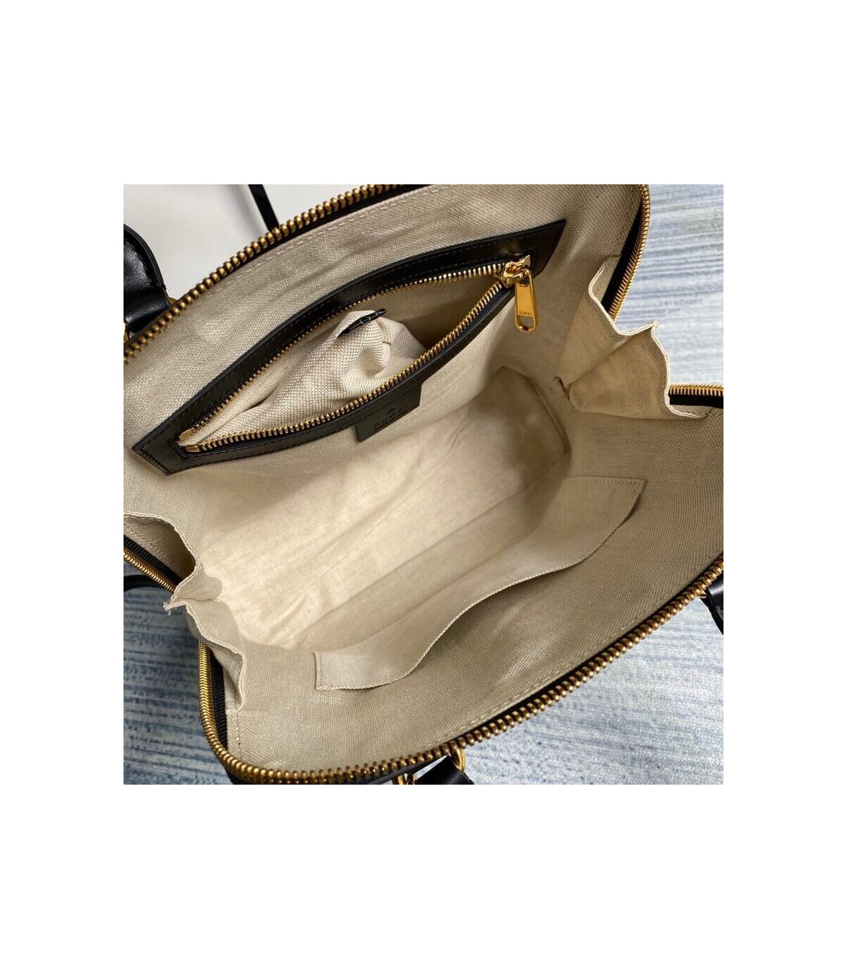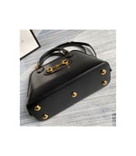 A new silhouette introduced to the Gucci Horsebit 1955 line for Spring Summer 2020, the top handle has a domed shape with an optional leather shoulder strap, crafted from black leather. The collection unifies details first introduced on the original bag that inspired the line from over six decades ago with a modern spirit, highlighting the Horsebit. Part of Gucci’s genetic code, the double ring and bar design has been established as one of the most distinctive elements among the House symbols borrowed from the equestrian world.