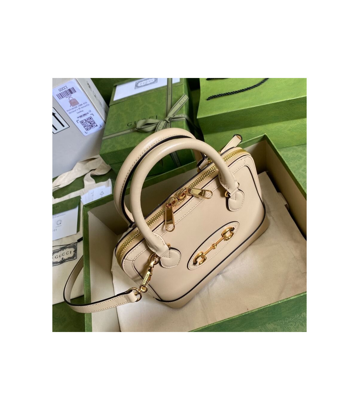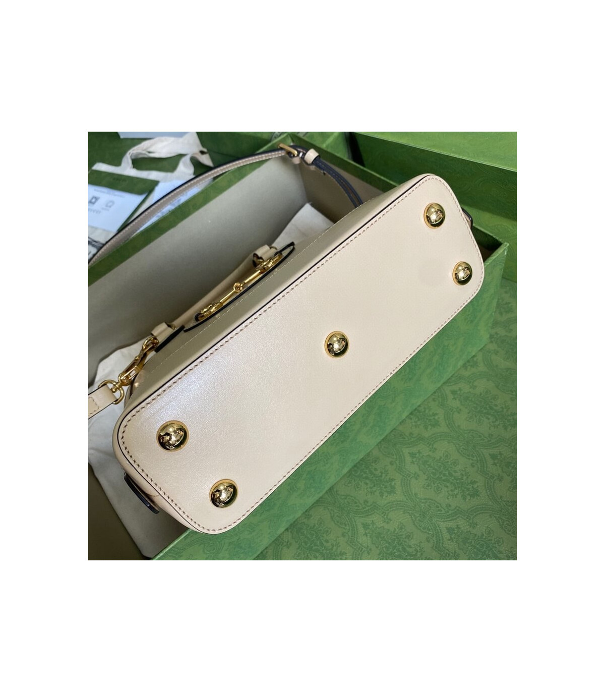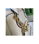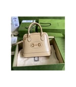 A new silhouette introduced to the Gucci Horsebit 1955 line for Spring Summer 2020, the top handle has a domed shape with an optional leather shoulder strap, crafted from black leather. The collection unifies details first introduced on the original bag that inspired the line from over six decades ago with a modern spirit, highlighting the Horsebit. Part of Gucci’s genetic code, the double ring and bar design has been established as one of the most distinctive elements among the House symbols borrowed from the equestrian world.