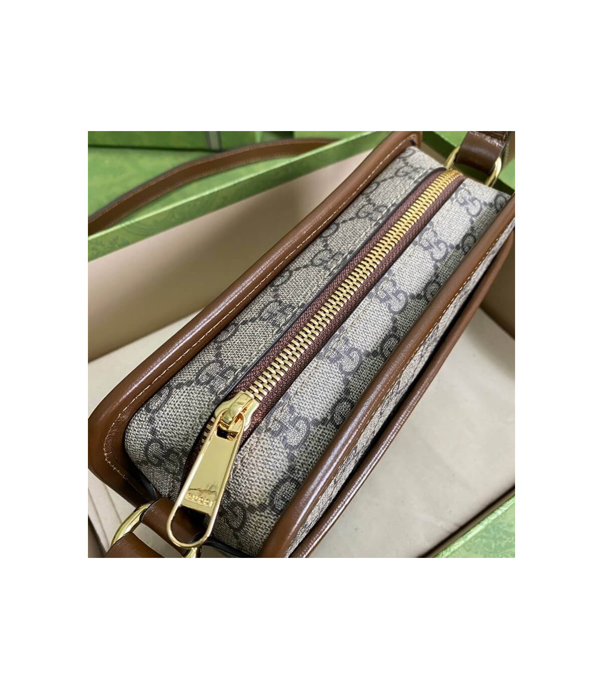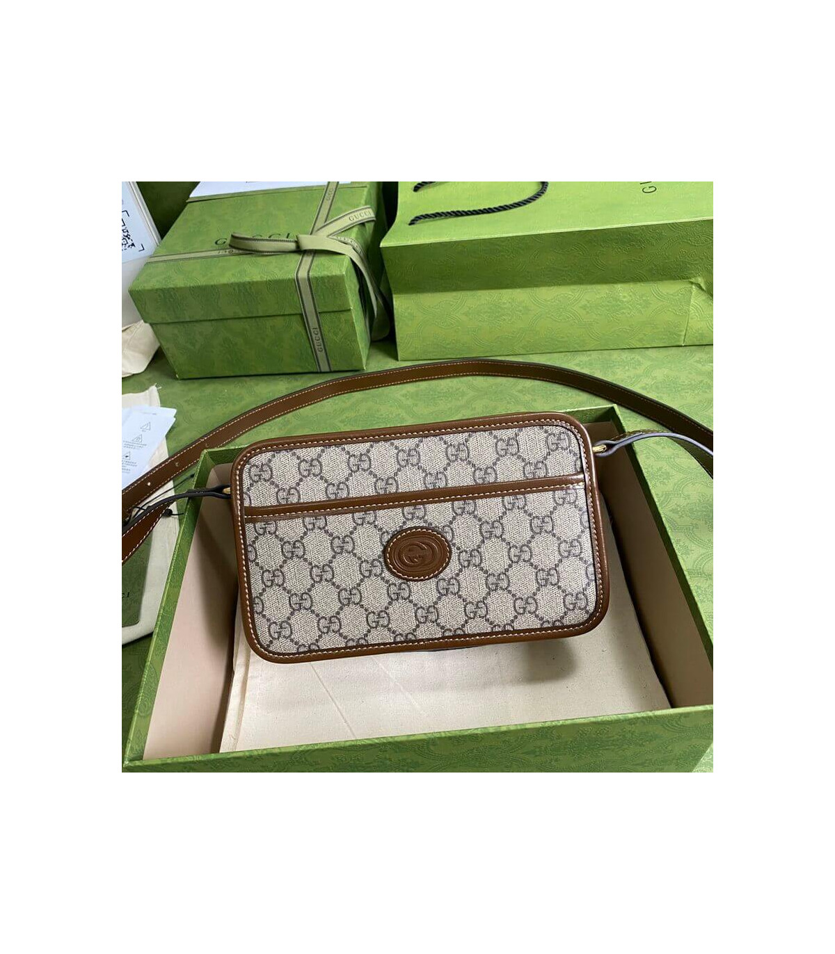 Gucci Interlocking G Mini Bag | 1:1 Rep Crafted in GG Supreme canvas with brown leather trim, this vintage-inspired mini bag features a leather Interlocking G patch and a compact silhouette with smart compartments.