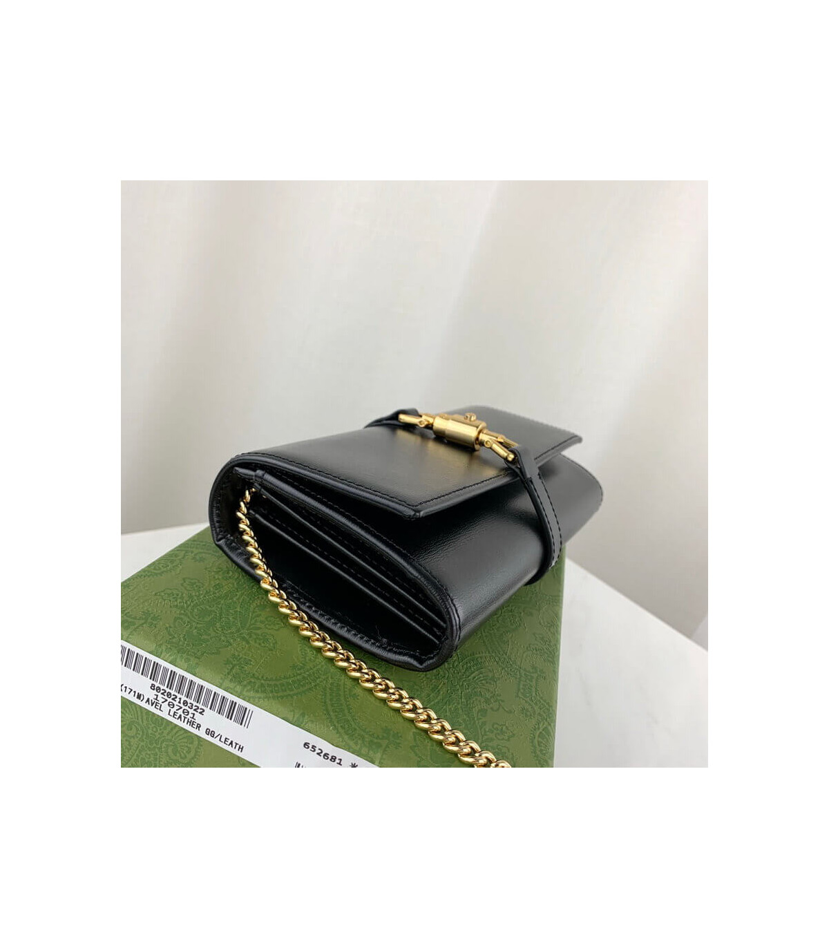 Gucci Jackie 1961 Chain Wallet �C Black Calfskin | 1:1 Rep