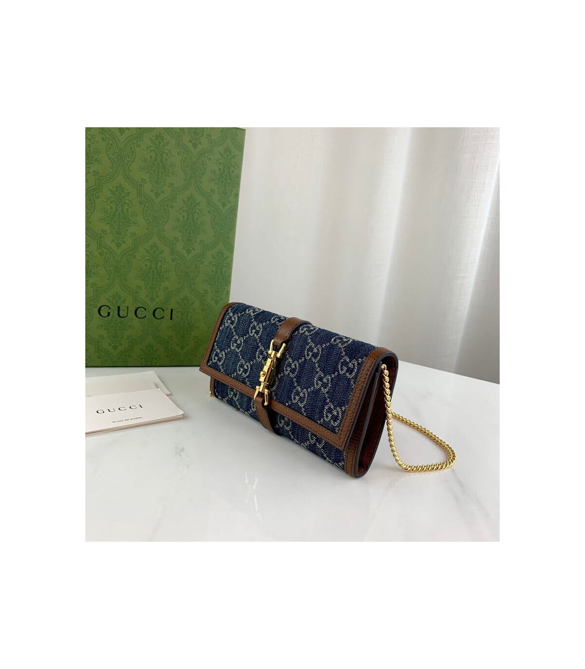 Gucci Jackie 1961 Chain Wallet �C Blue GG Denim | 1:1 Rep