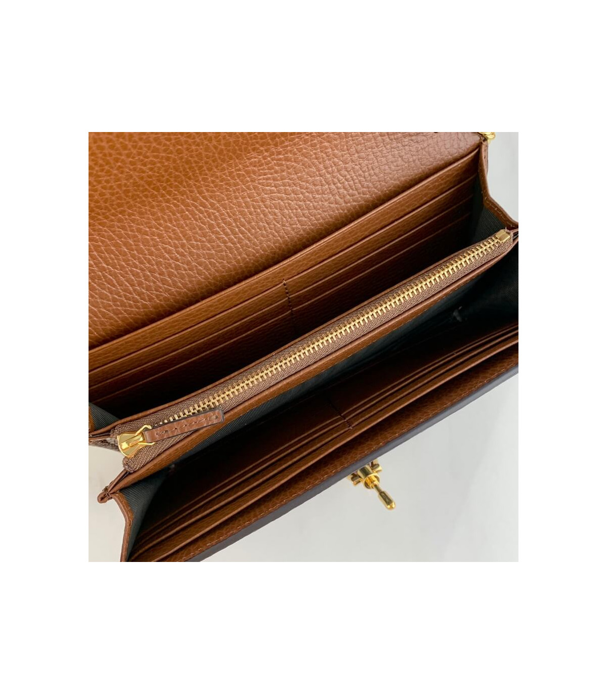 Crafted from eco-washed GG jacquard denim with brown leather trim, this Jackie 1961 chain wallet features gold-toned hardware and the iconic piston closure. Designed with a removable chain strap, it transitions easily from wallet to mini bag. Sustainably made with eco-conscious materials.