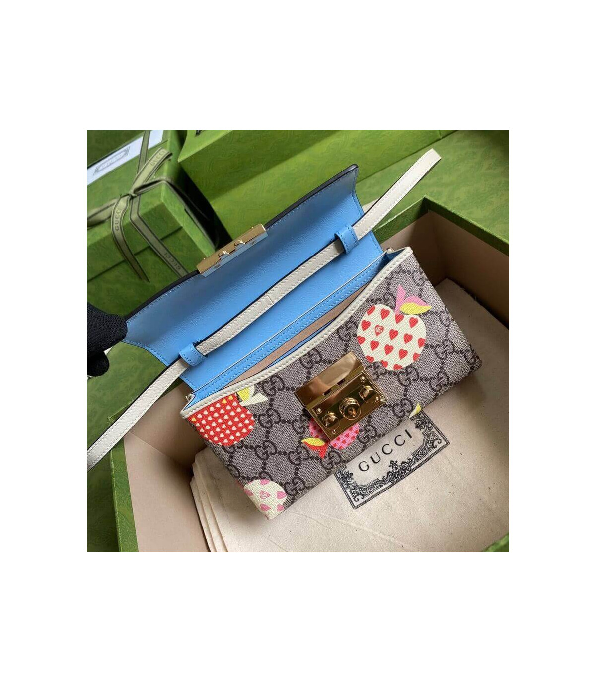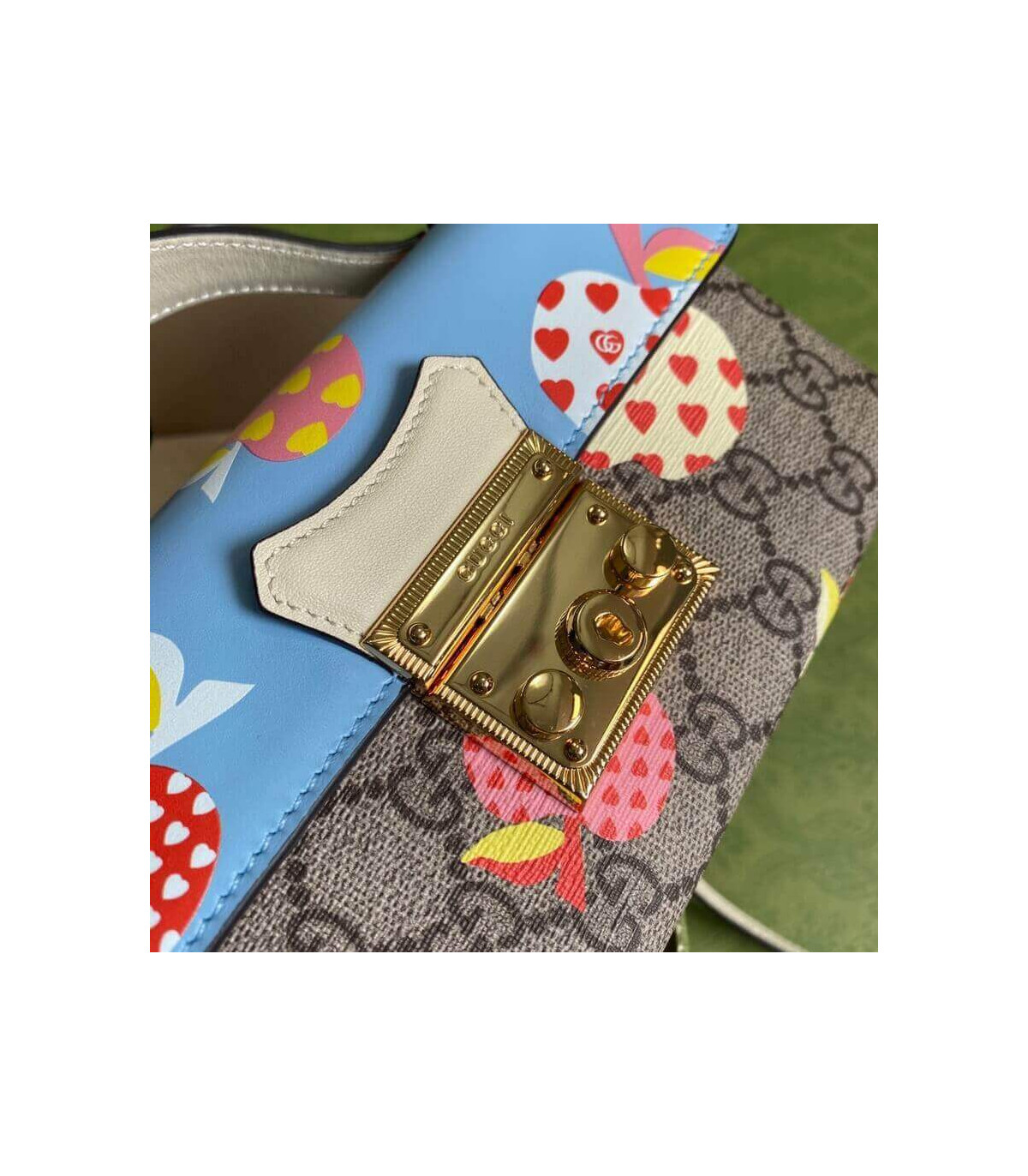 An emblem of the Gucci’s playful spirit, fruits and vegetables have become contemporary House codes that animate the latest collections. Speaking to this theme, this mini Padlock shoulder bag is defined by a whimsical apple motif.