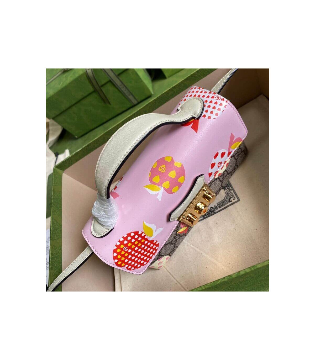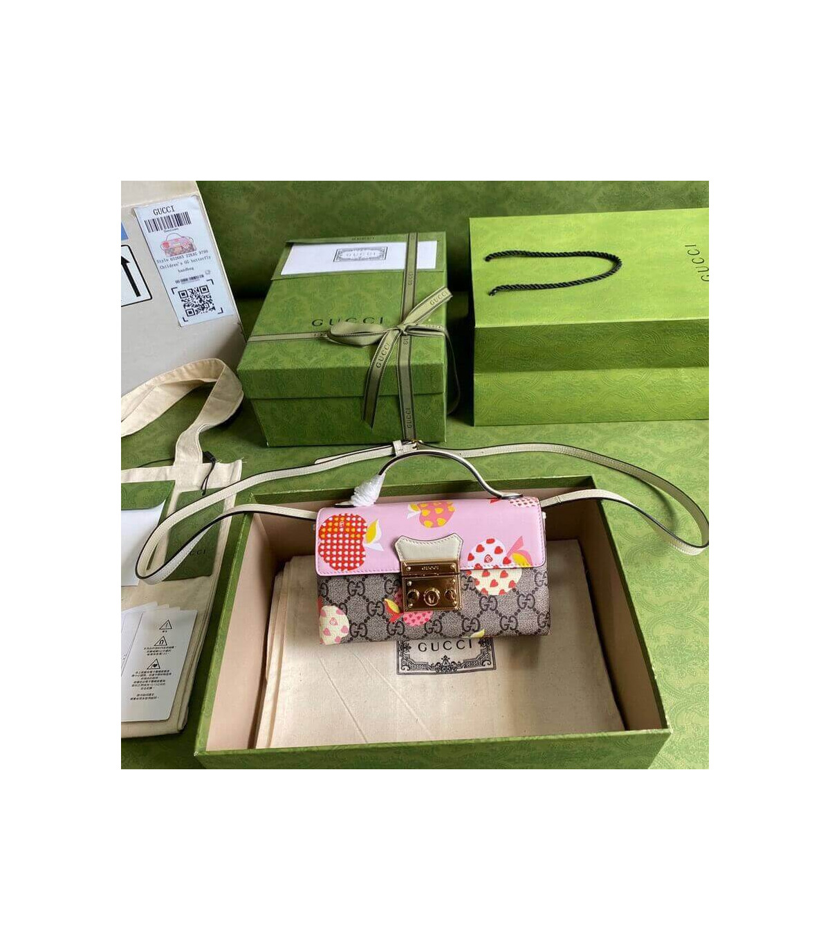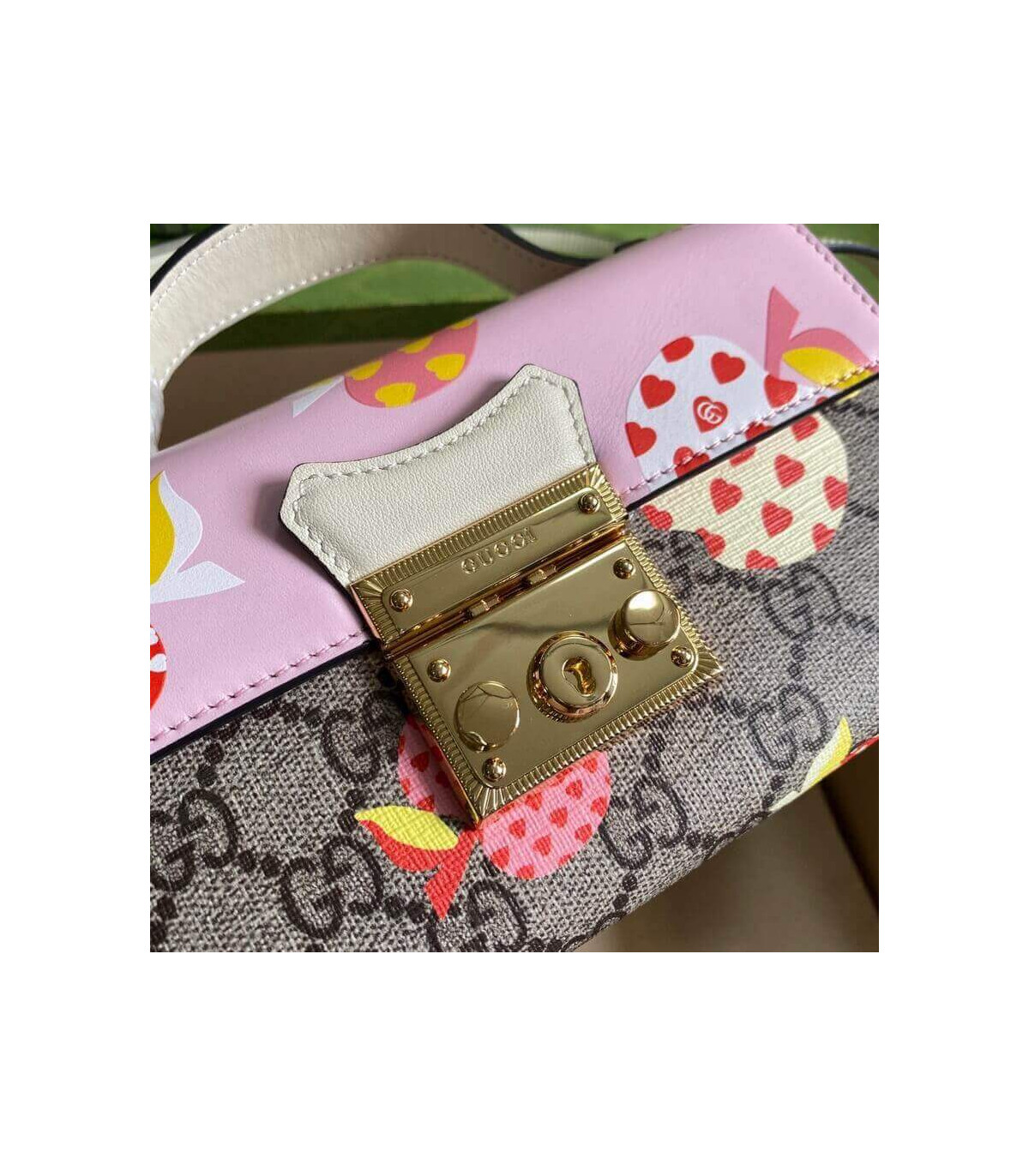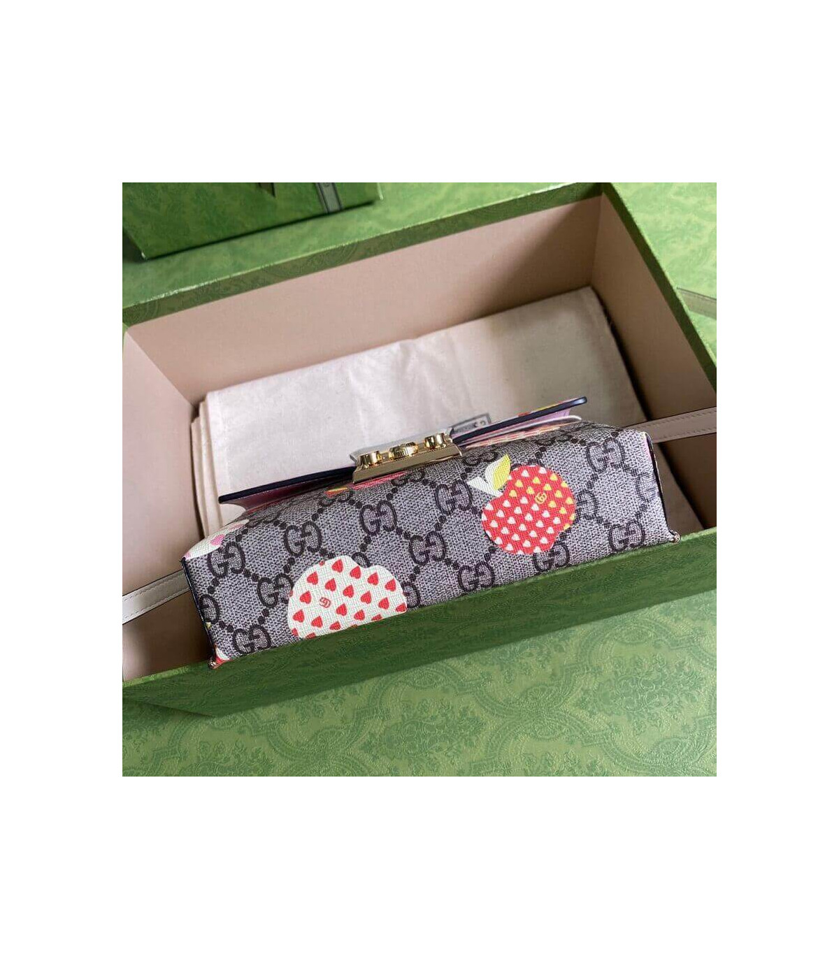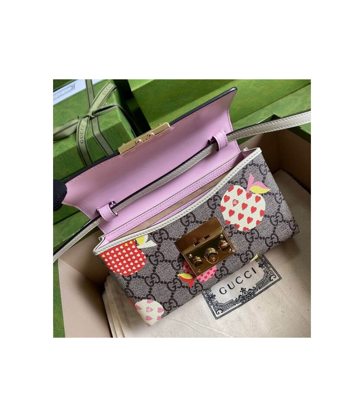 An emblem of the Gucci’s playful spirit, fruits and vegetables have become contemporary House codes that animate the latest collections. Speaking to this theme, this mini Padlock shoulder bag is defined by a whimsical apple motif.