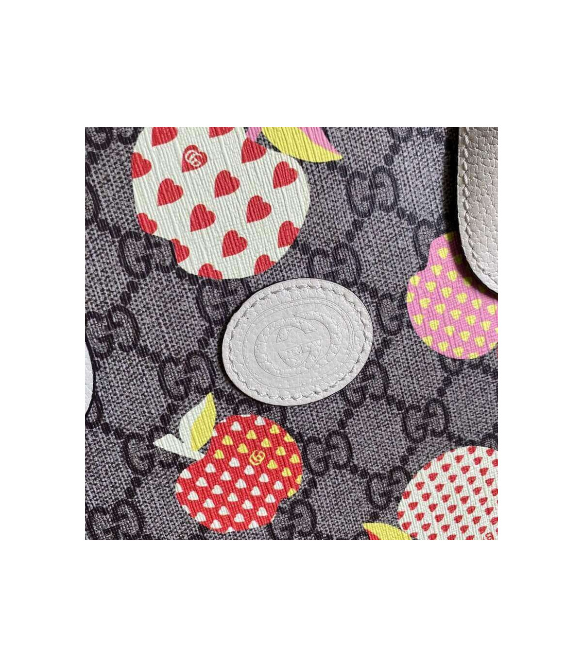 �C Beige and ebony GG Supreme canvas with apple print, a material with low environmental impact