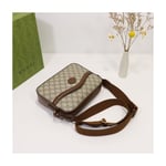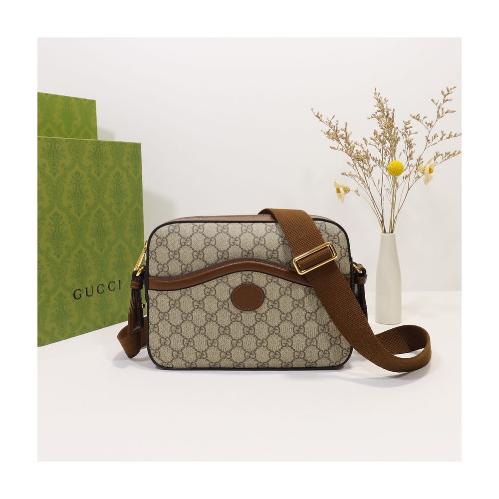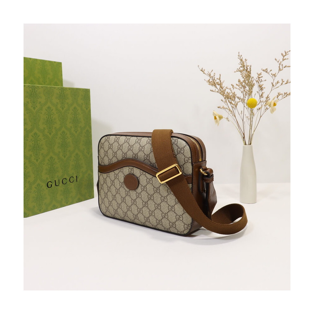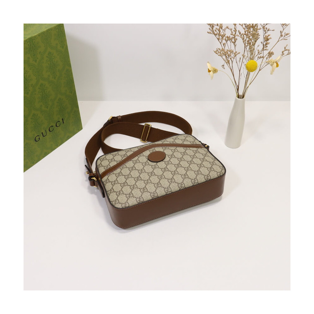 The Interlocking G has remained one of the most symbolic codes of the House since its introduction. The distinguishing emblem appears as a leather detail atop this messenger bag. Completing the design’s logo feel, the style is crafted from monogram canvas.