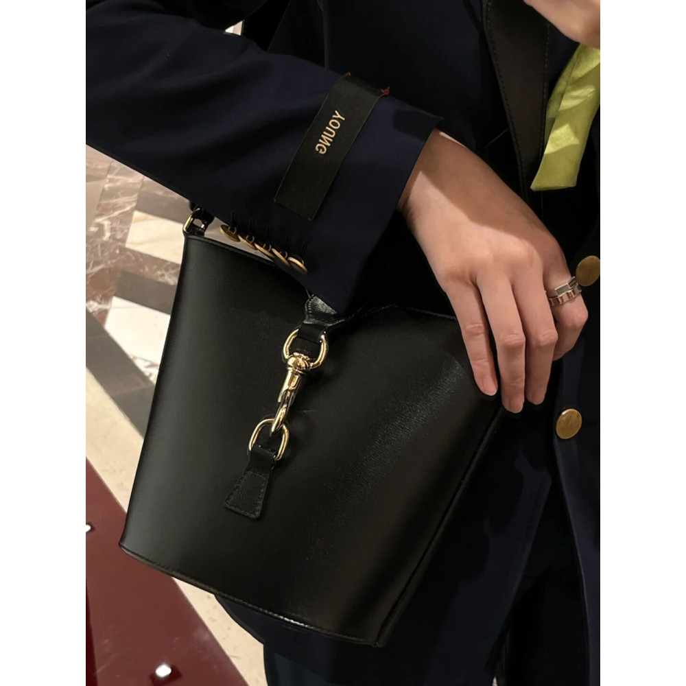 This mini bucket shoulder bag is crafted in Gucci Rosso Ancora leather, the signature red hue of the House. This accessory is a perfect blend of functionality and modernity thanks to the design with hook closure and a Web shoulder strap.