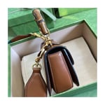 Heritage elements are reimagined with a contemporary twist throughout the Aria collection. An emblem of Gucci’s origins, bamboo has appeared throughout the House’s collections since the ’40s. After over eight decades, the material defines this mini bag in black leather. The accessory is presented with a detachable shoulder strap, adding a versatile feel.
