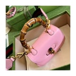 Heritage elements are reimagined with a contemporary twist throughout the Aria collection. An emblem of Gucci’s origins, bamboo has appeared throughout the House’s collections since the ’40s. After over eight decades, the material defines this mini bag in black leather. The accessory is presented with a detachable shoulder strap, adding a versatile feel.