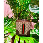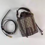 Gucci heritage meets contemporary design with the continuation of Ophidia. With its two archival details, the Web and the Double G hardware, the line takes on new shapes and dimensions in the Pre-Fall collection. This vertical men’s shoulder bag presents the two House emblems atop the classic beige and ebony GG Supreme canvas, complete with drawstring closure.