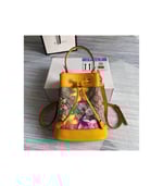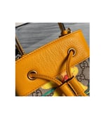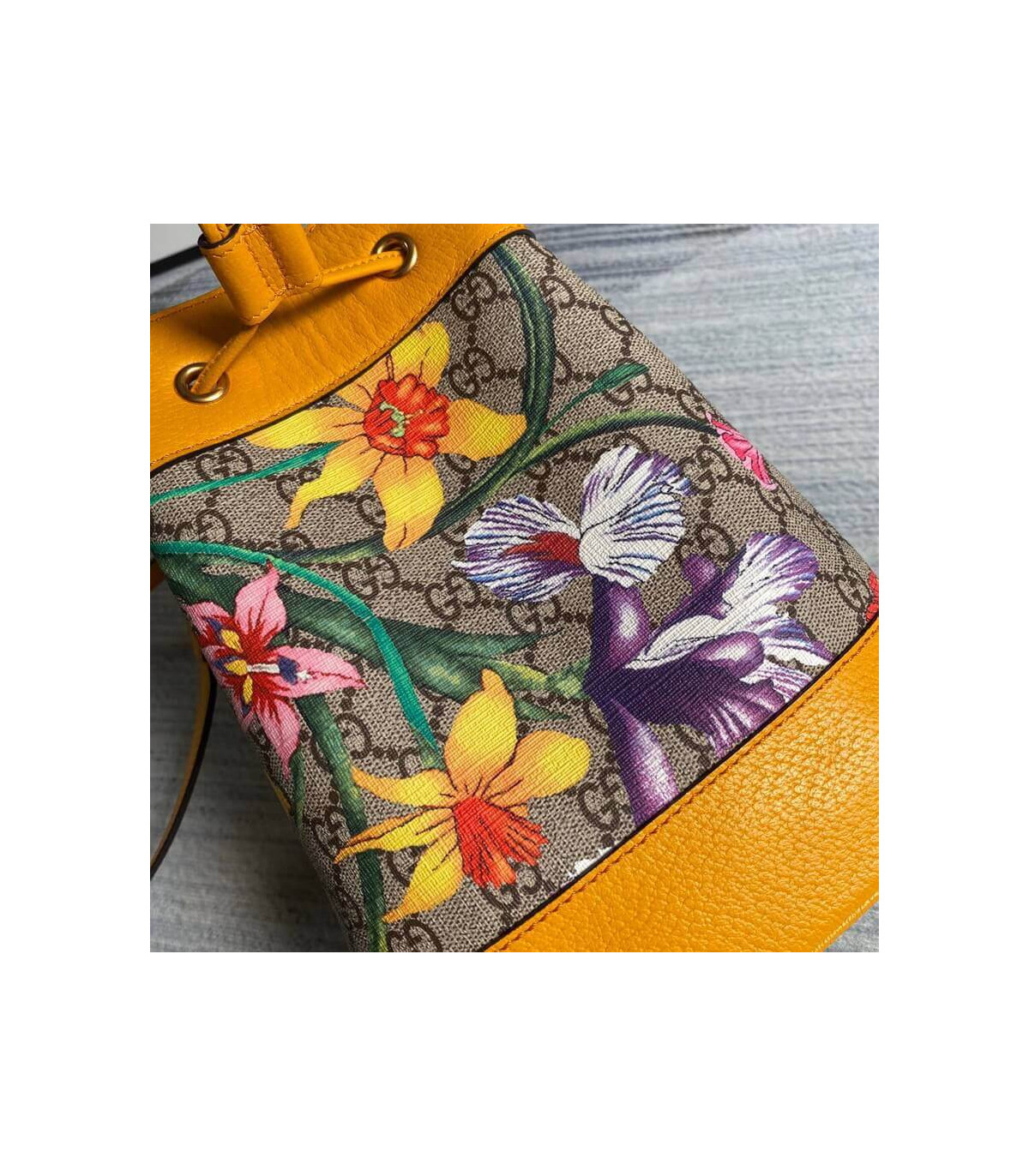 A special collection combines two of the House’s most distinctive designs into an unexpected and contemporary fabric, animating classic silhouettes like the Ophidia bucket bag. The historic Flora motif, first presented by Vittorio Accornero more than 50 years ago, is layered over the House monogram and trimmed with bright green leather―a modern take on the two archival patterns available exclusively online.