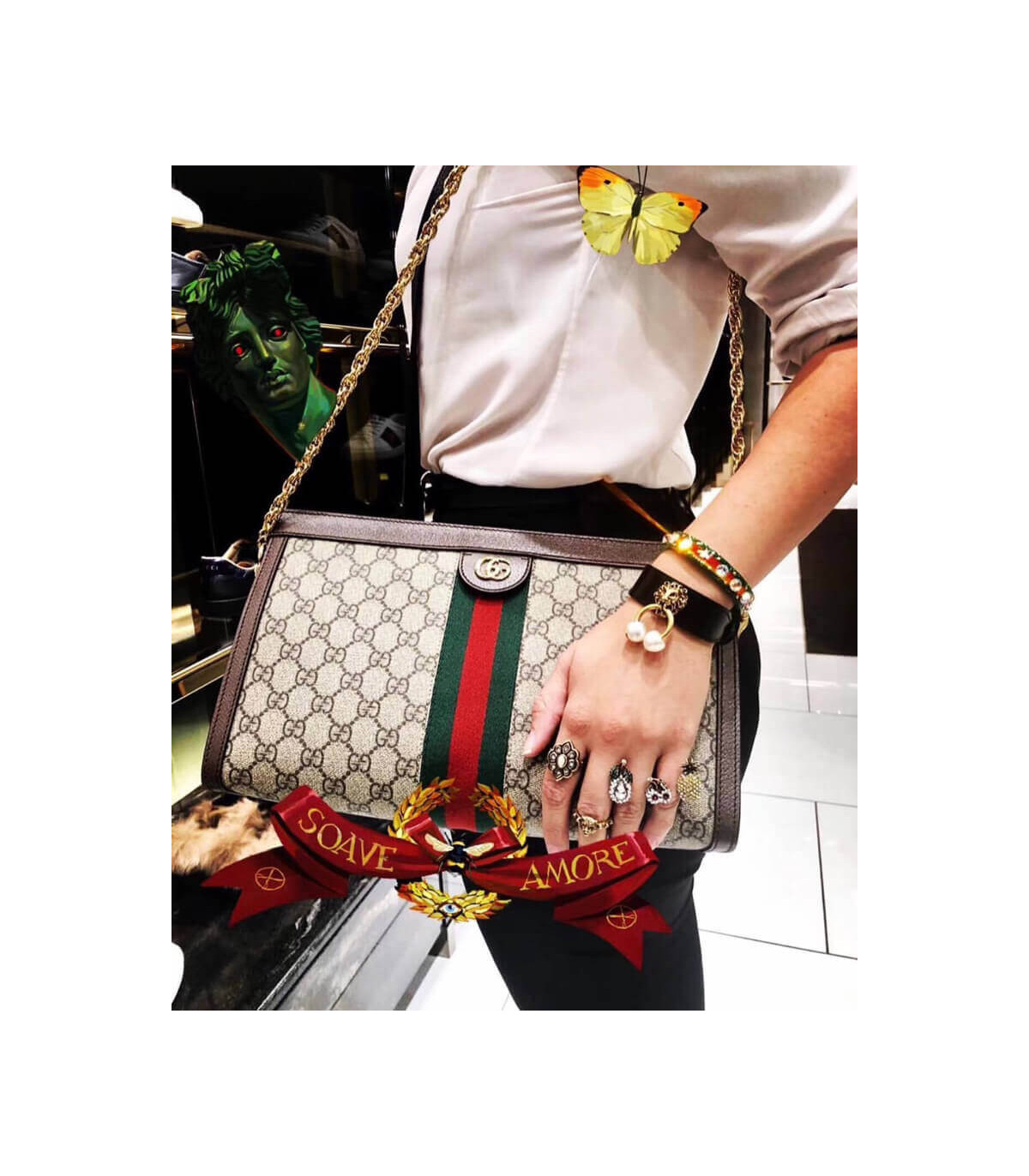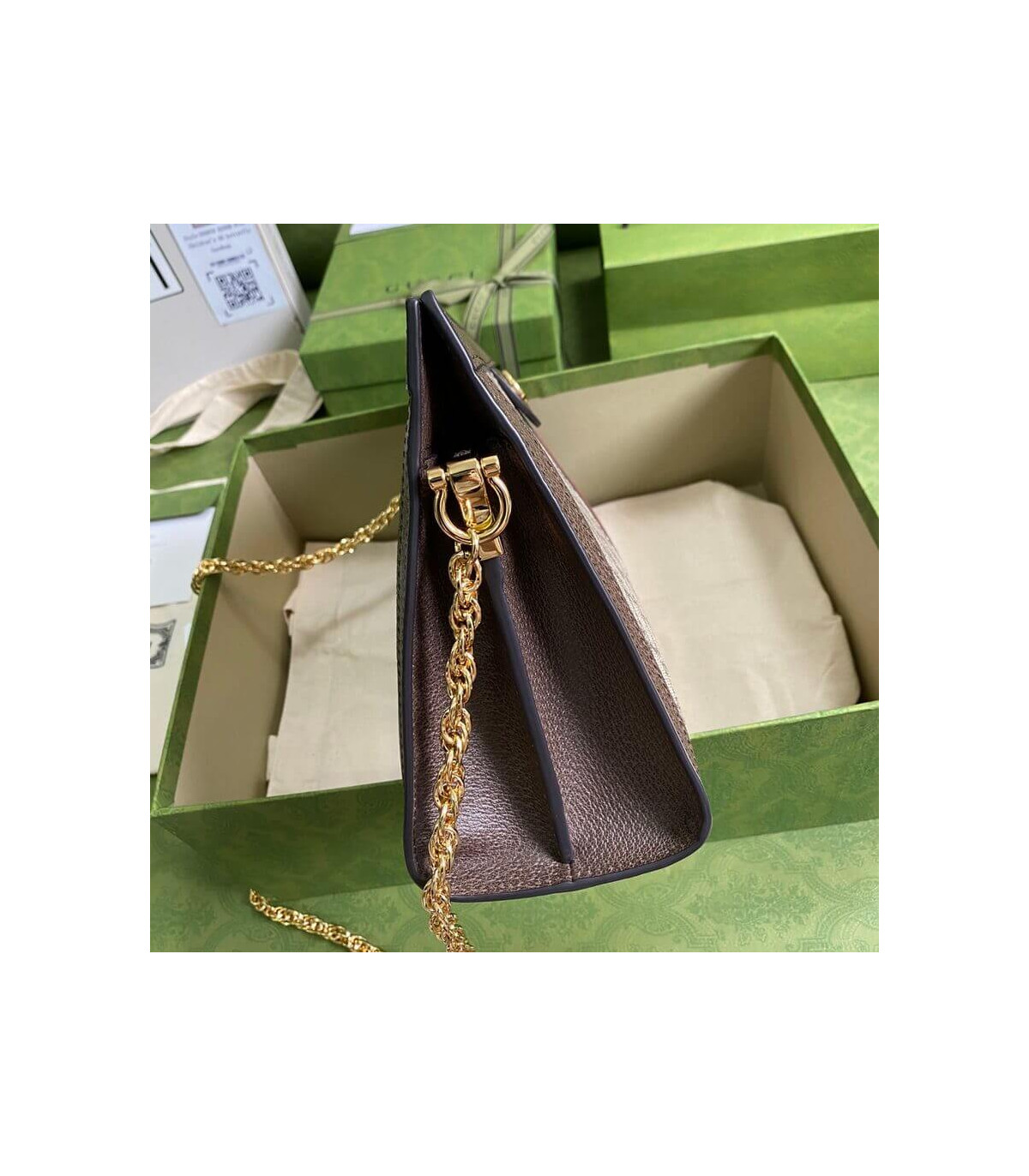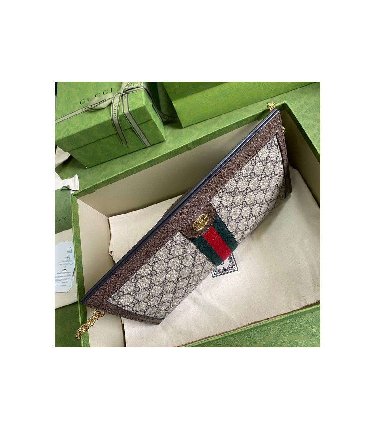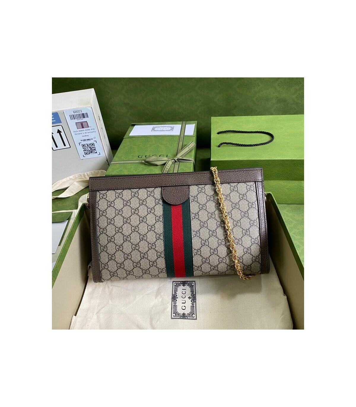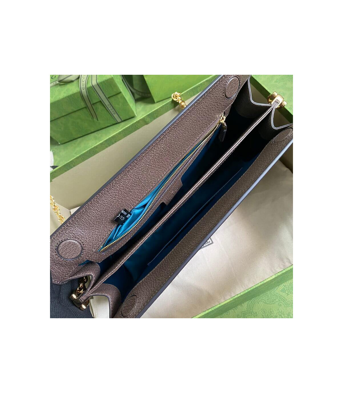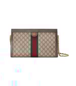 Crafted in GG Supreme canvas with inlaid Web stripe detail, the chain strap shoulder bag boasts a vintage inspired design. The structured shape secures with a magnetic closure, trimmed with leather and Double G hardware―an archival detail.
