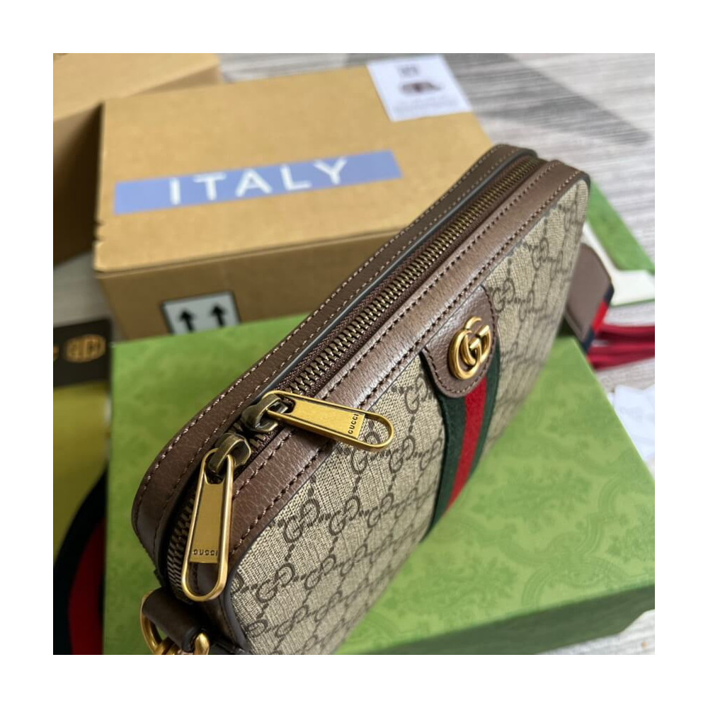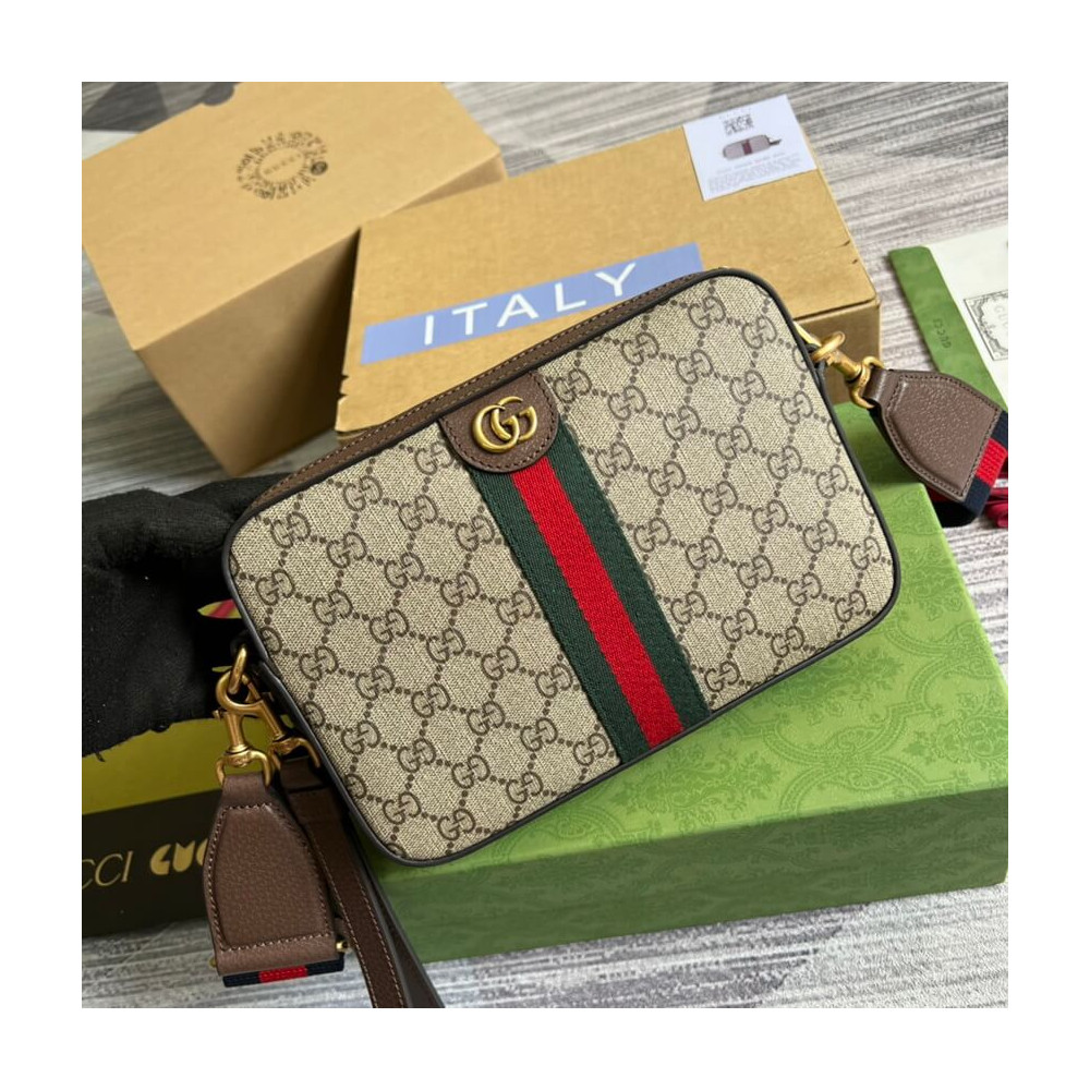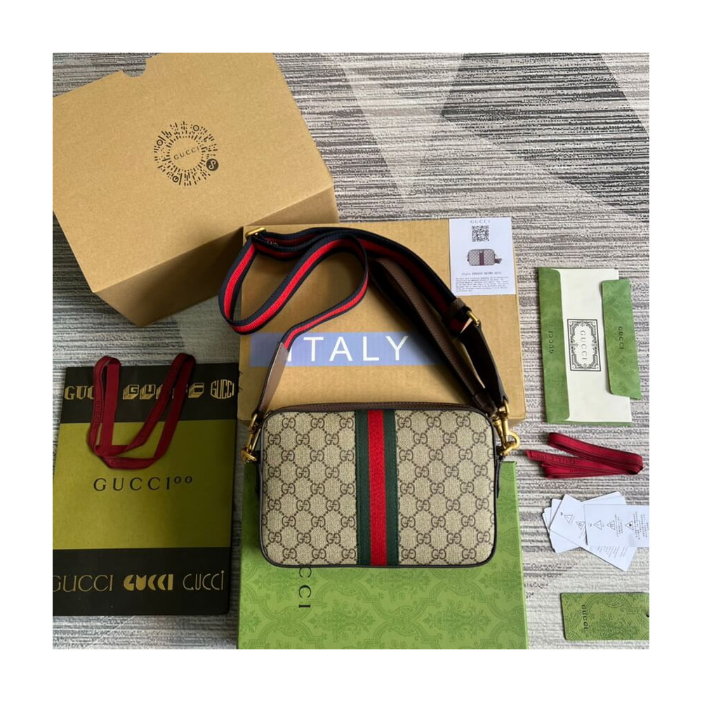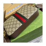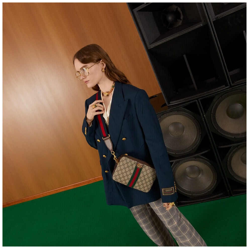An everlasting design, this Ophidia shoulder bag is presented in the traditional beige and ebony GG Supreme canvas, inspired by an archival design from the 1930s. The emblematic Double G hardware and signature green and red Web stripe enrich this timeless piece with historical references.
