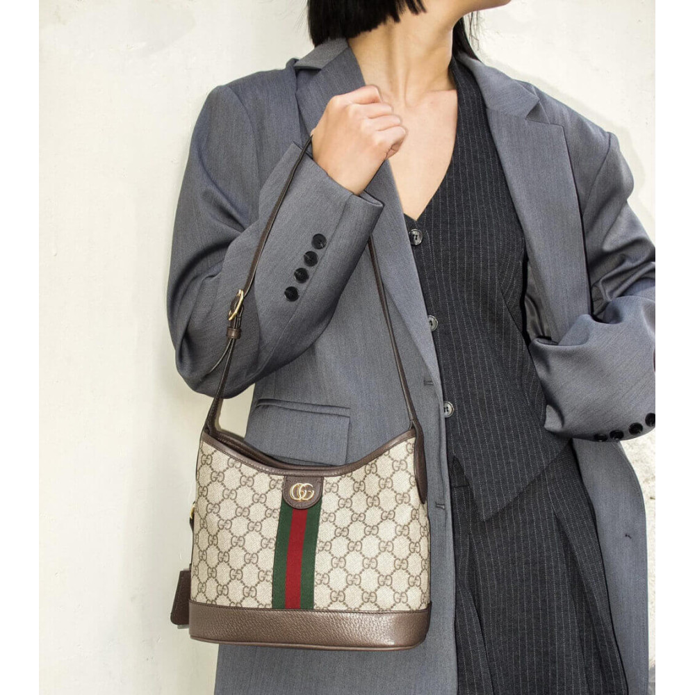 The Ophidia is reinvented in new and unexpected ways in this small-sized piece which blends the open bucket design and shoulder bag style. It is crafted in the House’s signature GG Supreme canvas in the iconic color combination of beige and ebony.