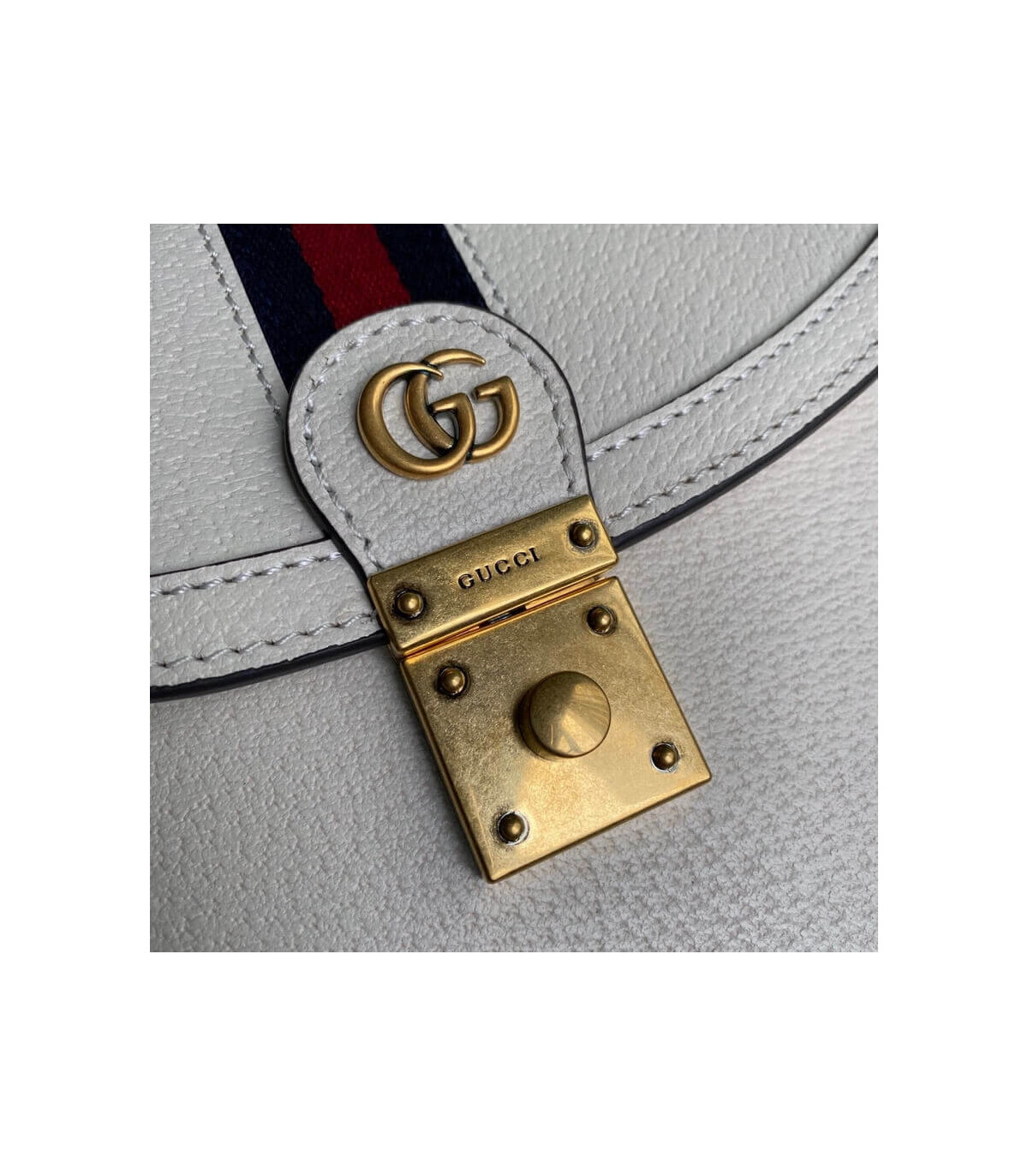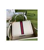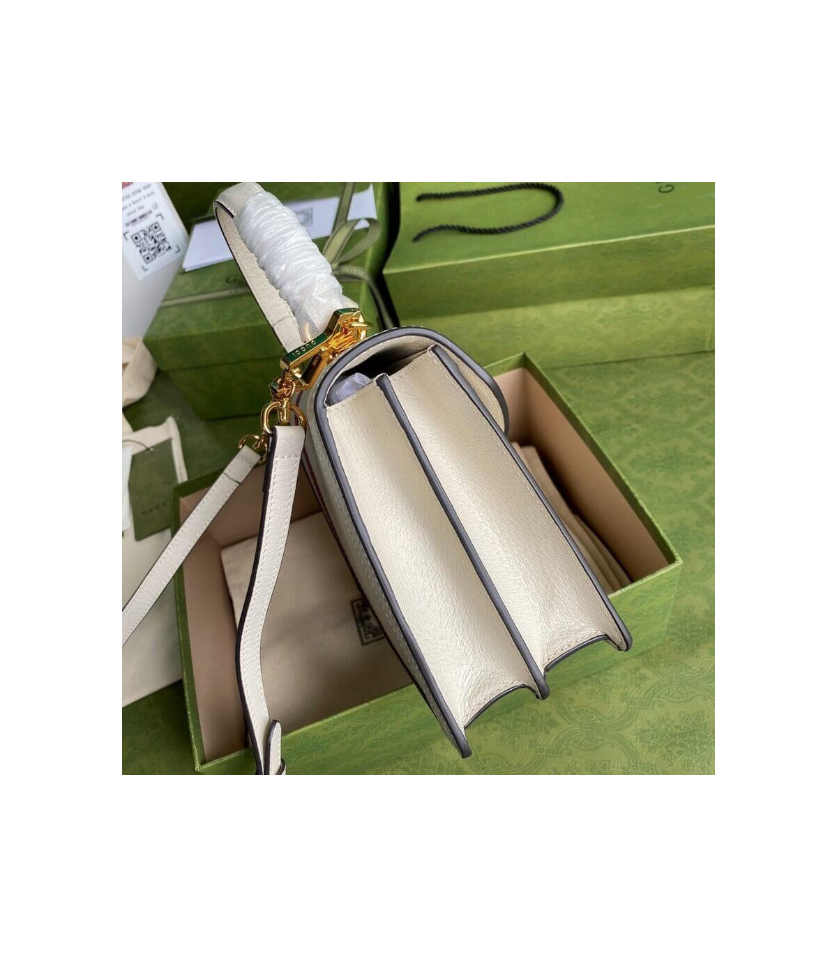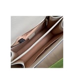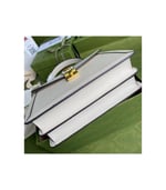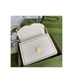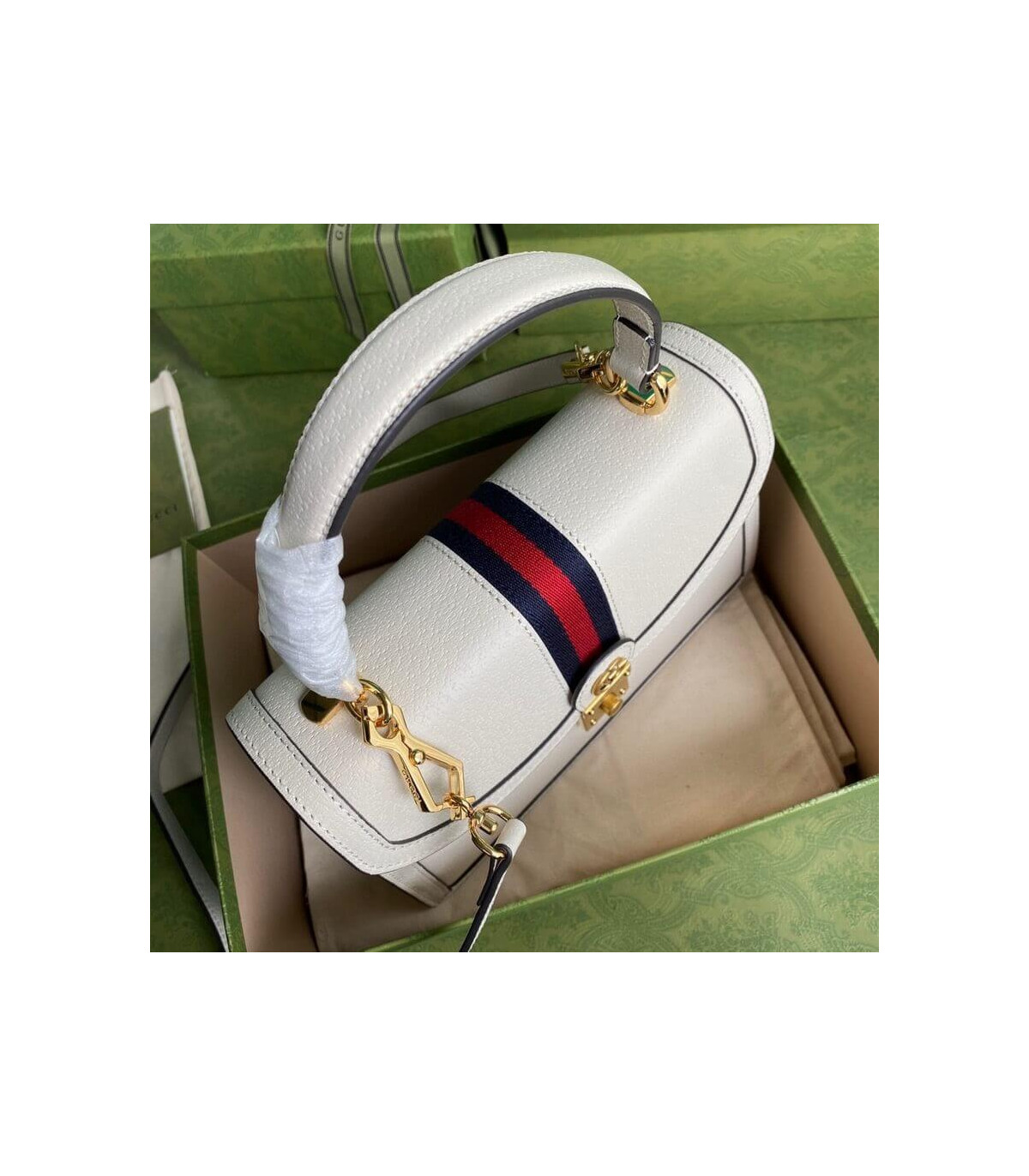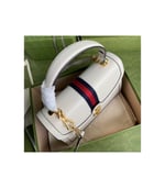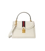 The world of Ophidia continues to evolve with new iterations each season. The top handle bag is presented as part of the Epilogue collection in black leather with a detachable shoulder strap. The vintage influenced square shape is accentuated by the House Web stripe and Double G hardware―a contemporary take on a Gucci archival belt buckle from the ’70s.