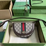 Gucci heritage meets contemporary design with the continuation of Ophidia. With its two archival details, the Web and the Double G hardware, the line takes on new shapes and dimensions in the Pre-Fall collection. This mini shoulder bag appears in the classic beige and ebony GG Supreme.
