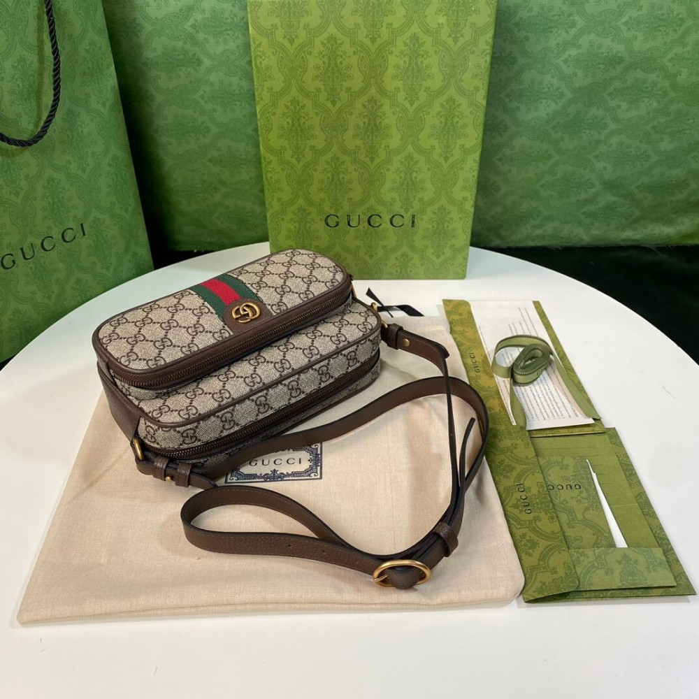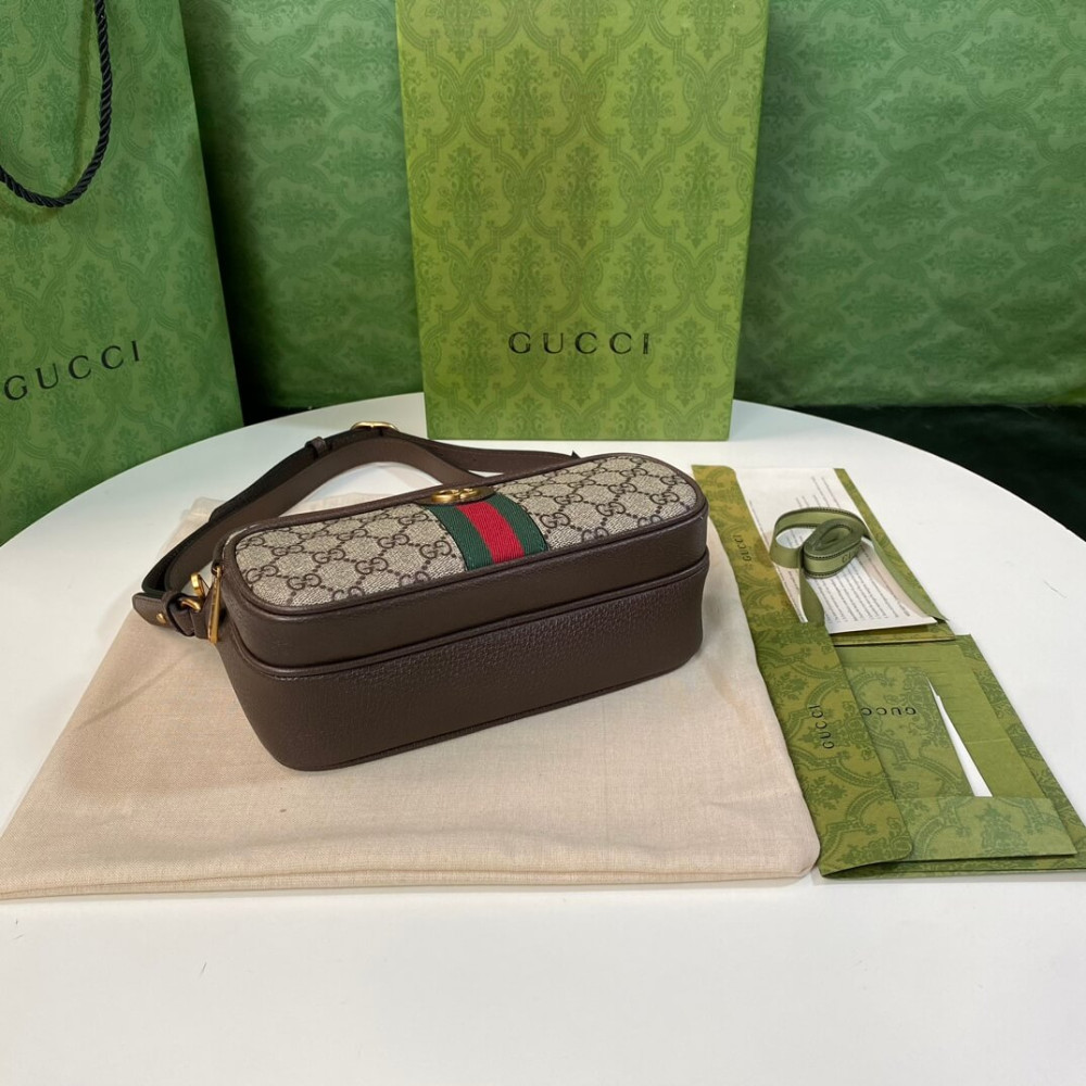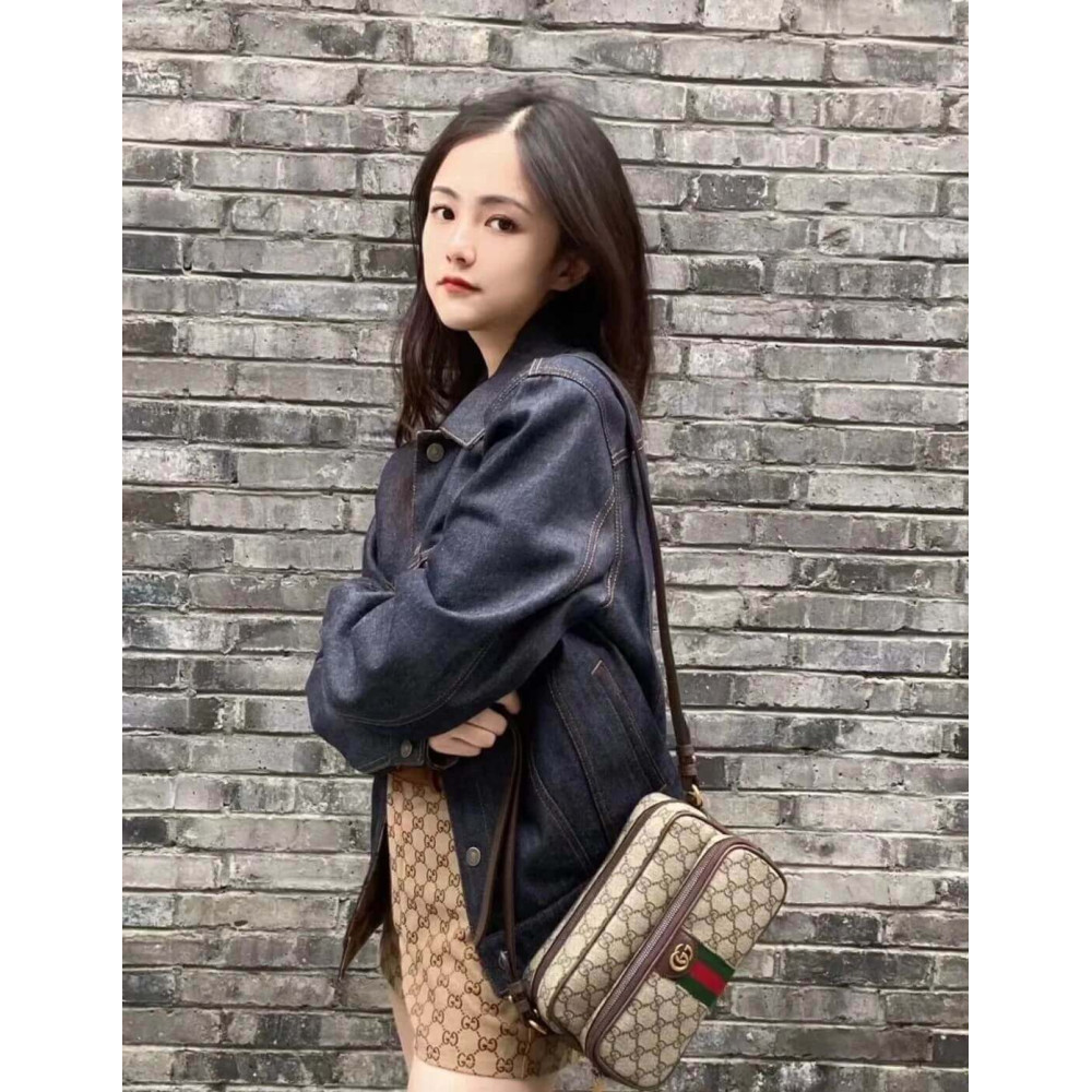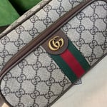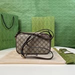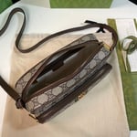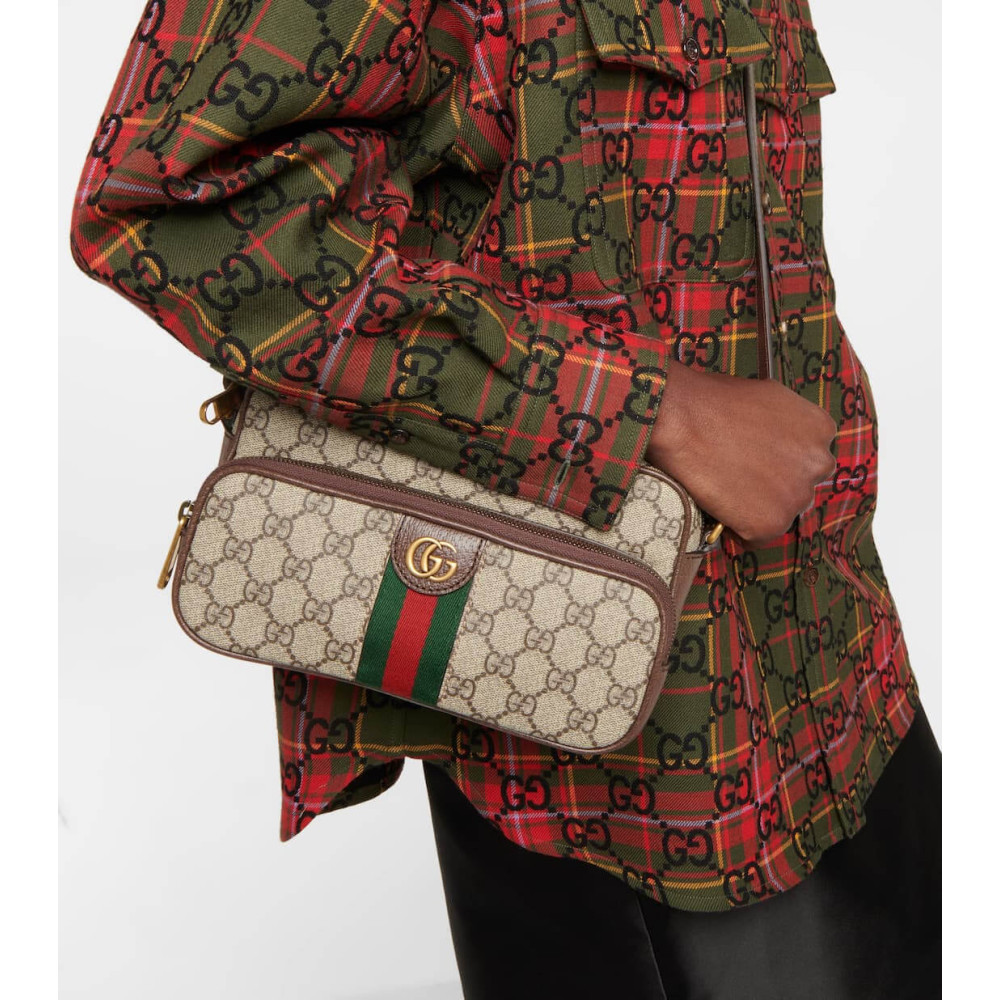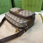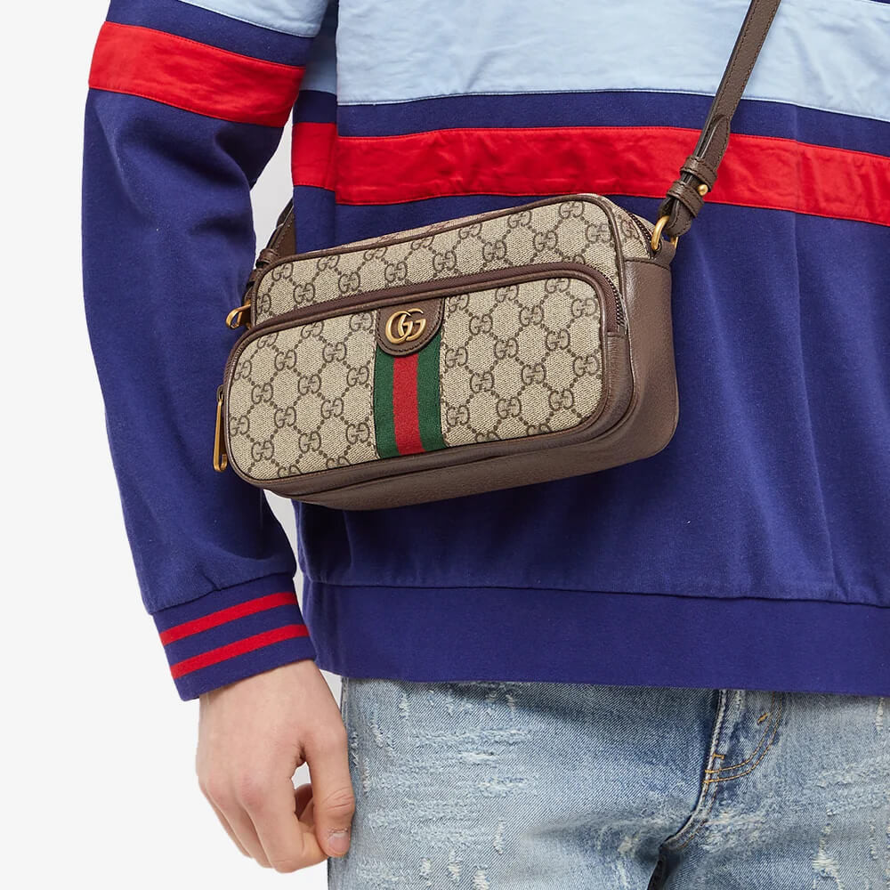 The GG Supreme canvas has come to the front of each collection decade after decade, becoming a hallmark of the House. Here a beige and ebony variation defines this small Ophidia messenger bag, adding a contemporary feel to a classic travel piece.