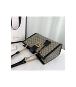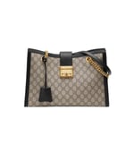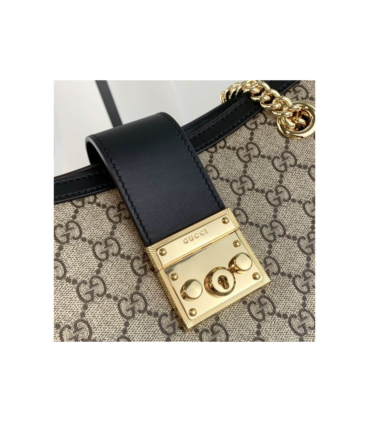 A structured shoulder bag in GG Supreme canvas with a strap that secures with a key lock closure pulled straight from the archives. The key is placed in a detachable leather key case.