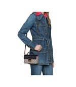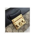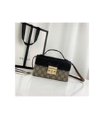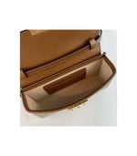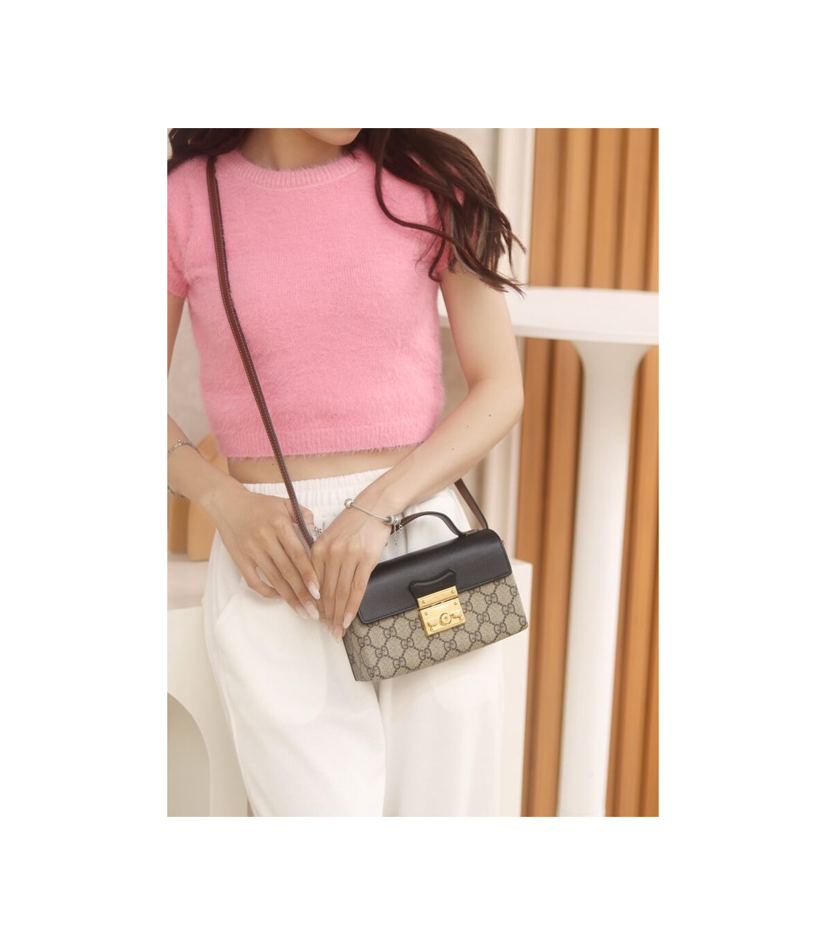 The Padlock is introduced as a mini bag in a mix of leather and canvas in different colors. Defined by its emblematic lock closure, the style is crafted from the House’s monogram canvas and accentuated by a black leather top. Adding to the styles contrasting elements, is a brown leather shoulder strap and handle. Playing with different materials and shades, the House’s designs have a hybrid feel.