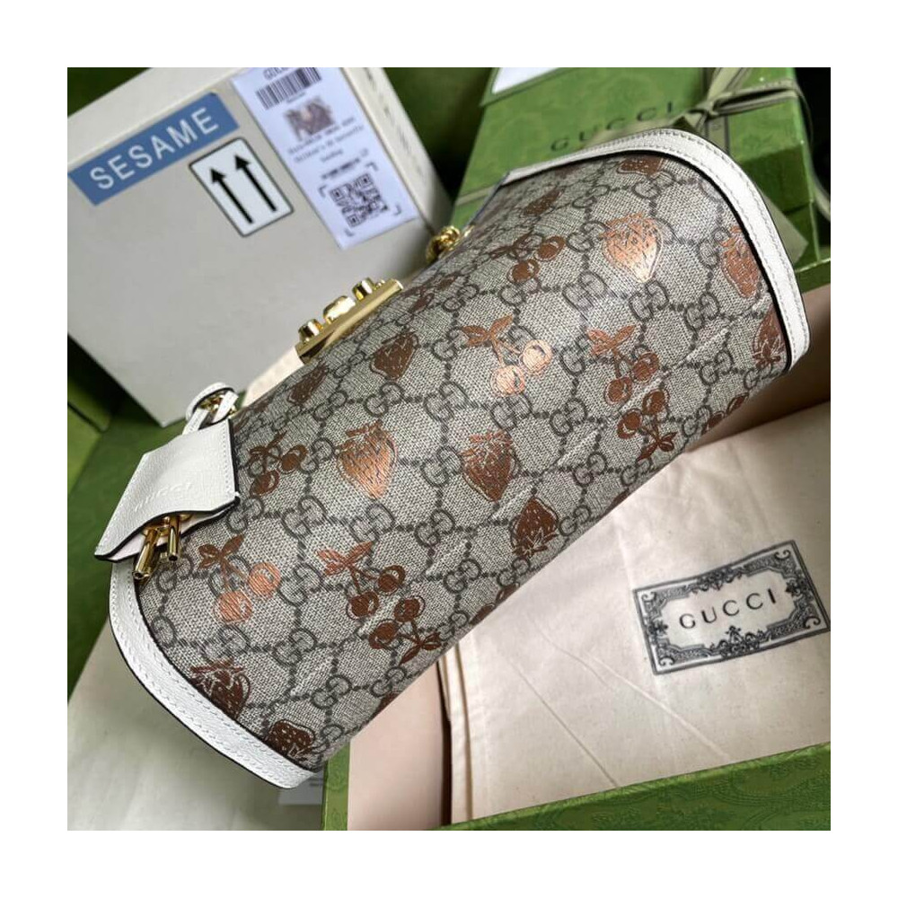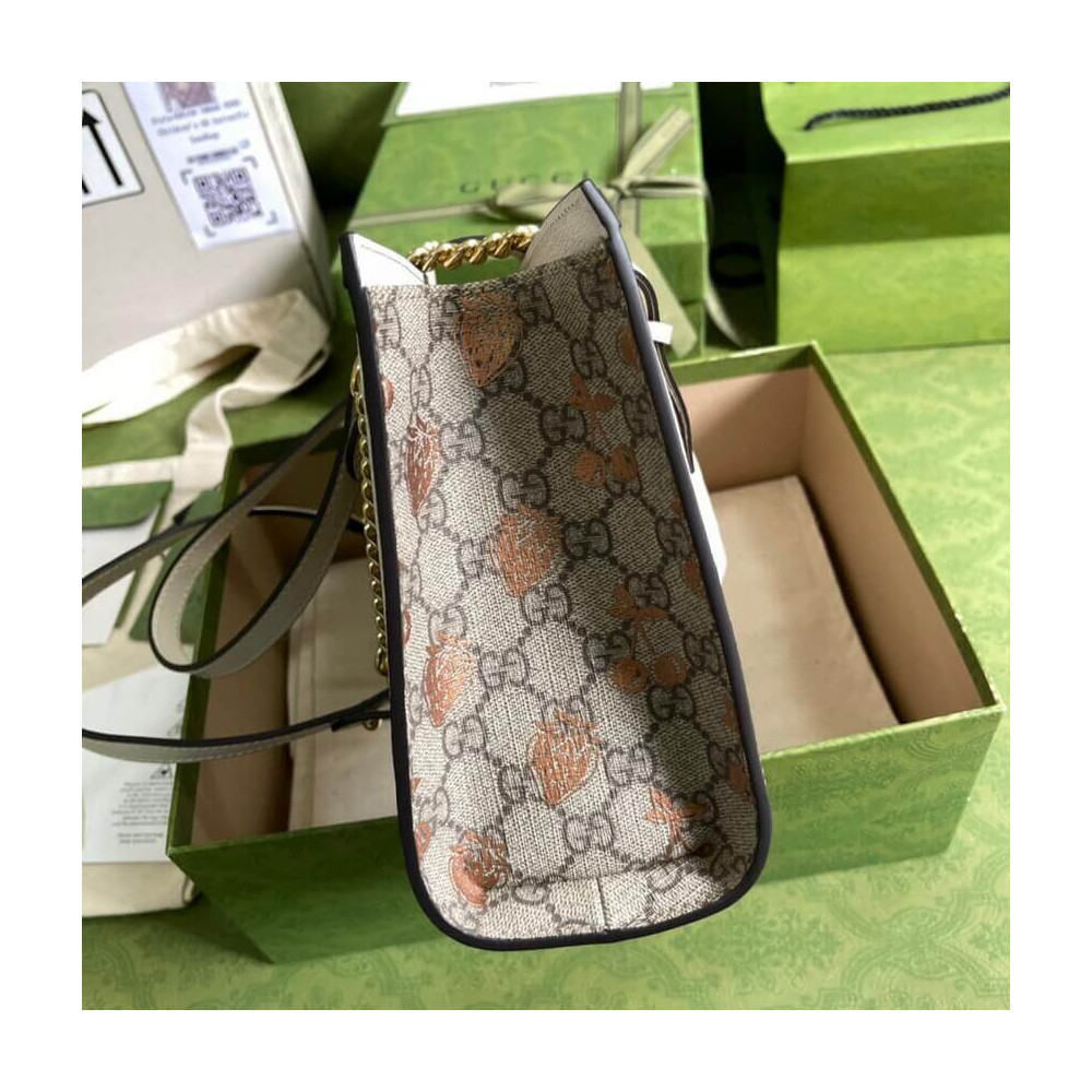 �C Beige and ebony GG Supreme canvas with metallic cherry and strawberry print, a material with low environmental impact
