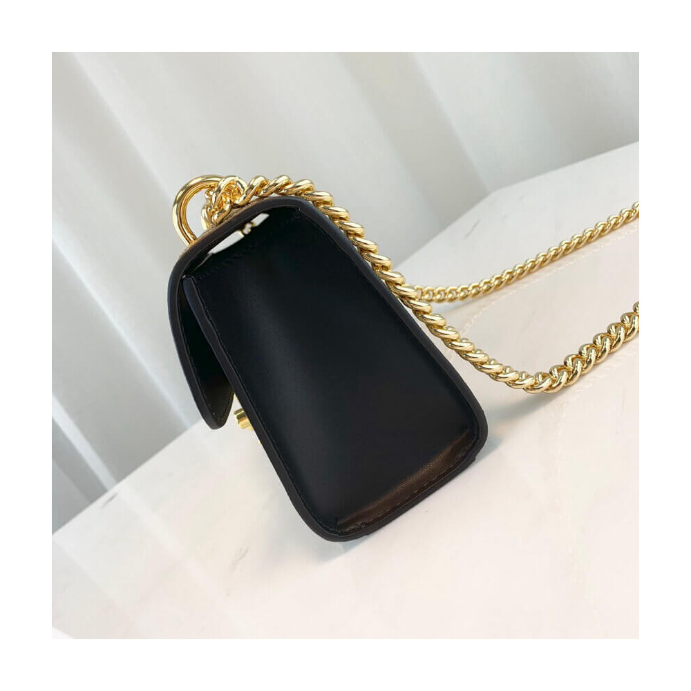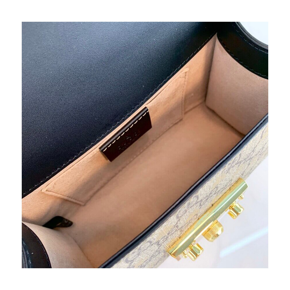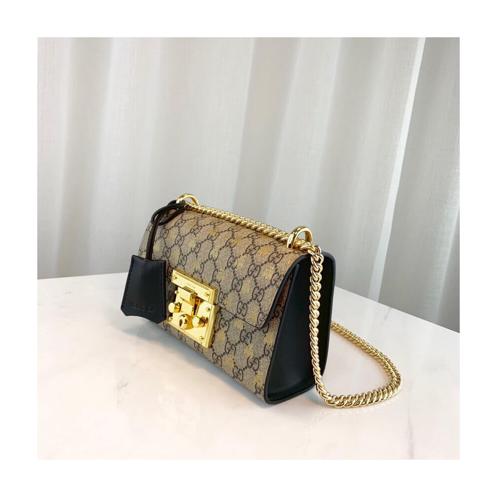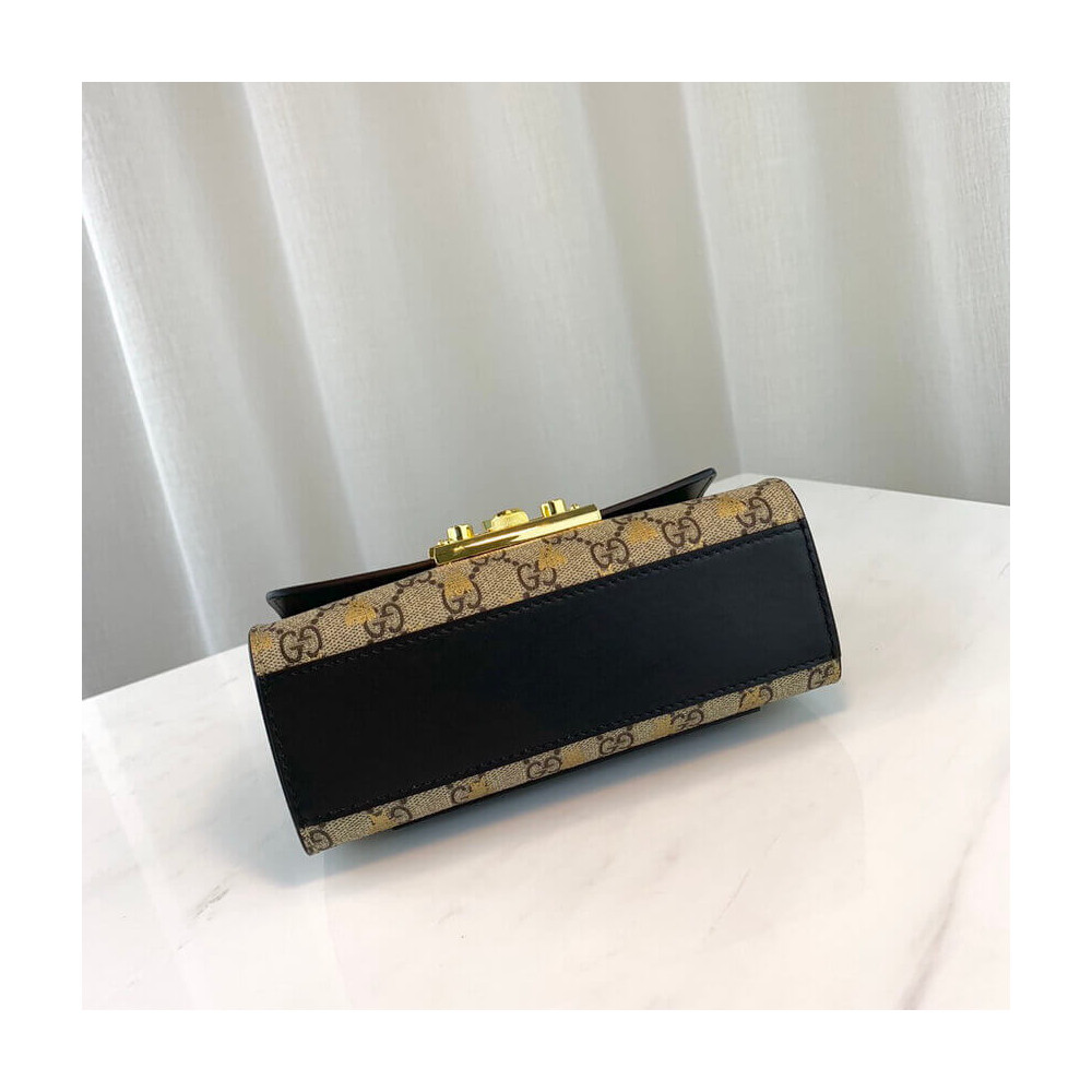 A small structured shoulder bag with a key lock closure pulled from the archives, the key is placed in a leather key case that loops around the chain. The sliding chain strap can be worn multiple ways, changing between a shoulder and a top handle bag. Made in GG Supreme canvas enriched with allover gold printed bees―a historical symbol from the House archives, first introduced in the 1970s.