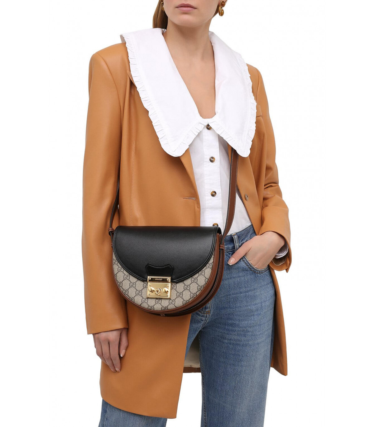 The Padlock family is enriched with the introduction of a crescent shaped shoulder bag. Crafted from the House’s monogram canvas, the style is offset by contrasting leather details and completed by the line’s signature lock closure.