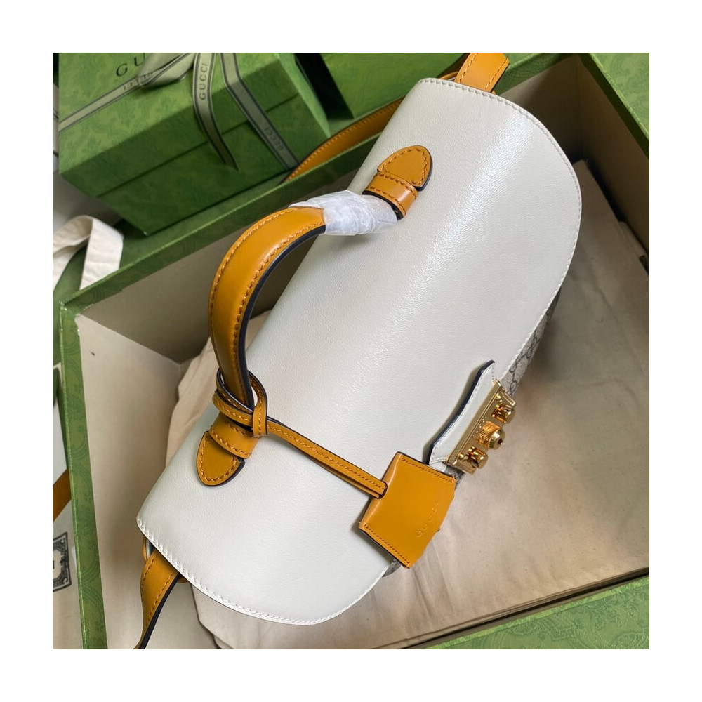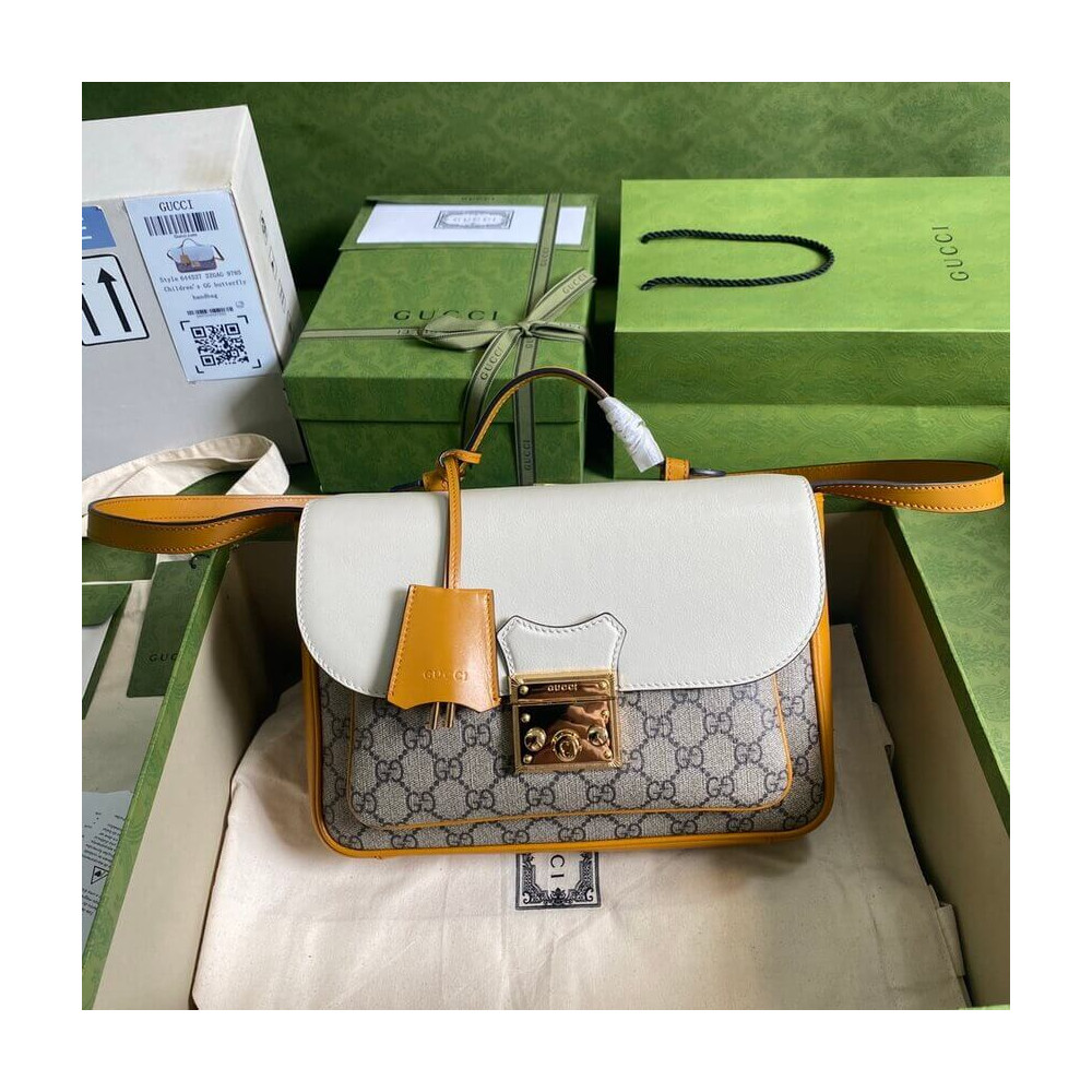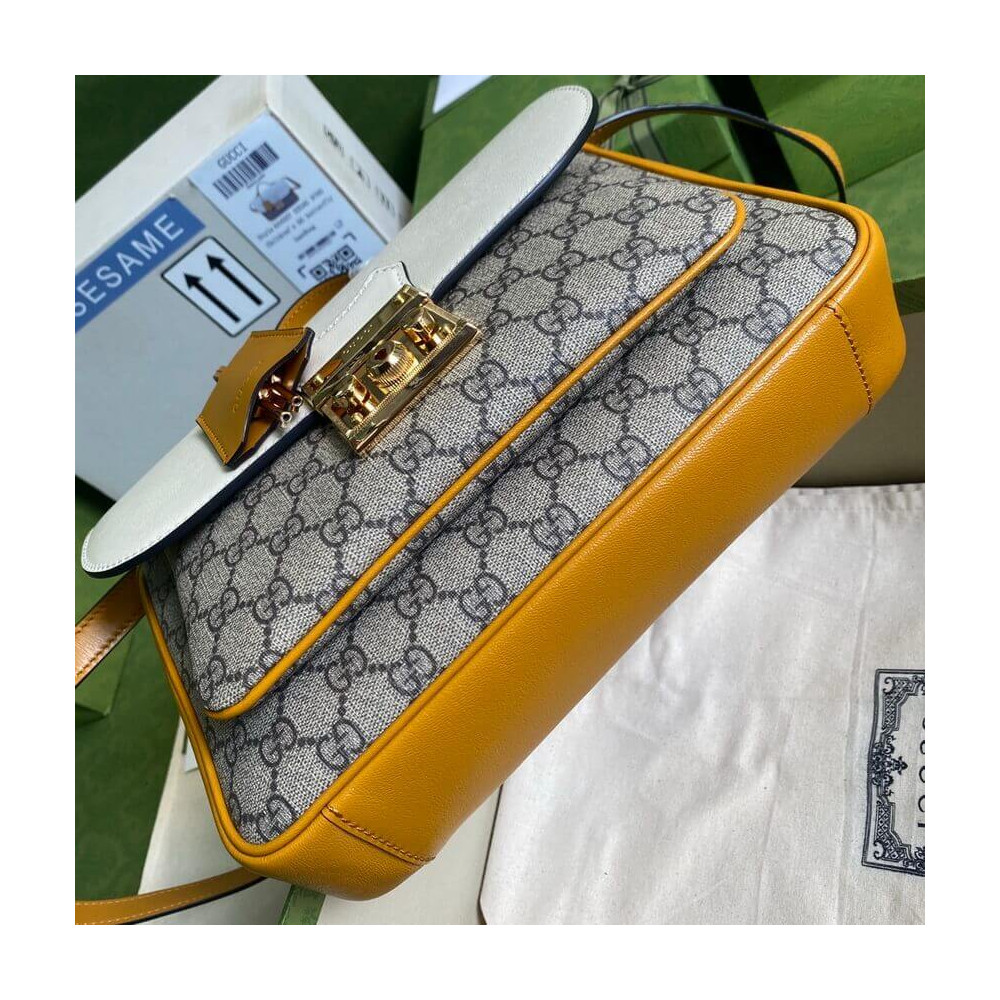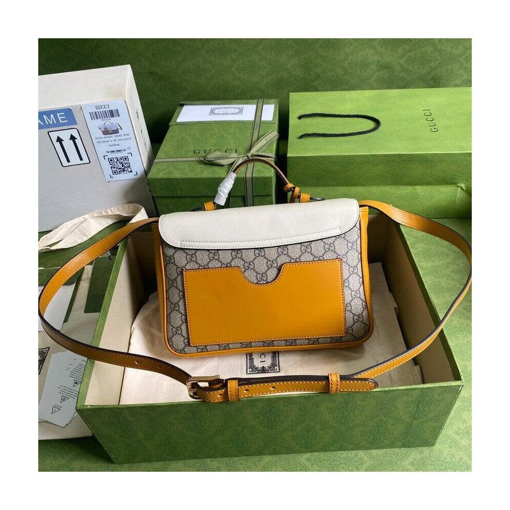 A small structured chain shoulder bag with a key lock closure pulled straight from the archives, the key is placed in a leather key case. A heritage material, the GG Supreme canvas deepens the accessory’s connection to the House’s history. Smooth leather details complete the style.