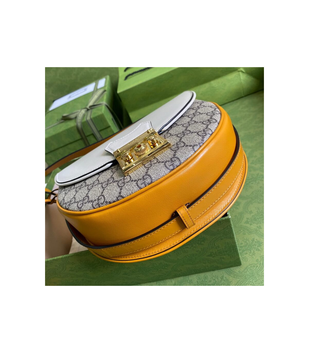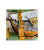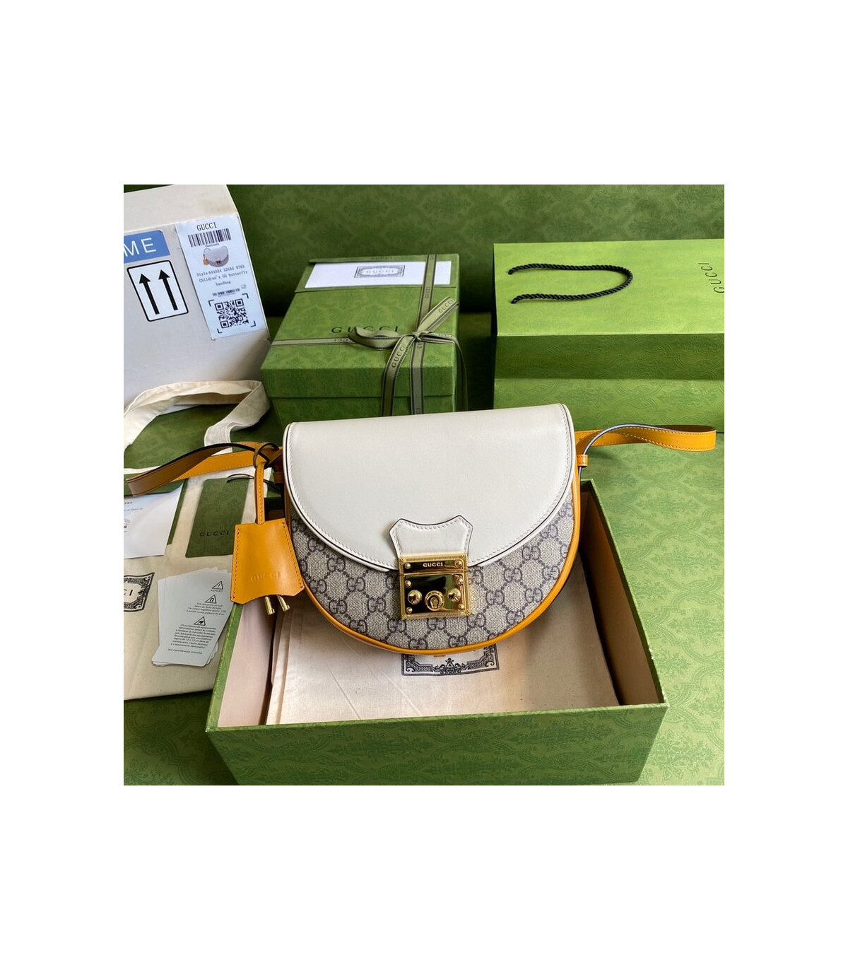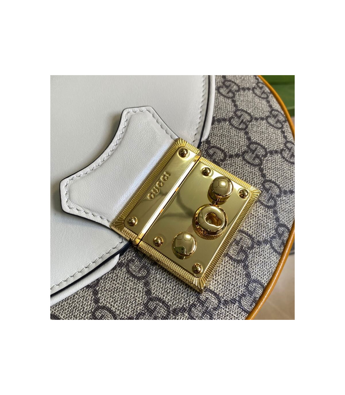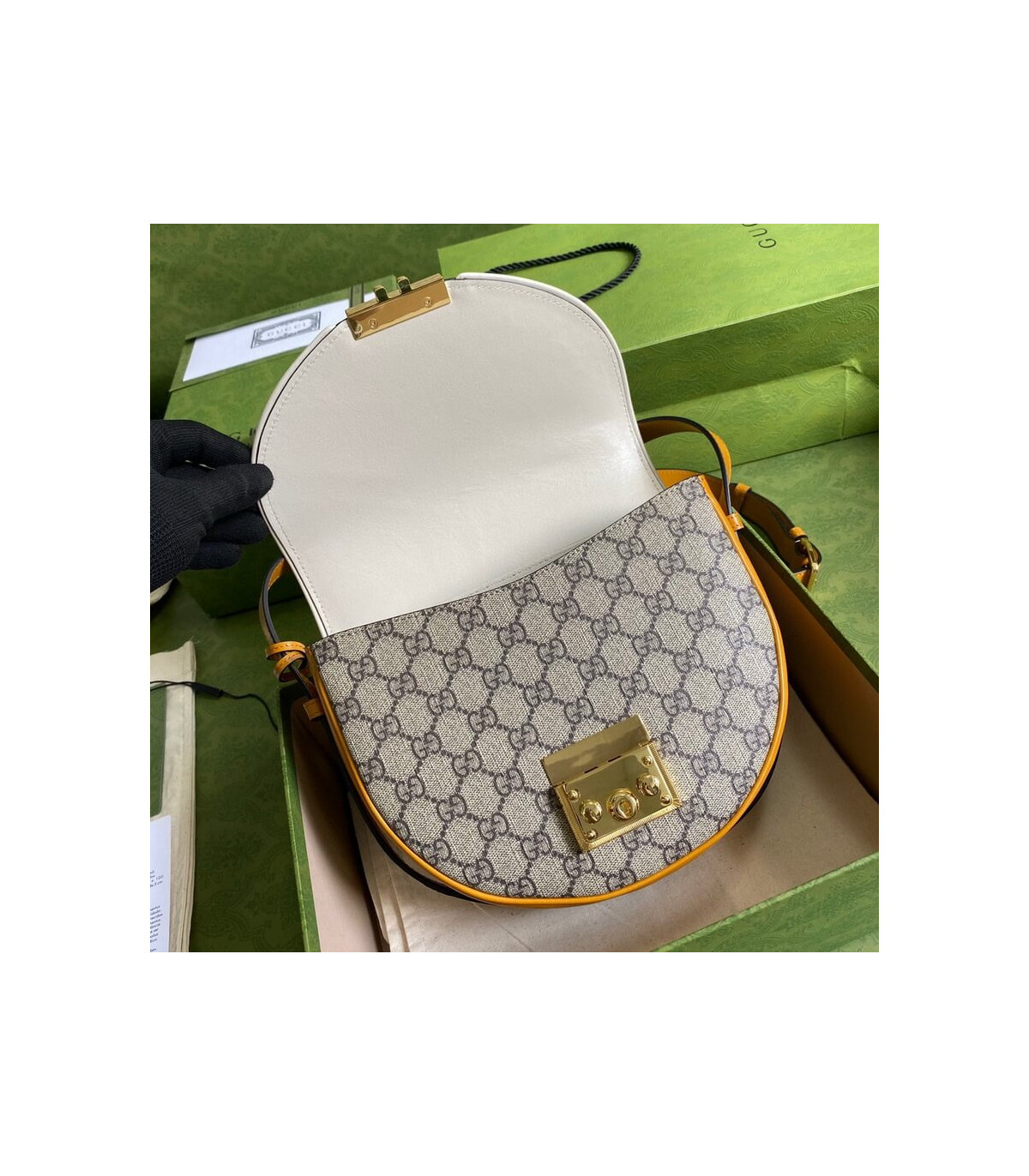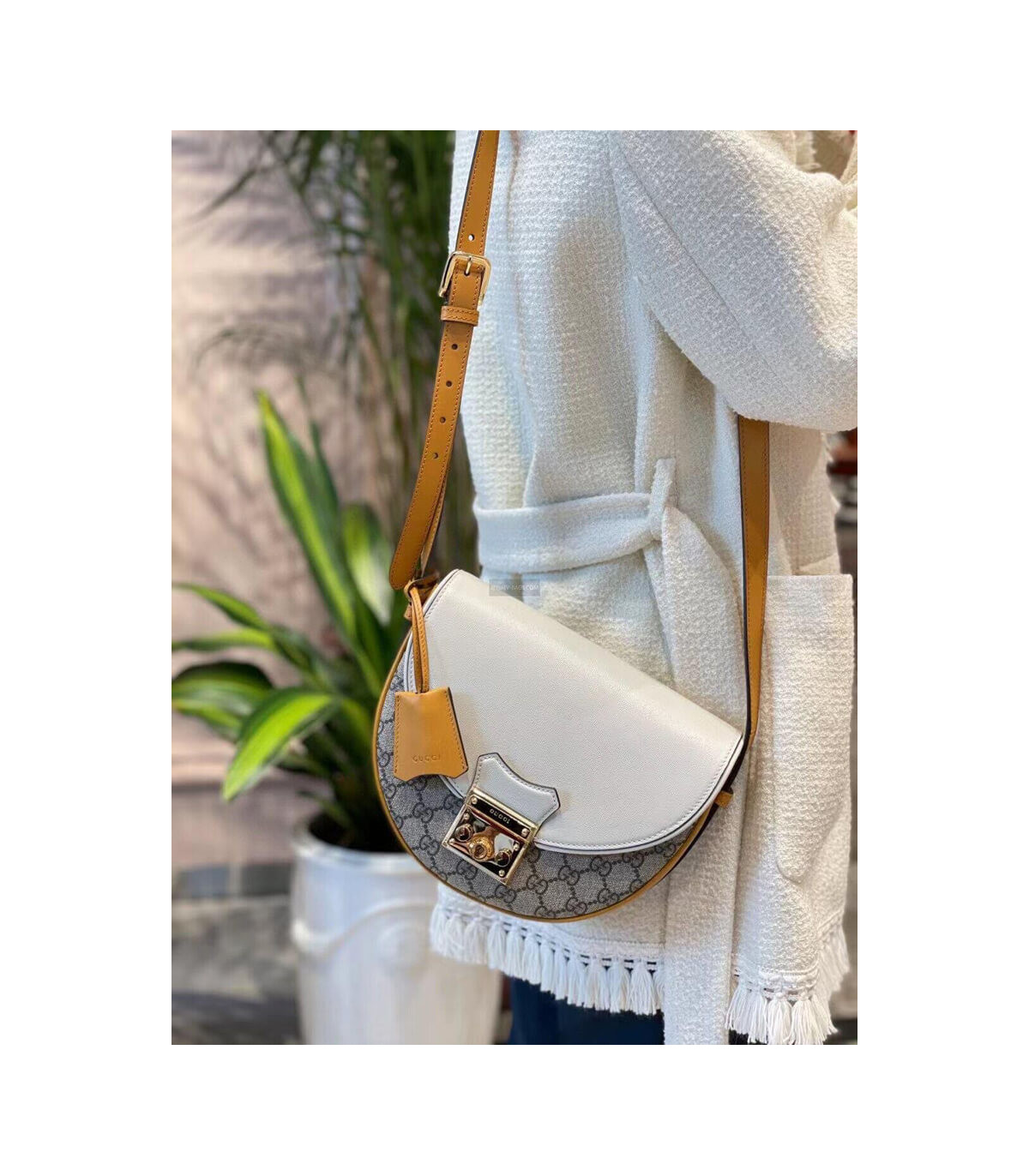 The Padlock family is enriched with the introduction of a crescent shaped shoulder bag. Crafted from the House’s monogram canvas, the style is offset by contrasting leather details and completed by the line’s signature lock closure.