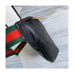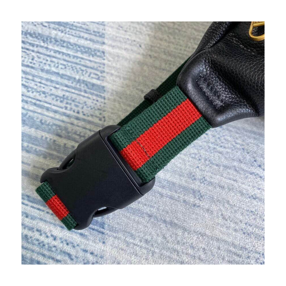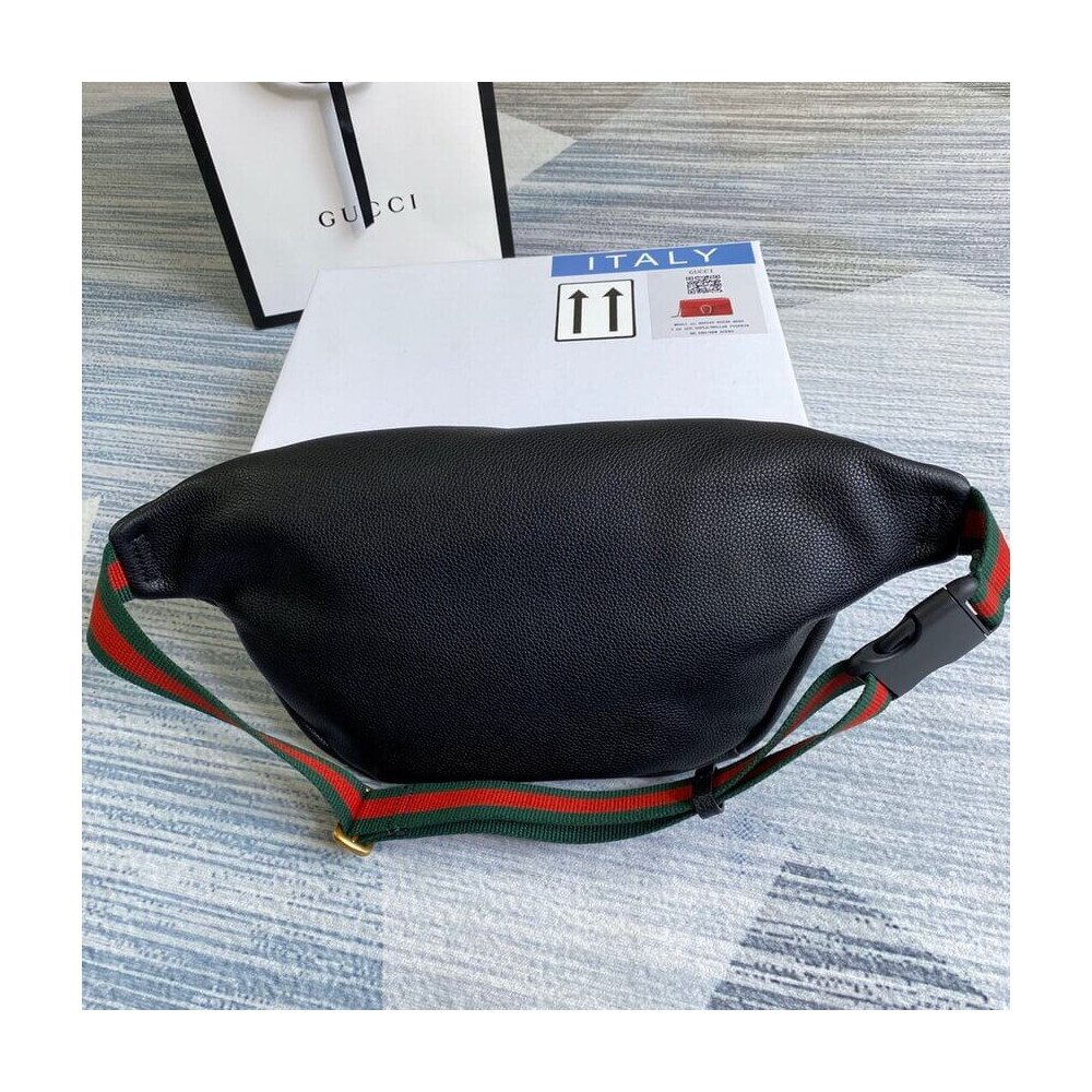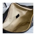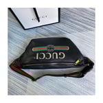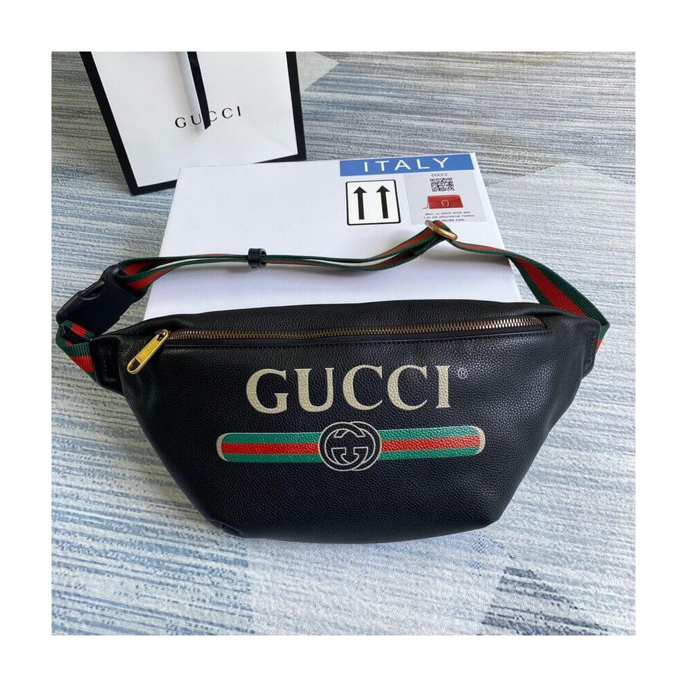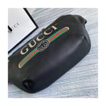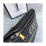 Inspired by vintage prints from the eighties, the Gucci logo is brought to the forefront. The retro-style?motif is presented on the front of a belt bag in supple, textured leather.